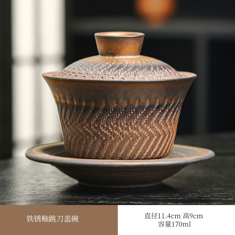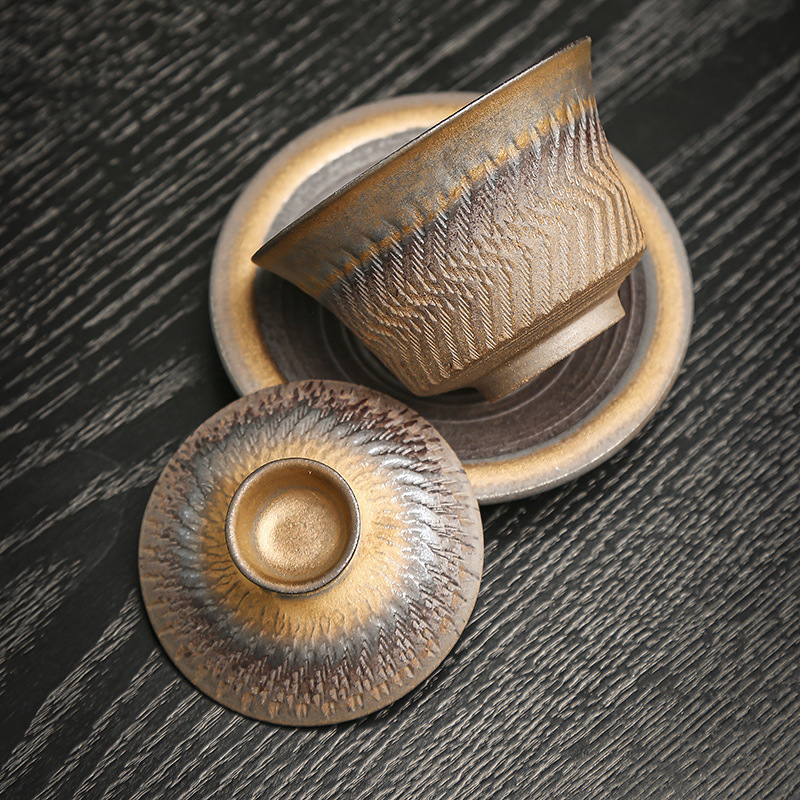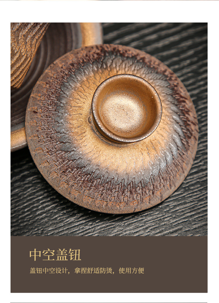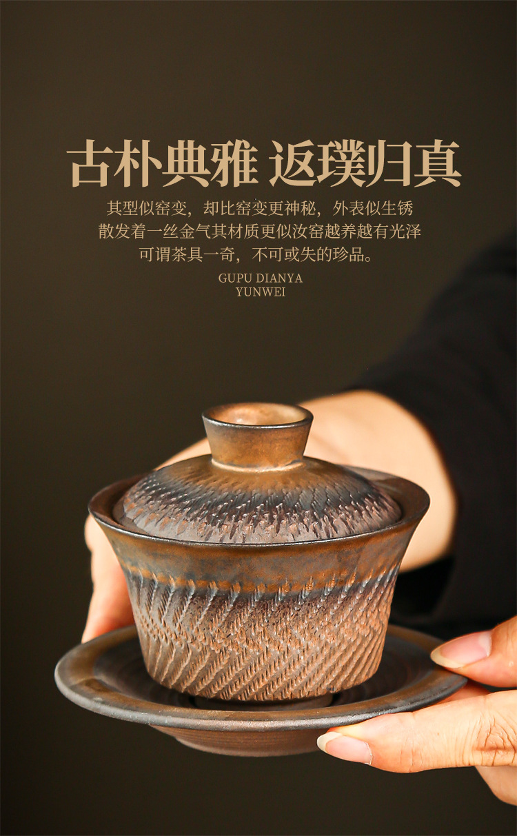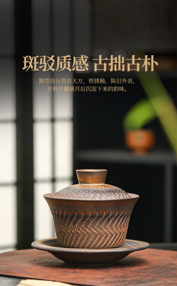 鎏金铁锈三才盖碗复古陶瓷大号家用茶碗单个手工中式功夫茶具批发