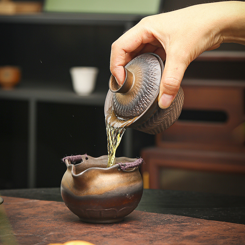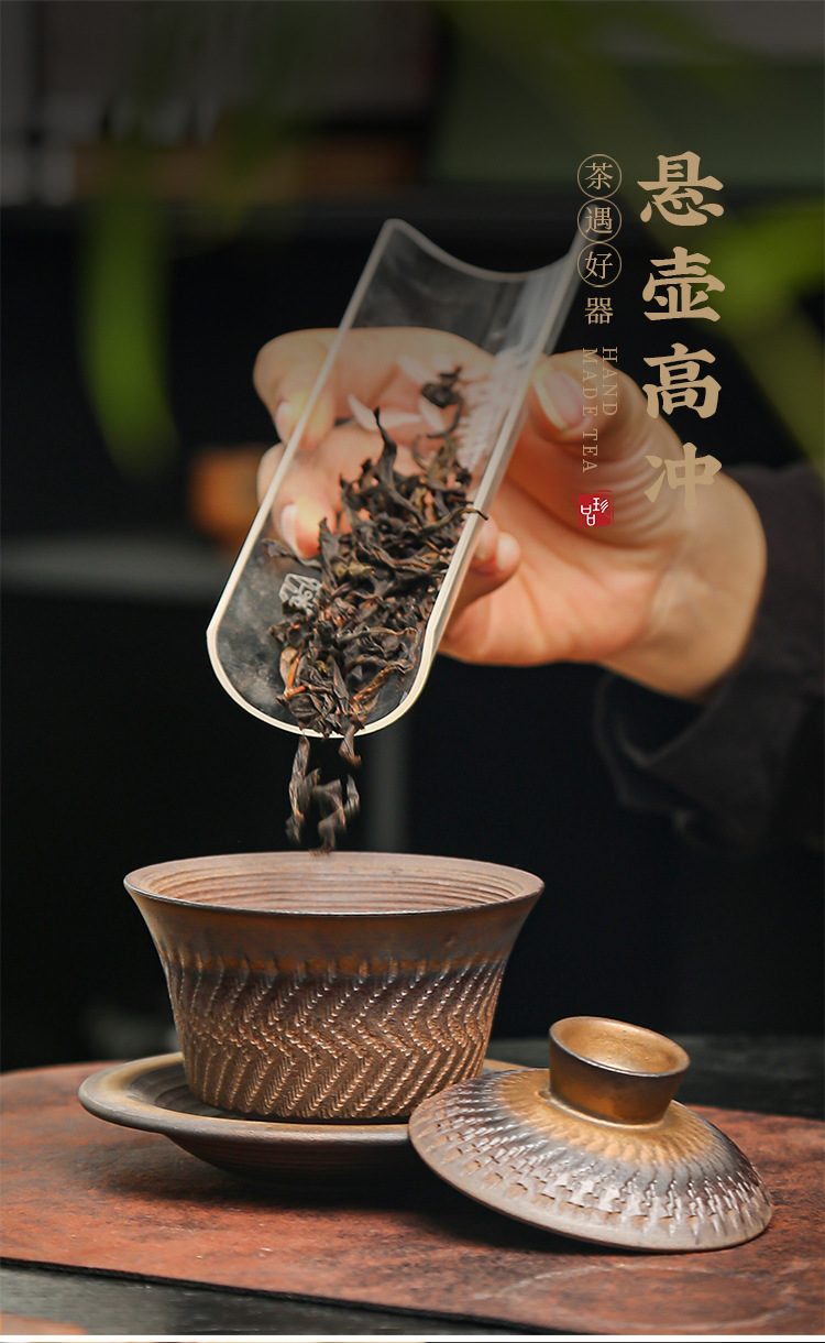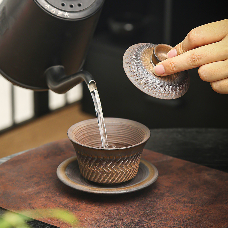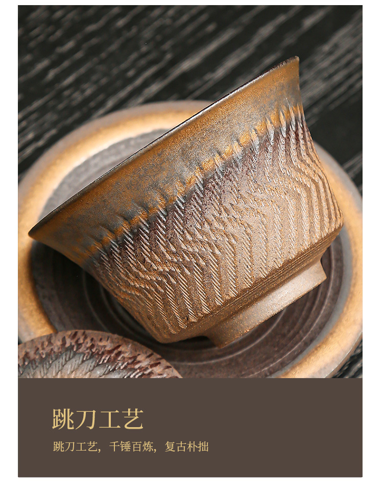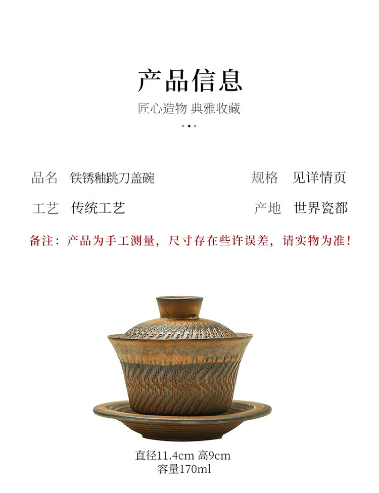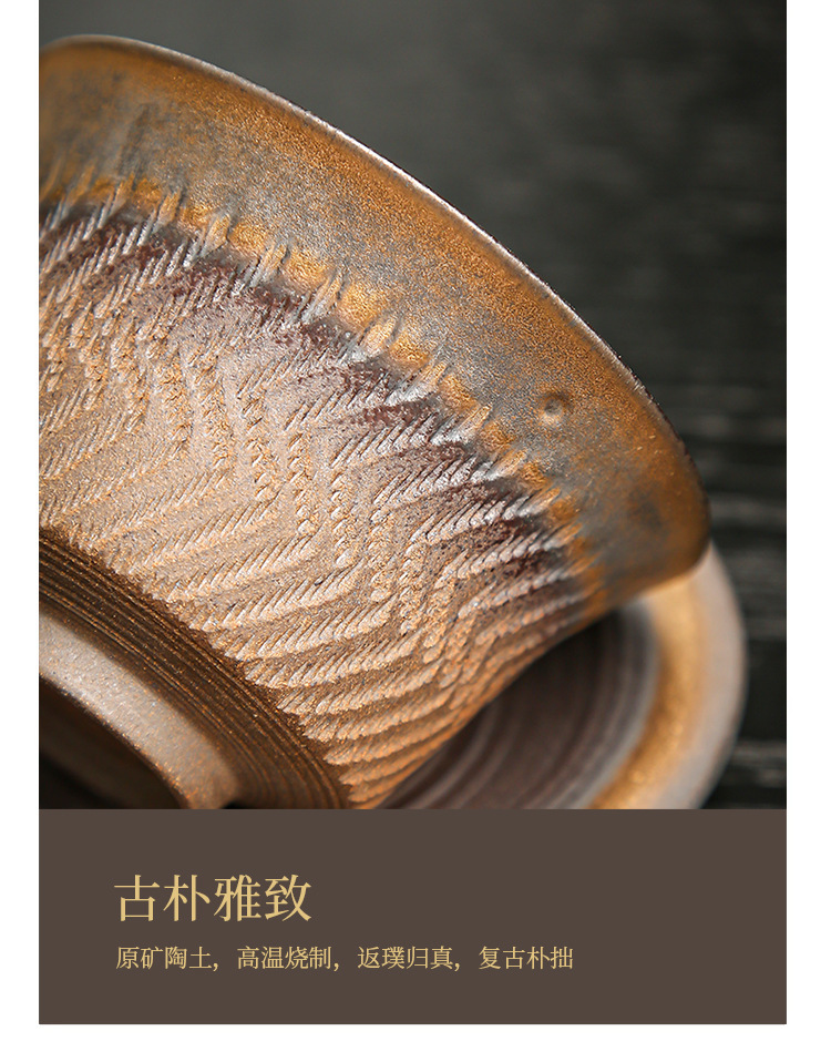 鎏金铁锈三才盖碗复古陶瓷大号家用茶碗单个手工中式功夫茶具批发