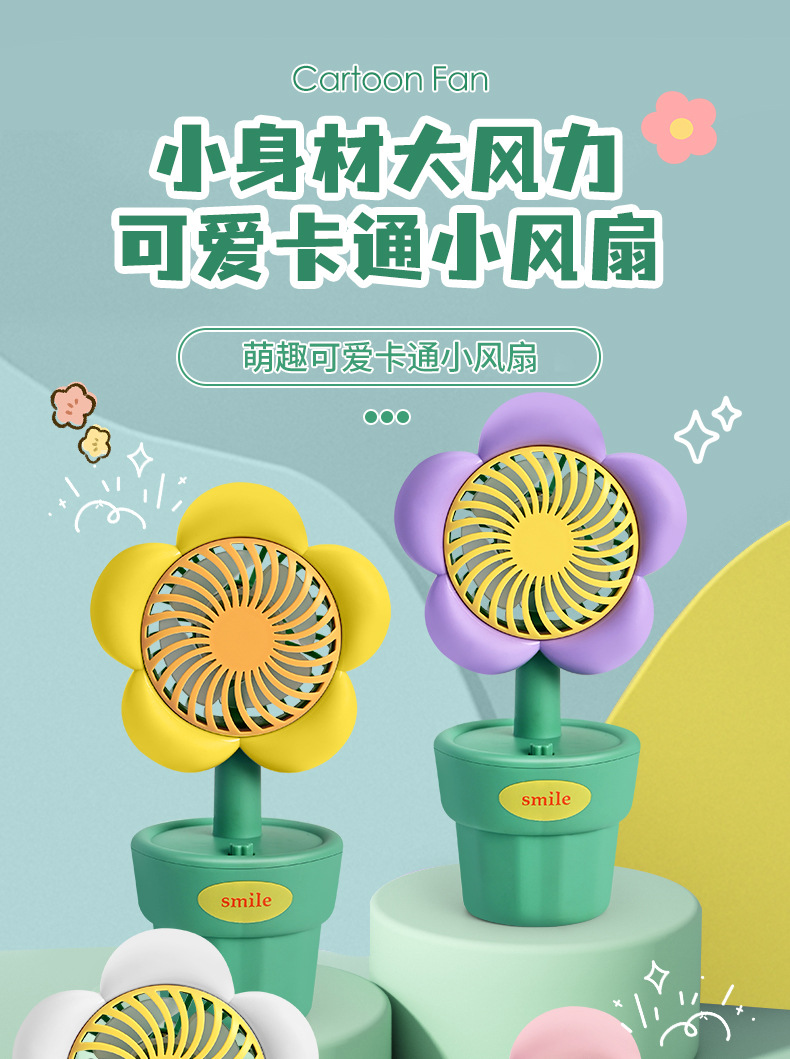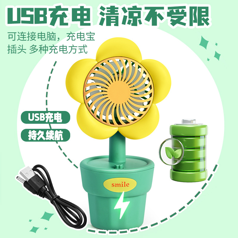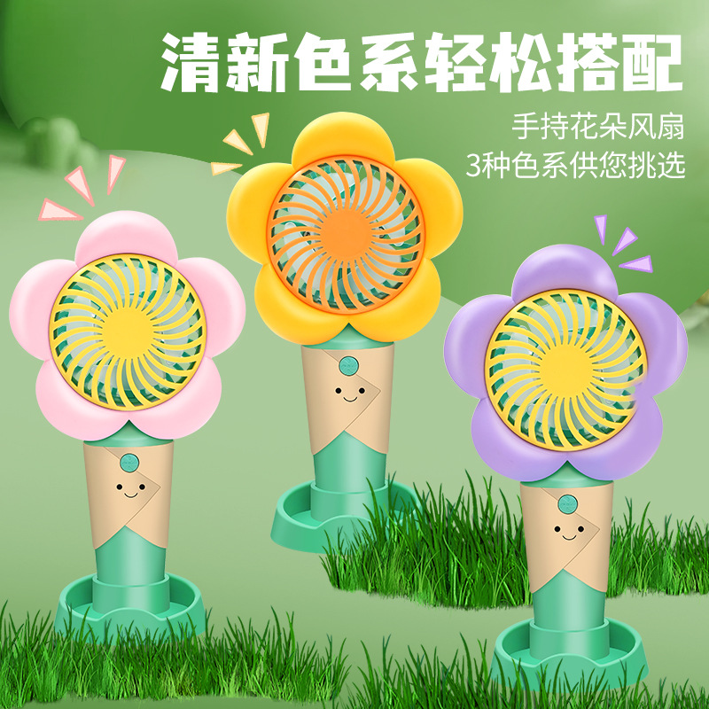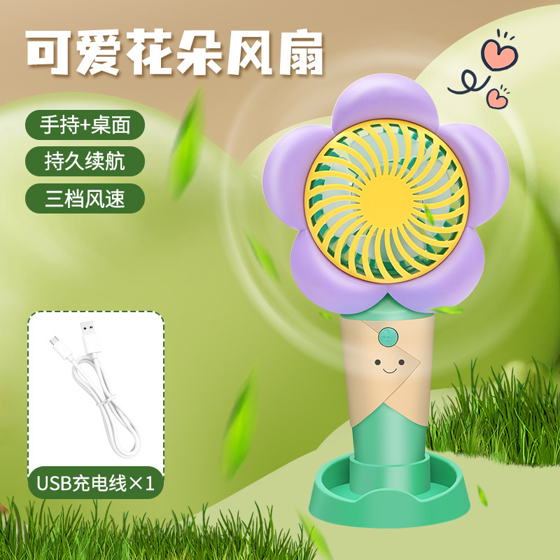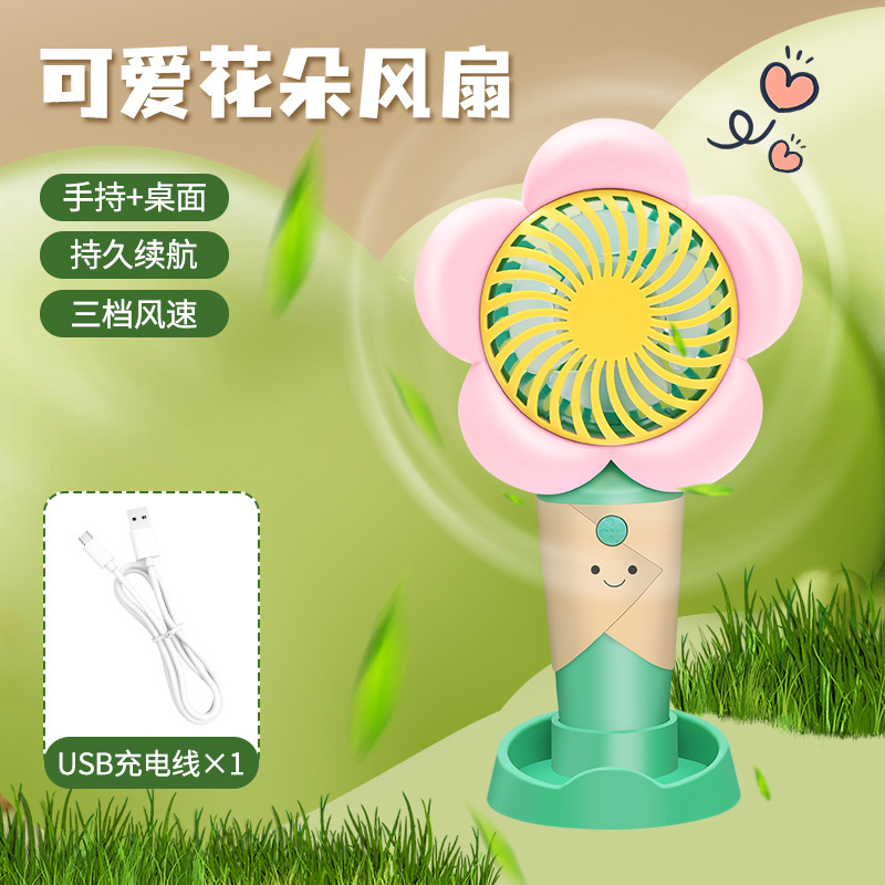 花朵手持小风扇 USB充电迷你电风扇便携大风力手拿桌面礼品风扇厂