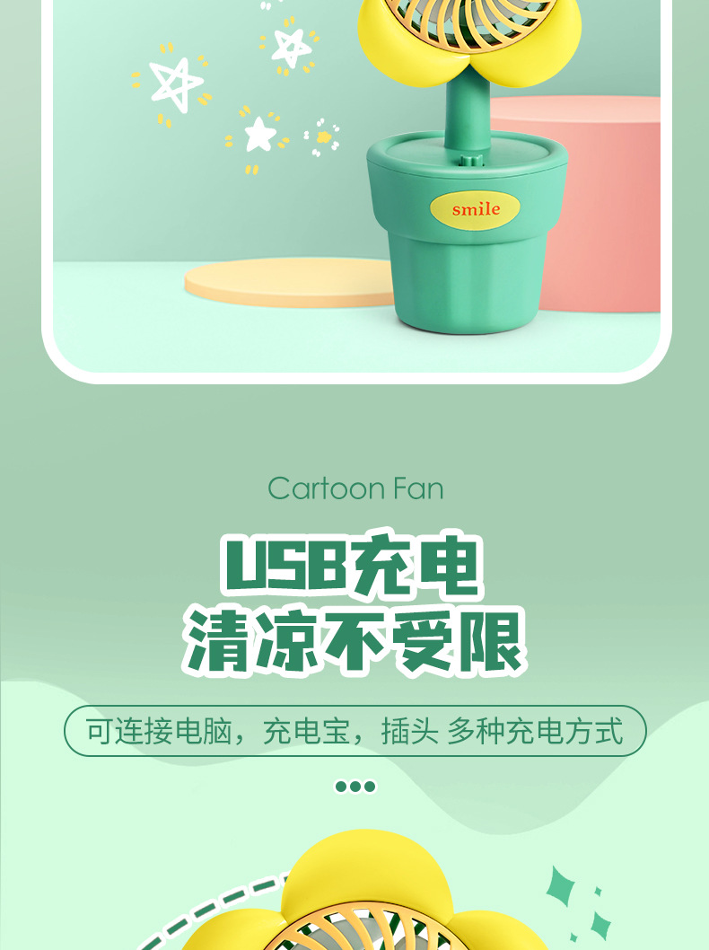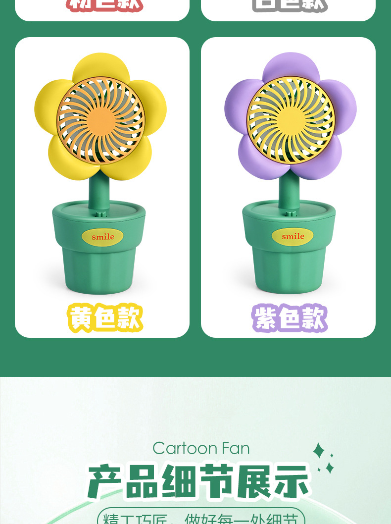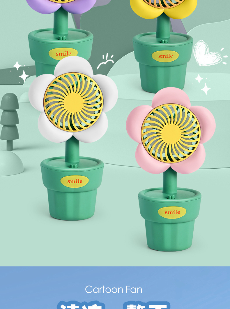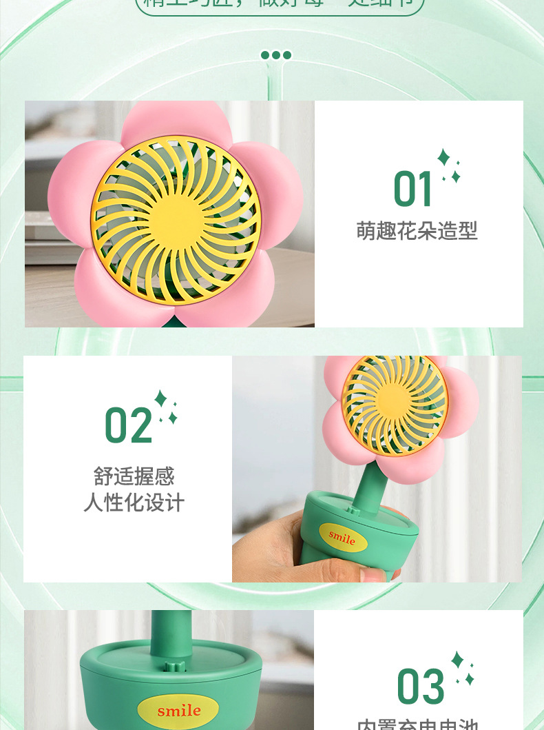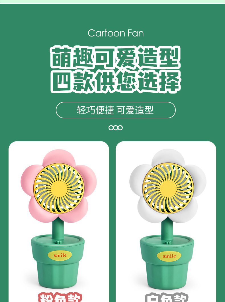花朵手持小风扇 USB充电迷你电风扇便携大风力手拿桌面礼品风扇厂