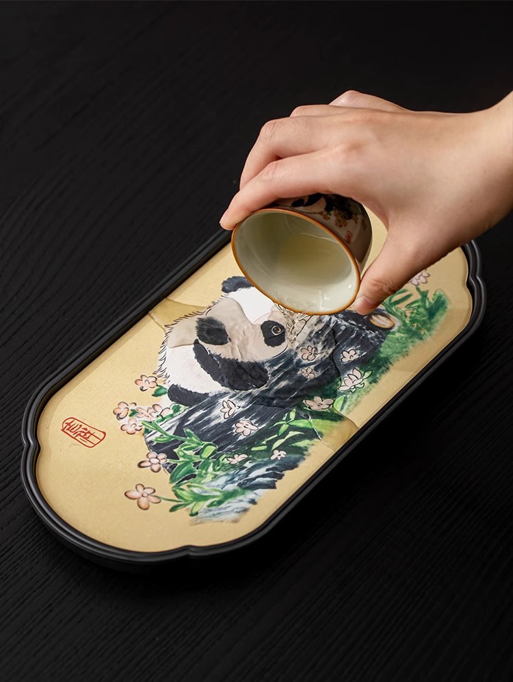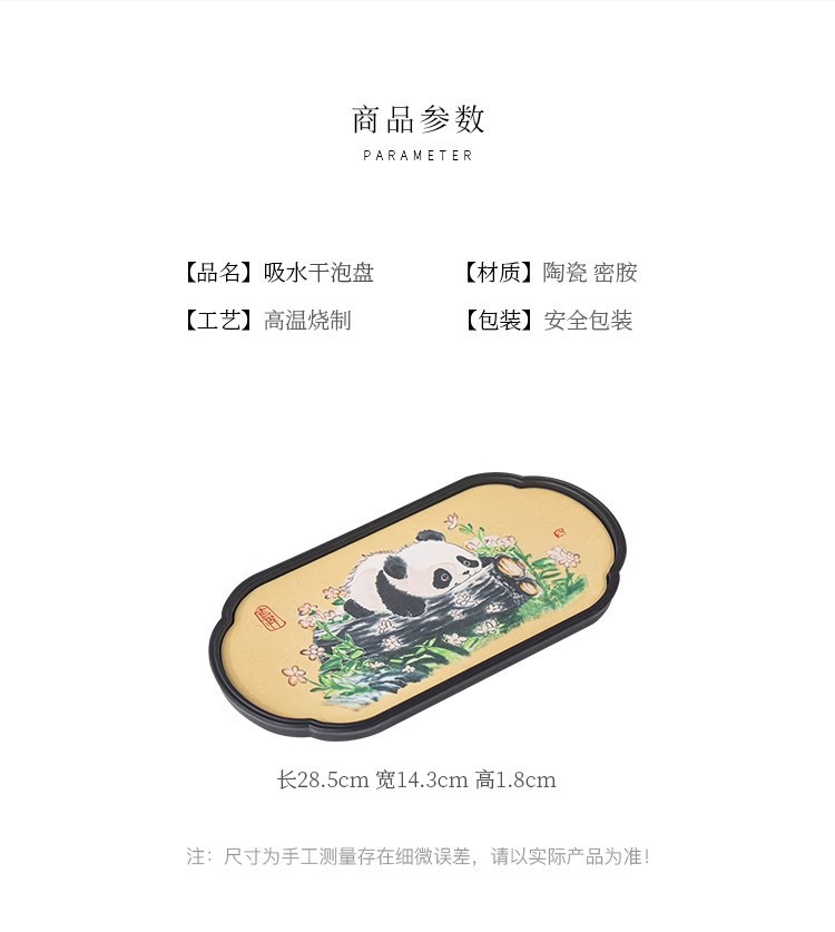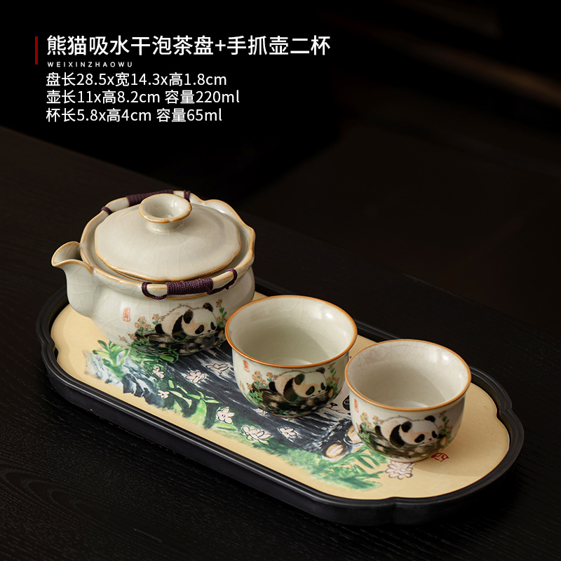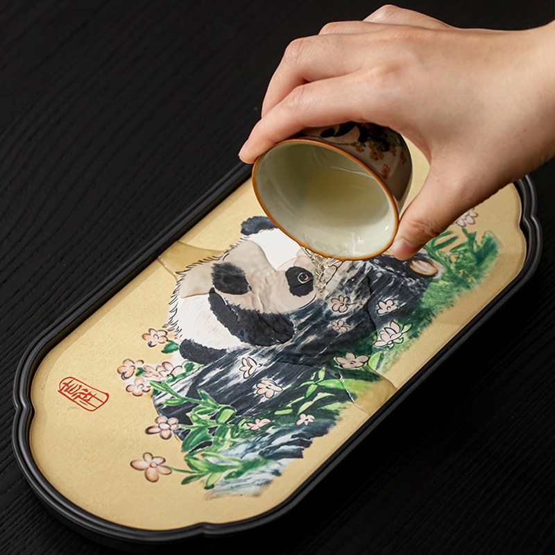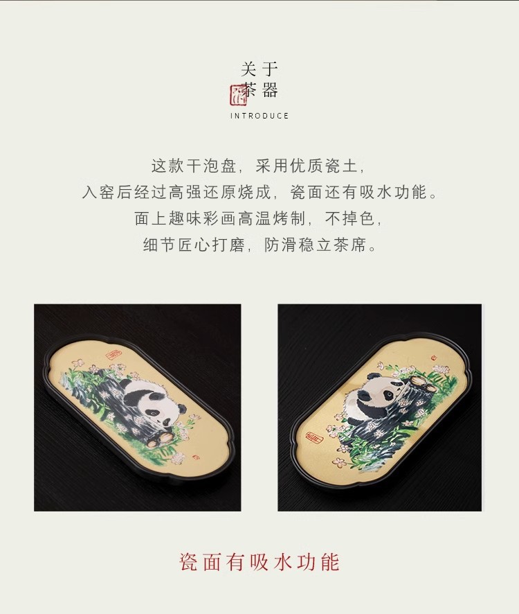 熊猫海棠速干干泡茶盘家用小型一人茶台功夫茶具吸水托盘沥水盘
