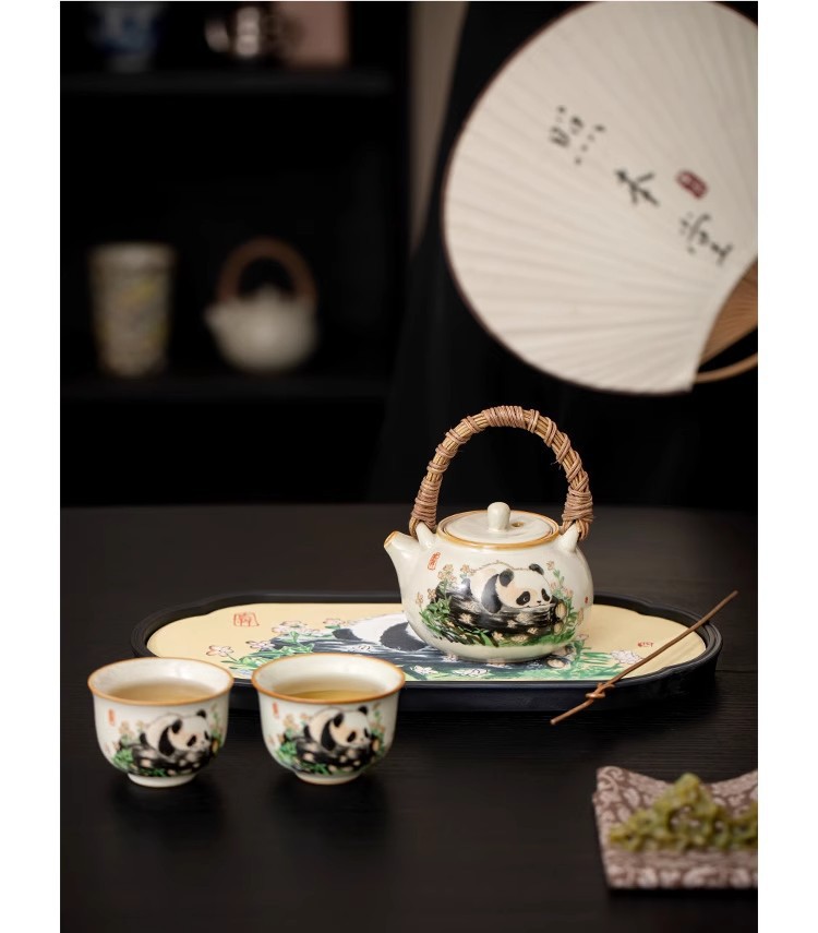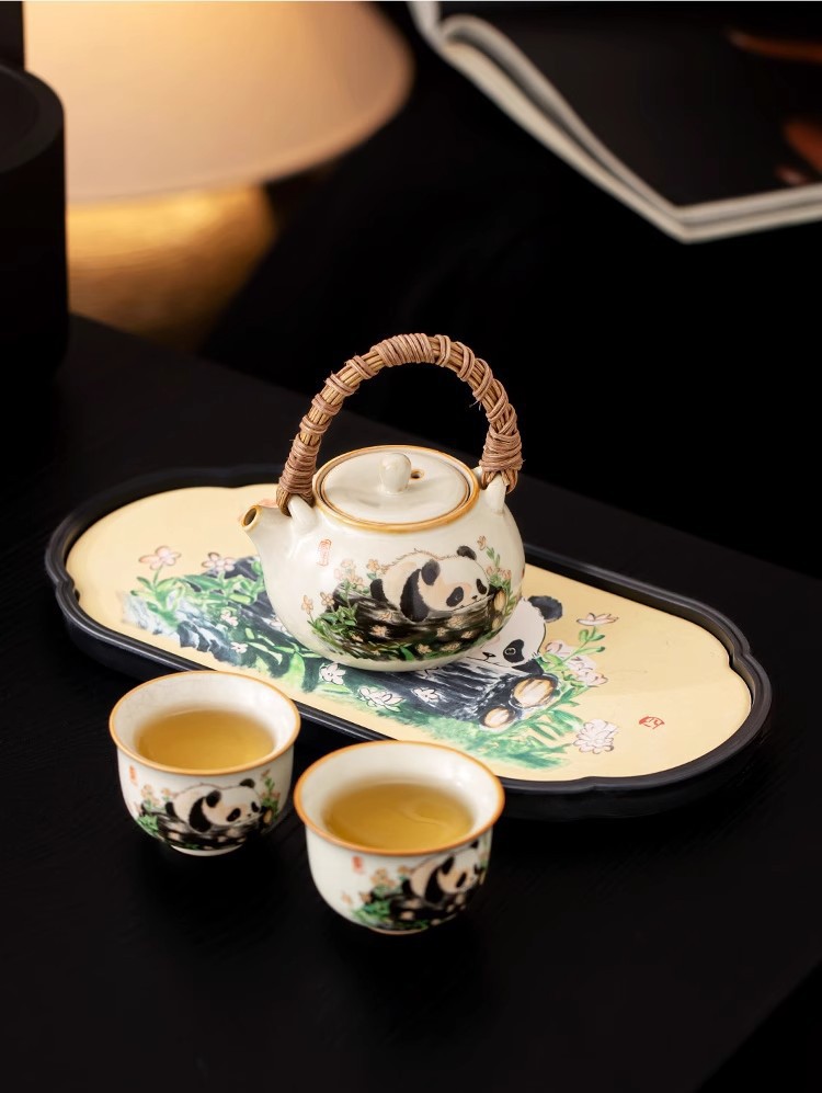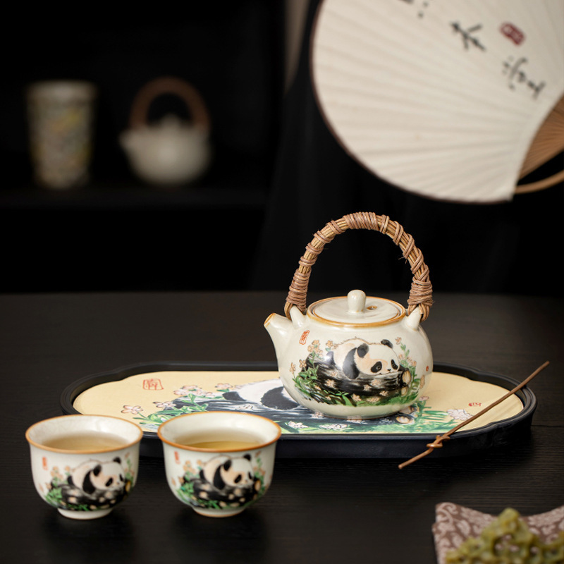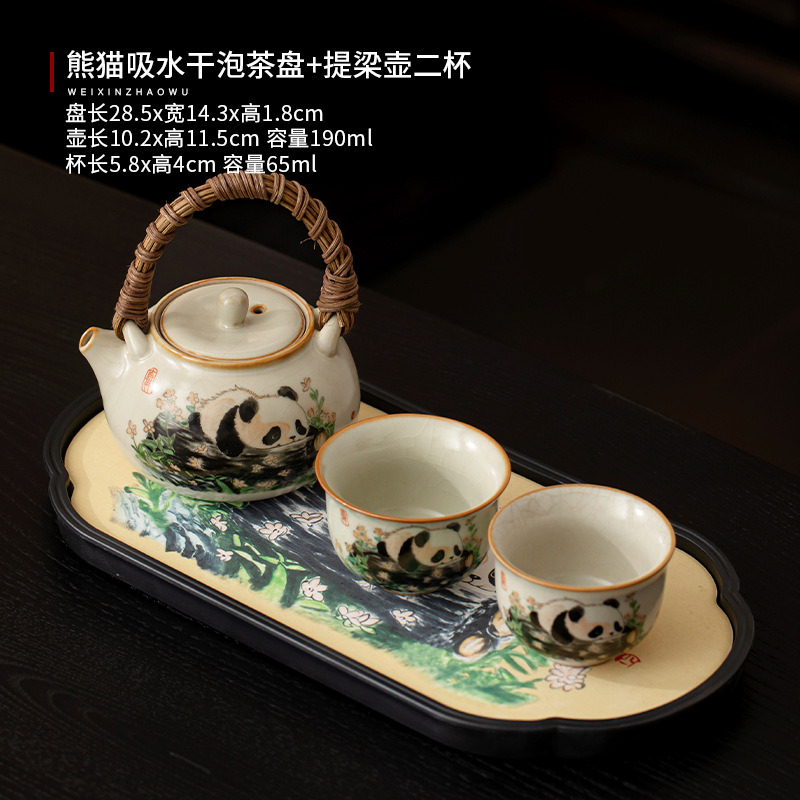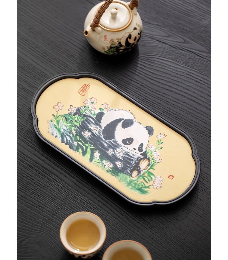 熊猫海棠速干干泡茶盘家用小型一人茶台功夫茶具吸水托盘沥水盘