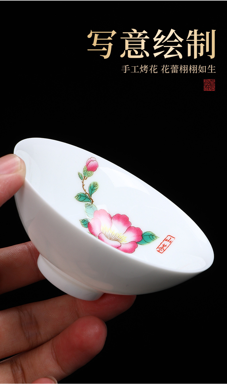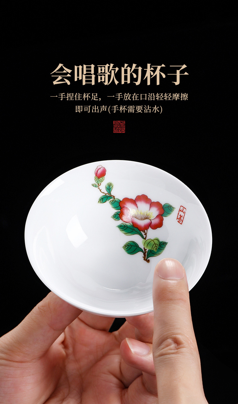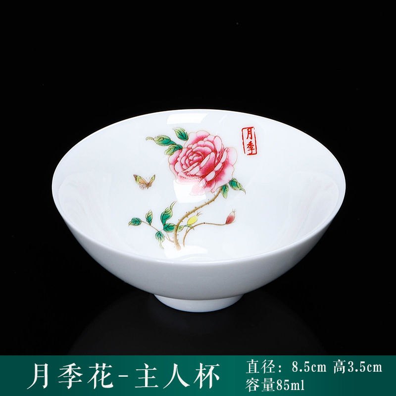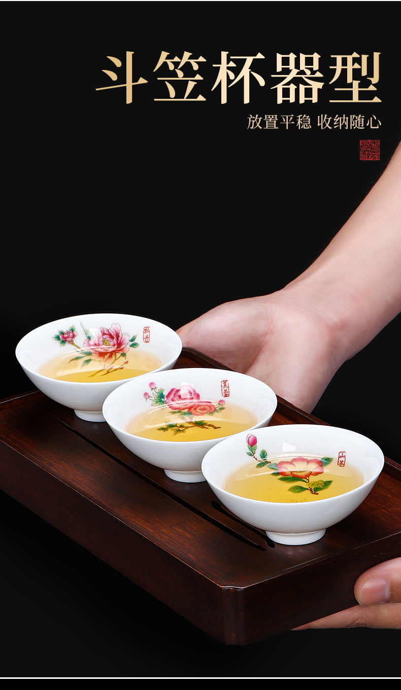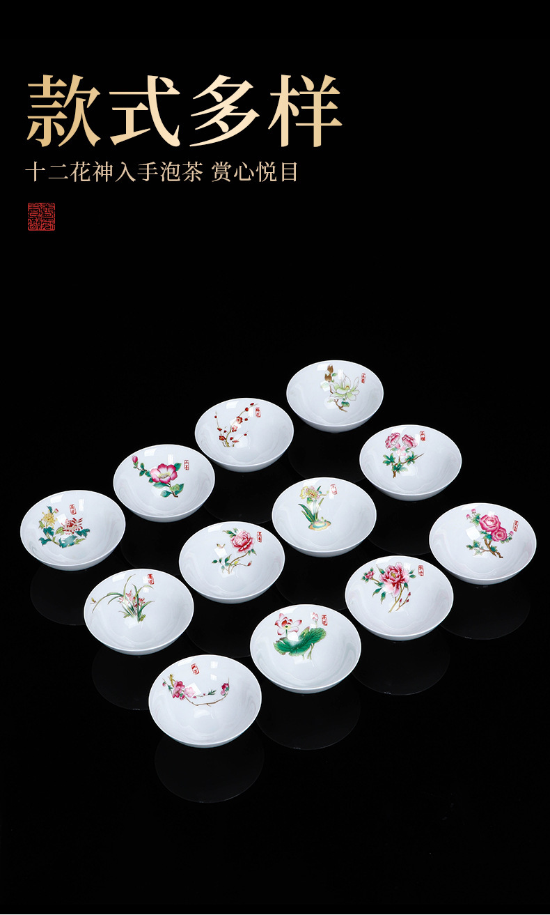 白瓷茶杯斗笠杯主人杯十二花神杯高档个人单杯品茗杯会唱歌杯子