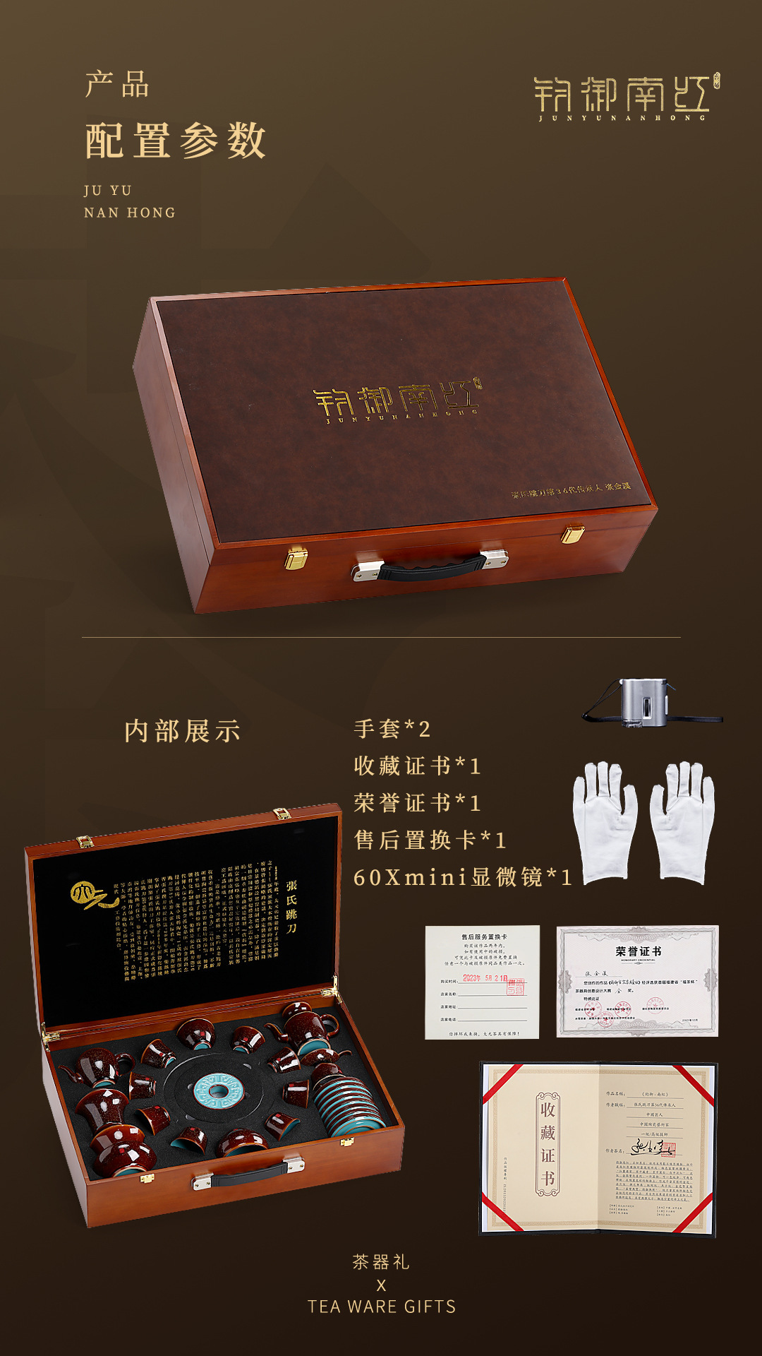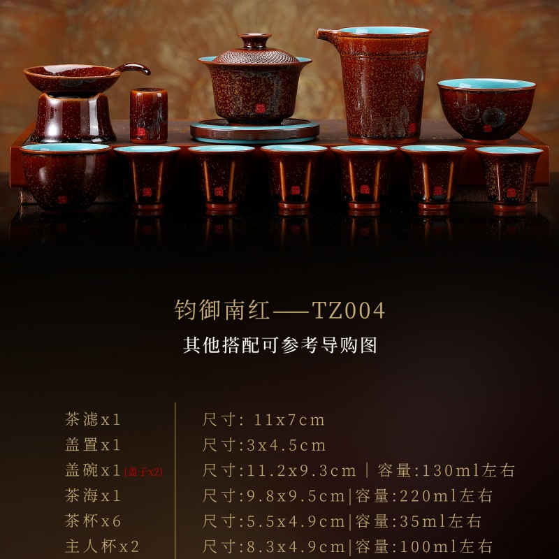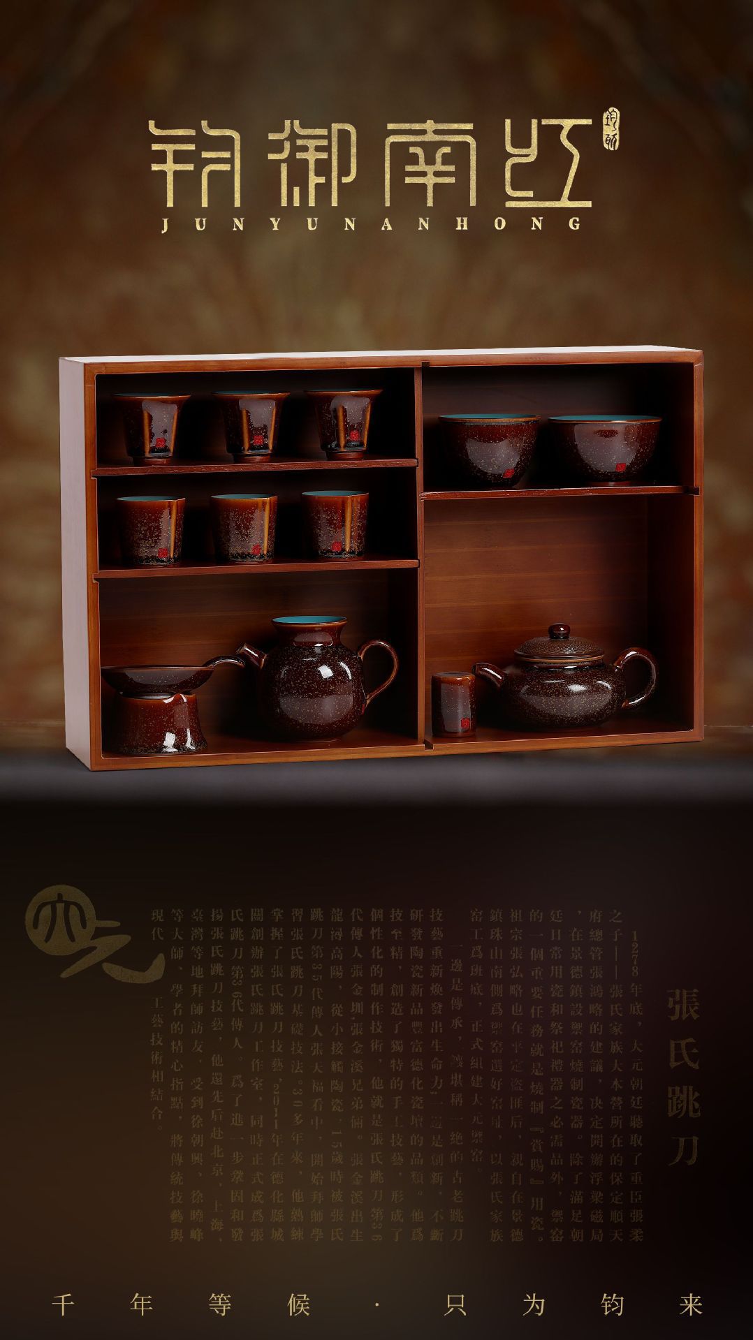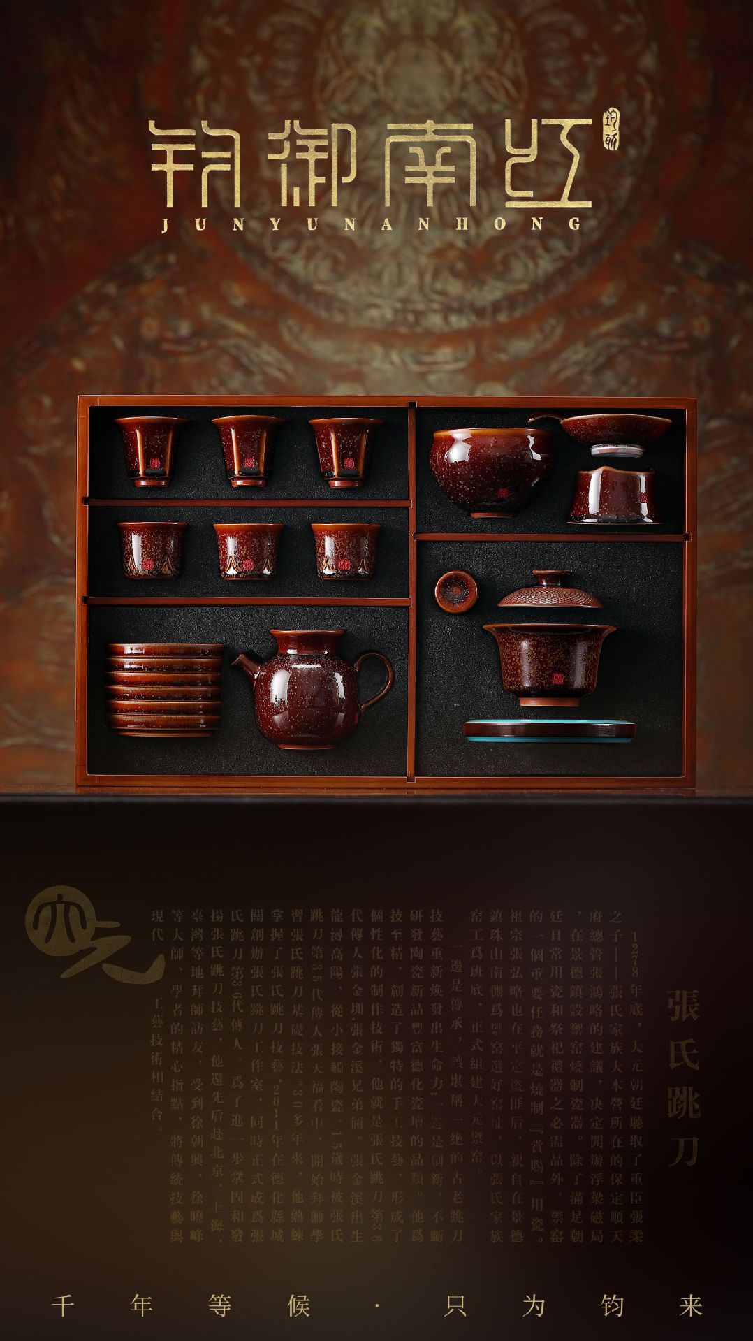 官窑钧御南红纯手工跳刀高档陶瓷茶具轻奢盖碗套装茶壶礼品礼盒装