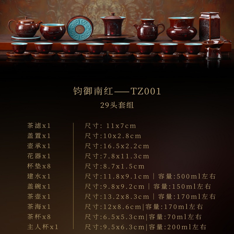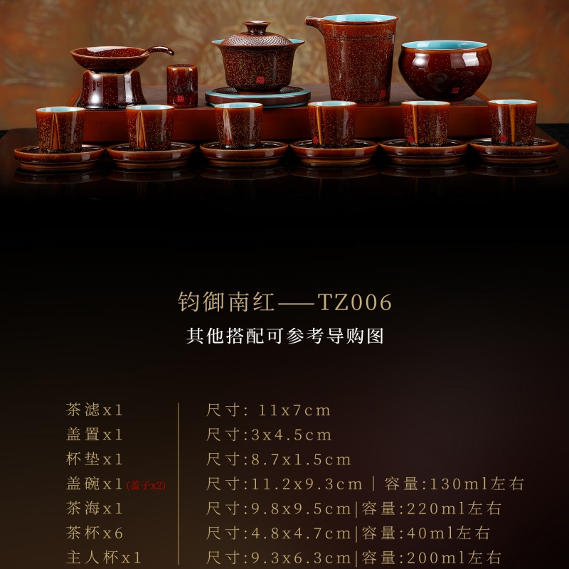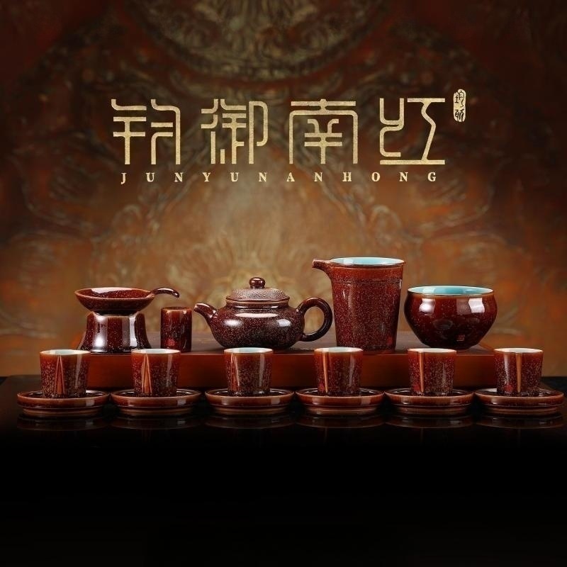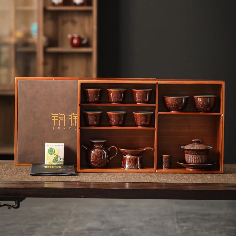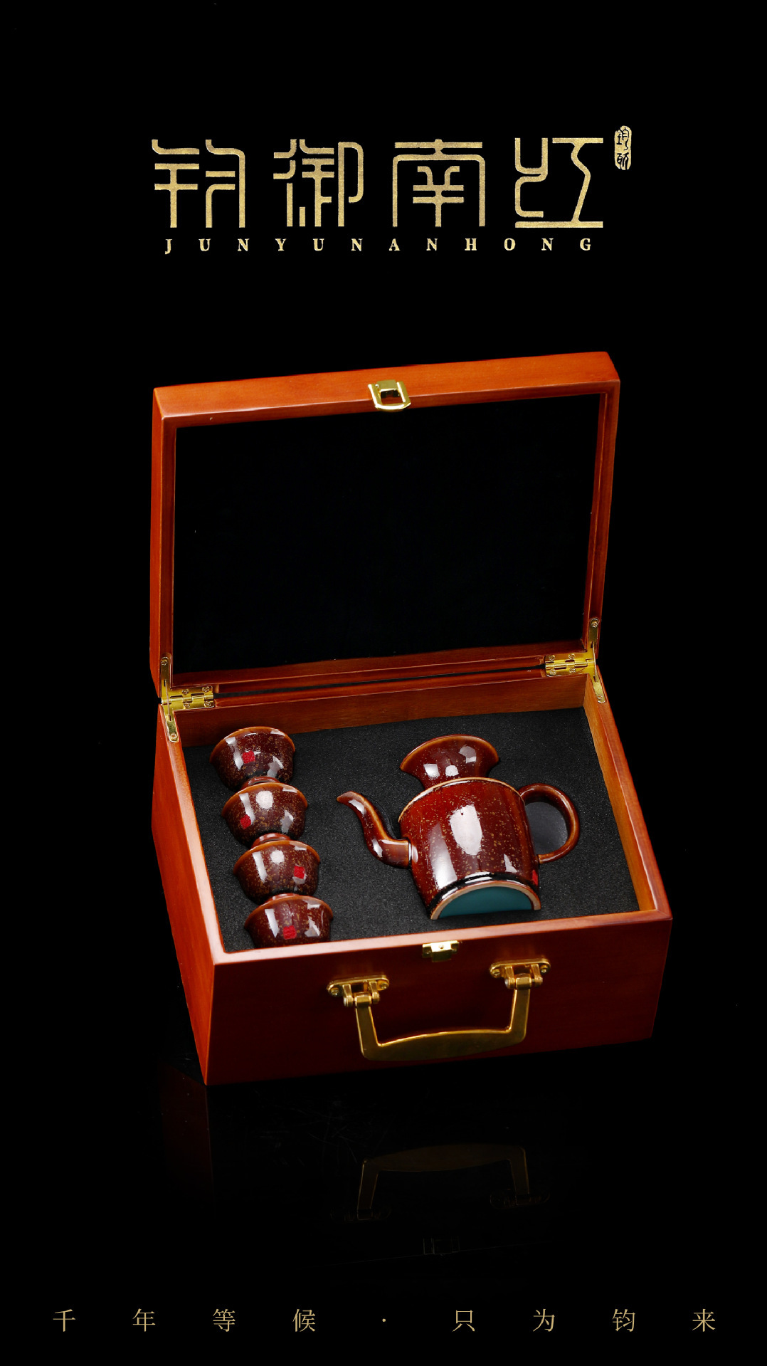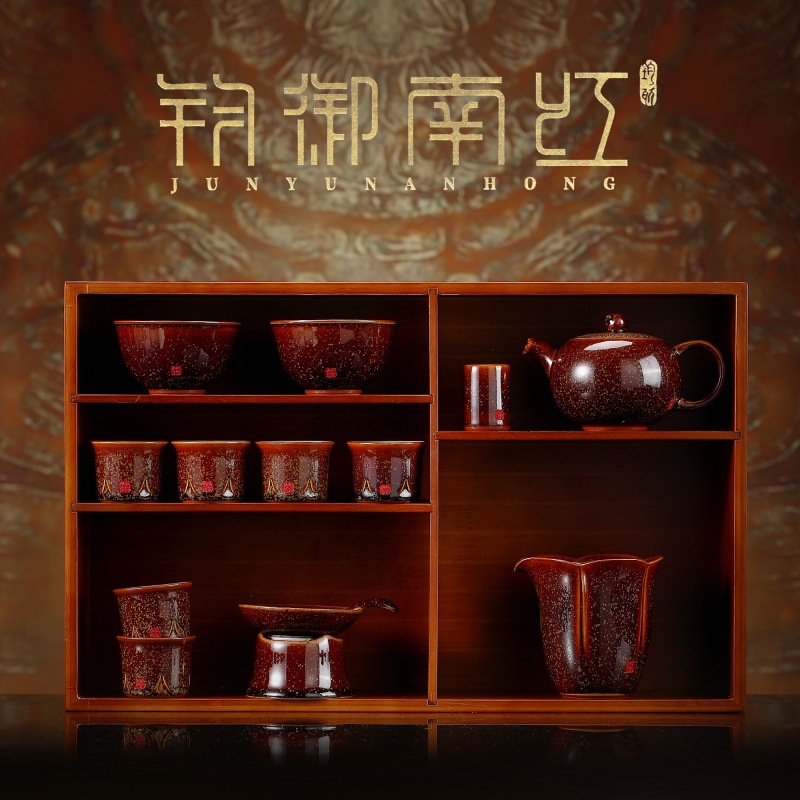 官窑钧御南红纯手工跳刀高档陶瓷茶具轻奢盖碗套装茶壶礼品礼盒装