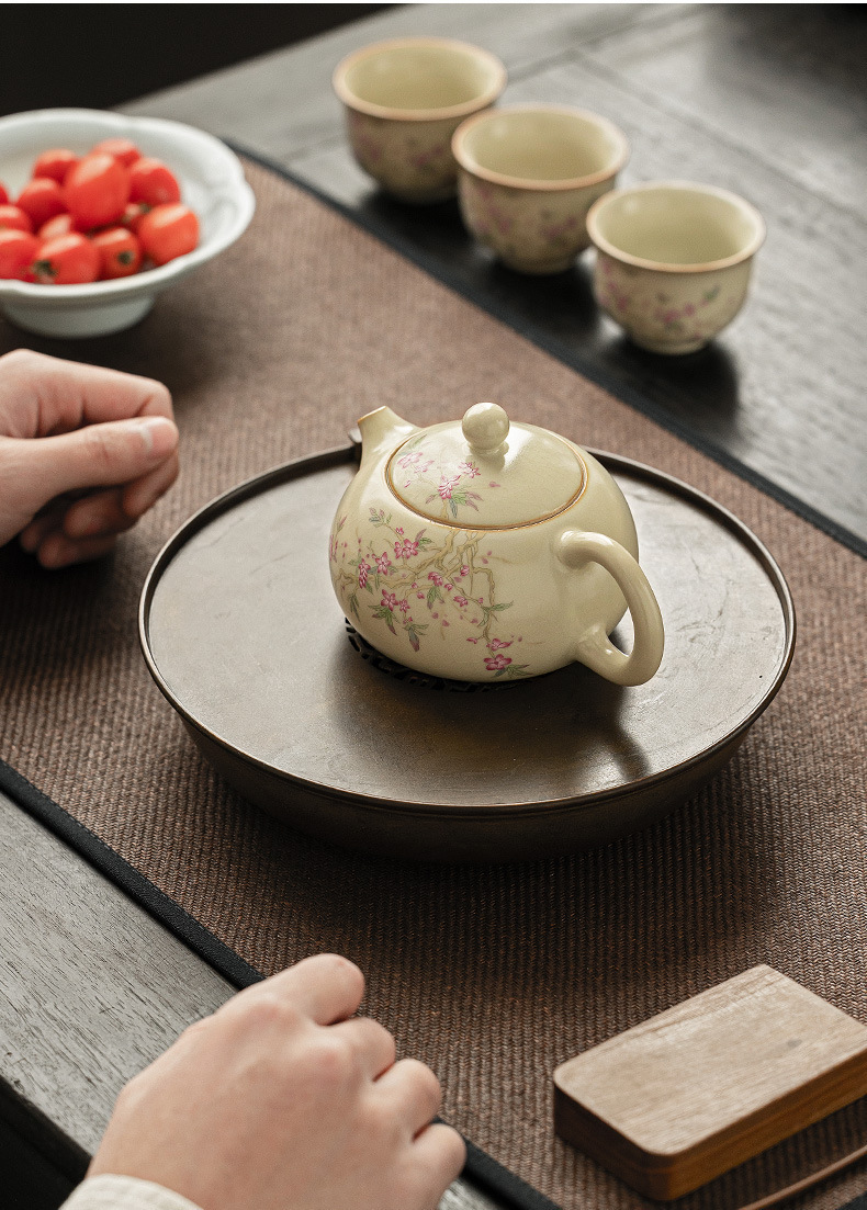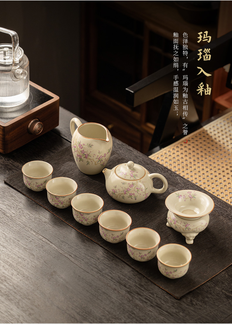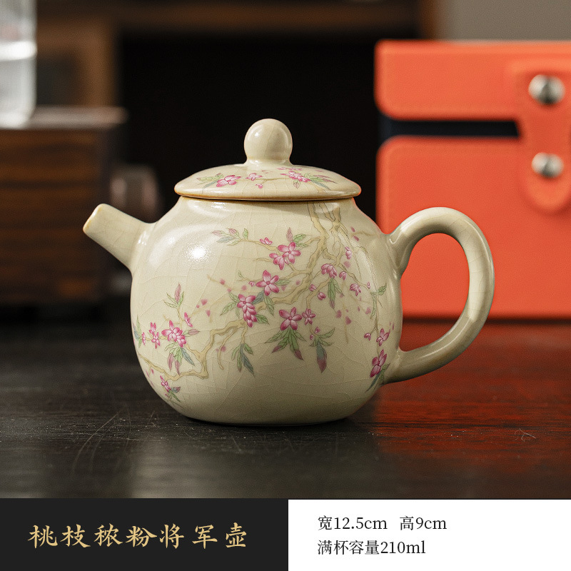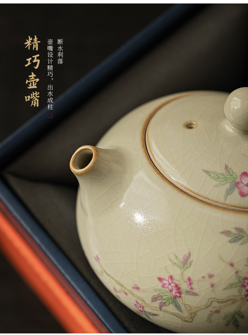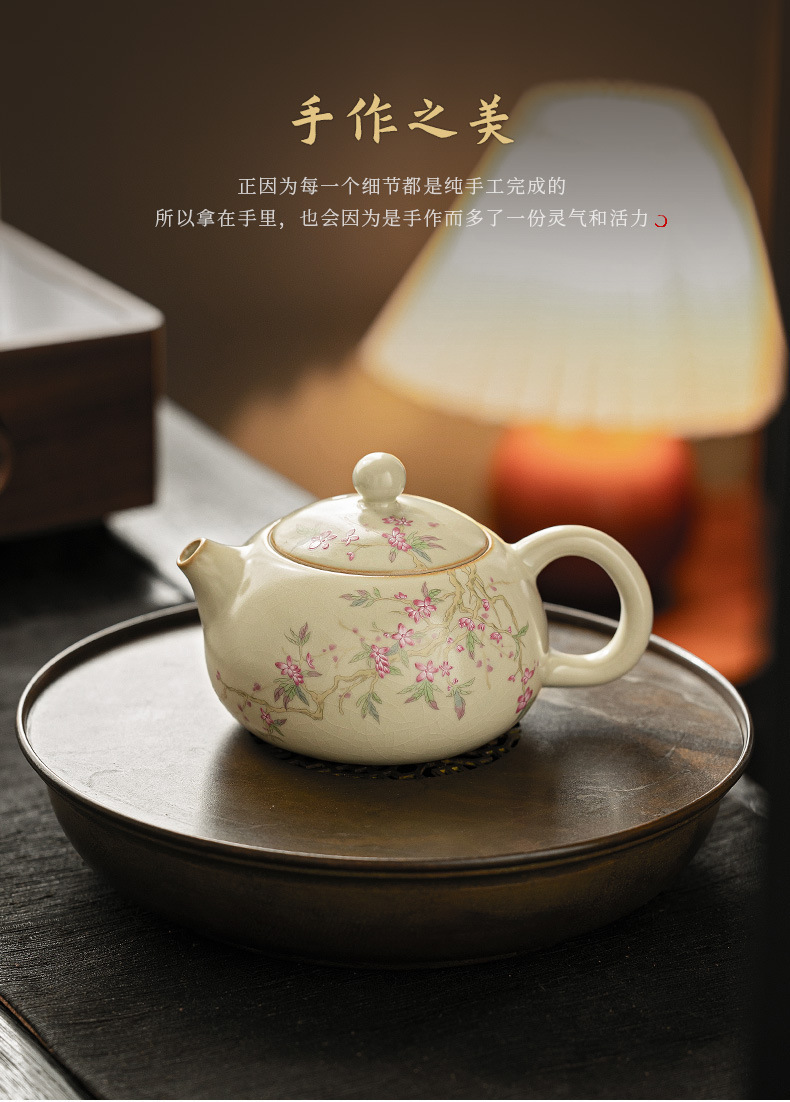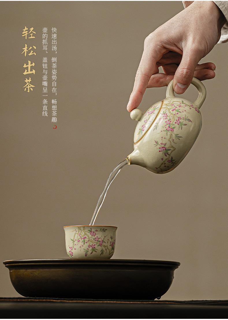 米黄汝窑西施茶壶茶杯功夫茶道茶具单壶泡茶家用陶瓷泡茶器泡茶壶