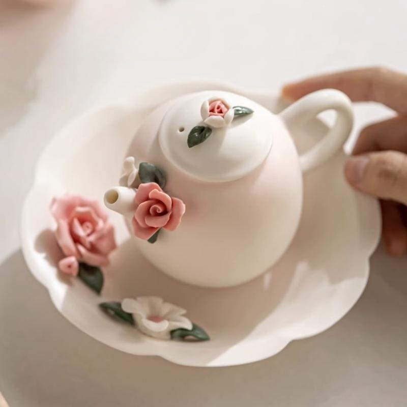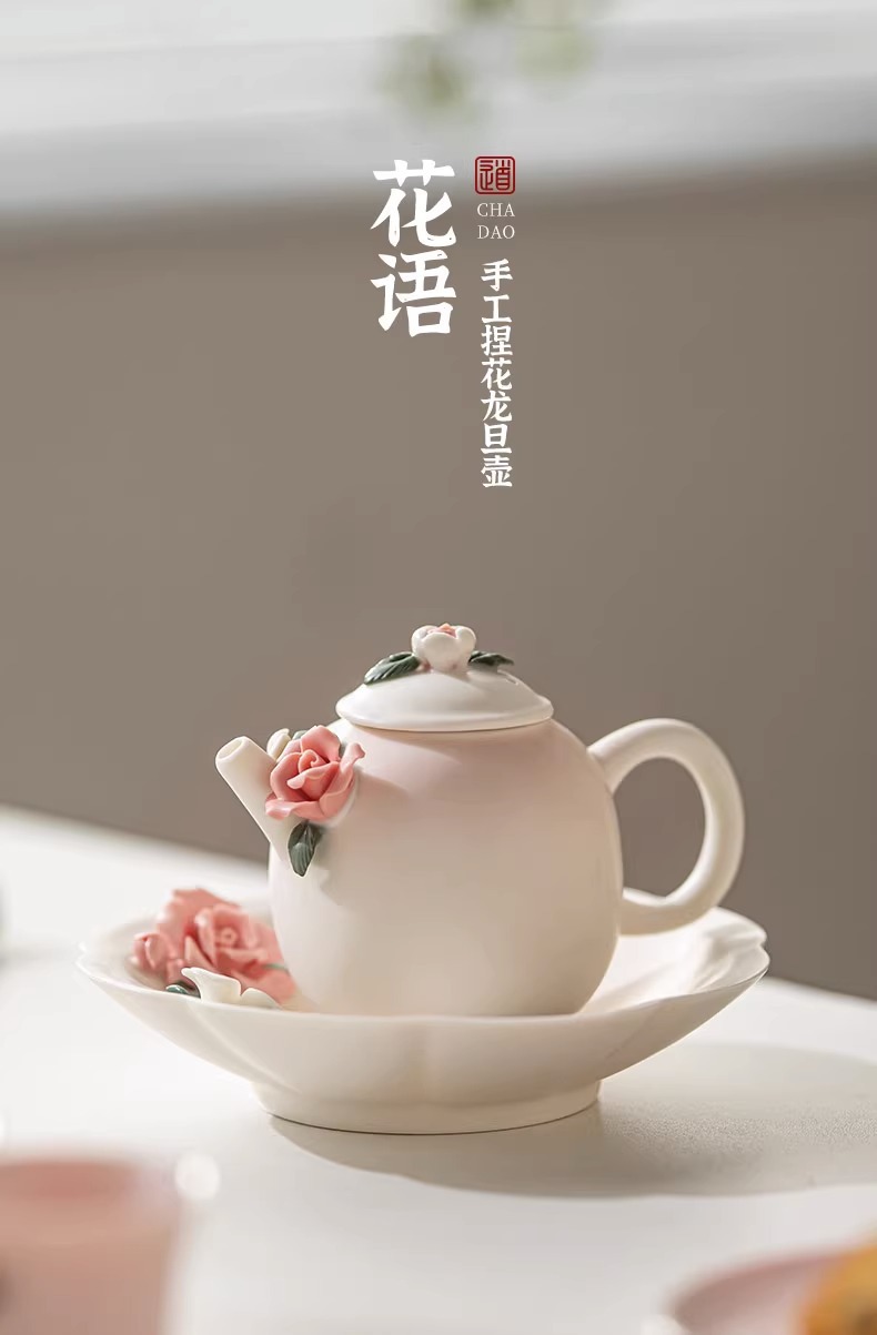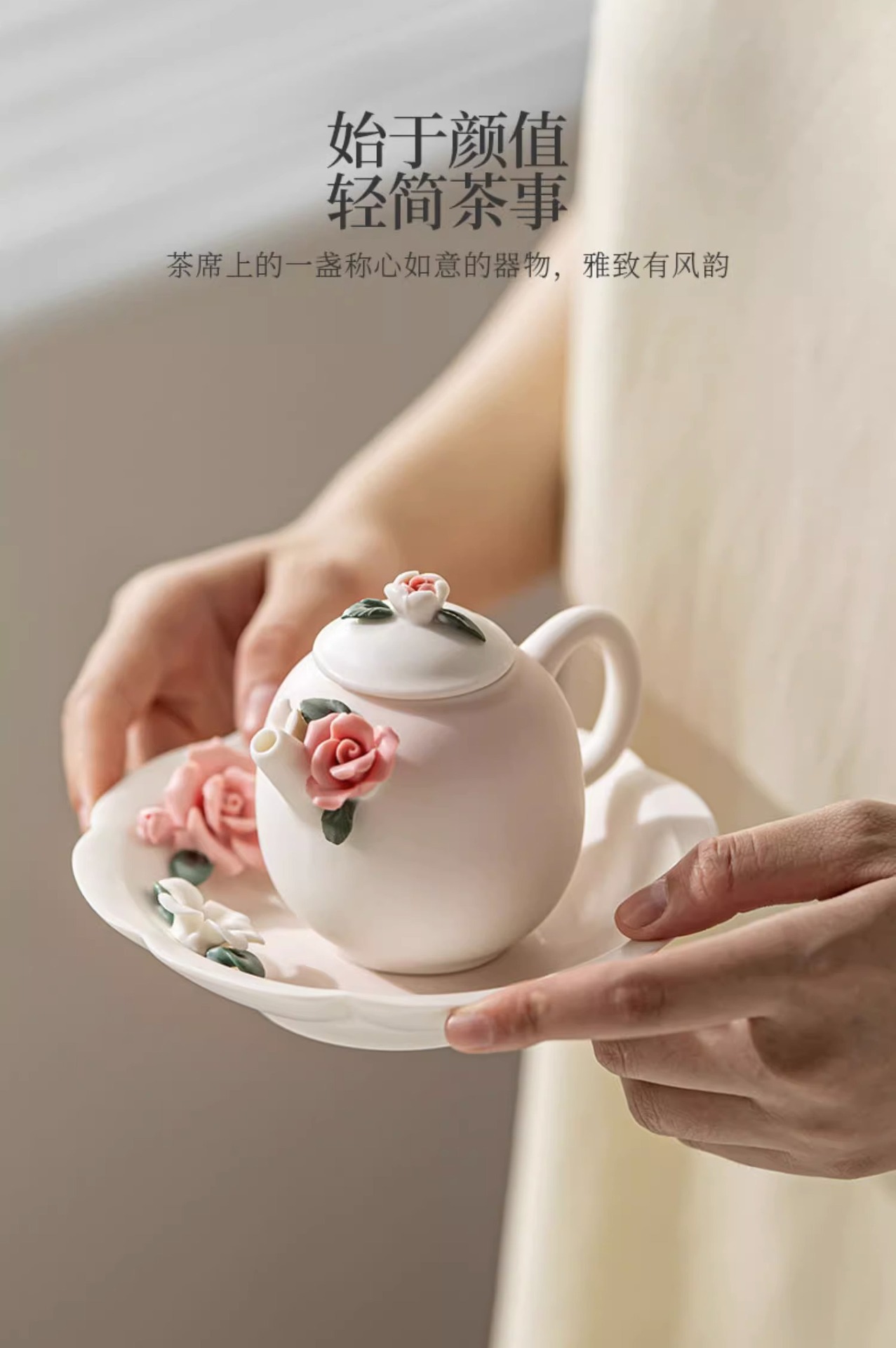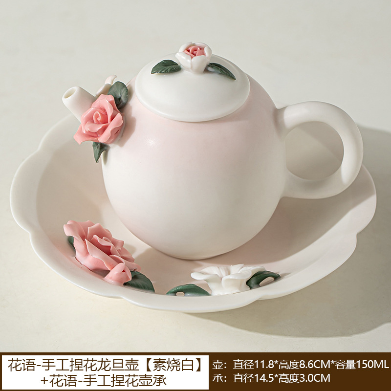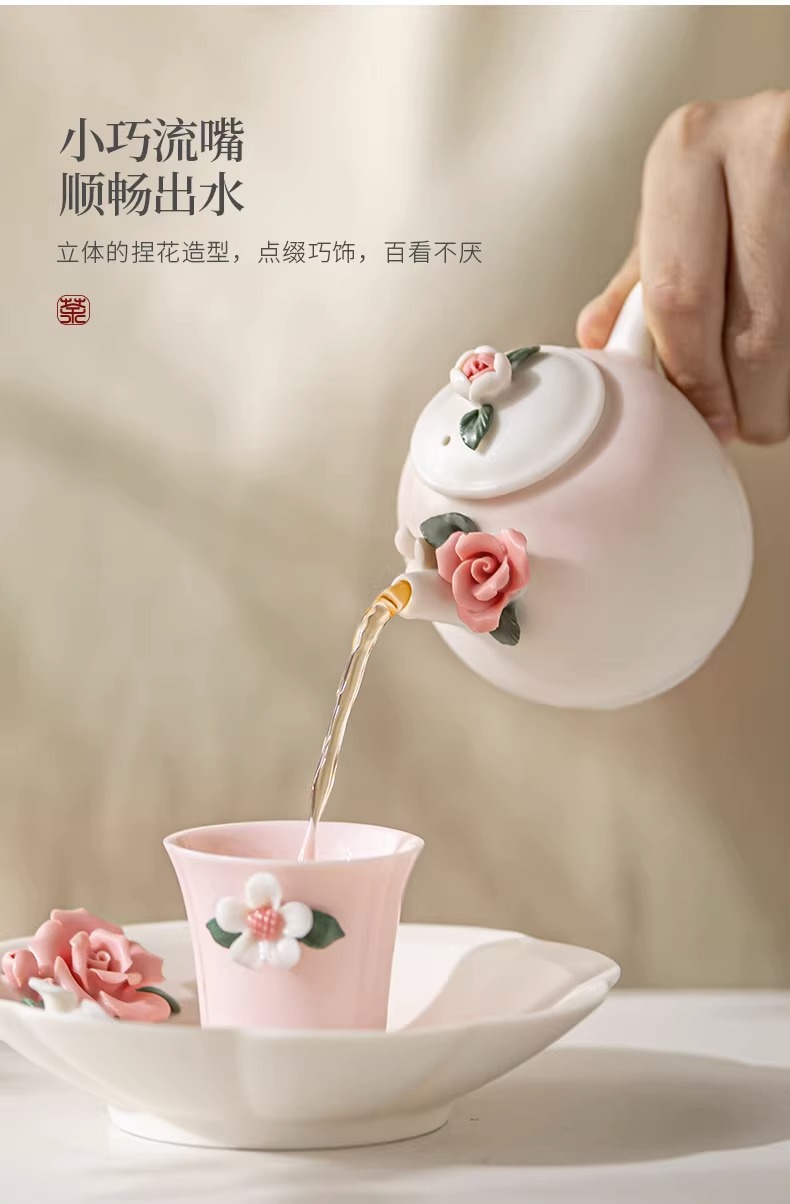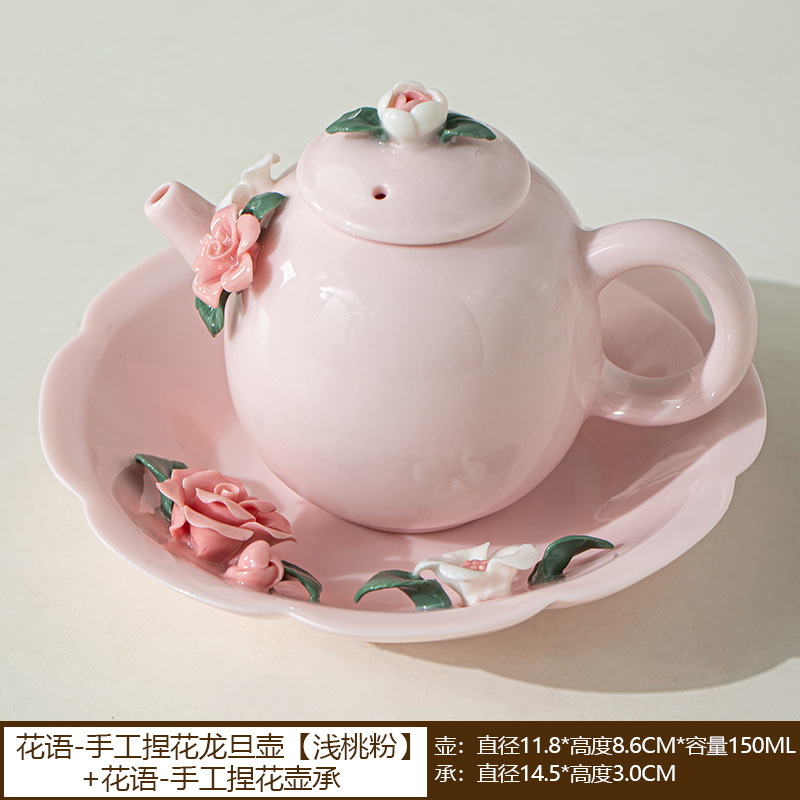 陶瓷茶具创意手捏花泡茶壶小容量粉嫩少女心单壶带壶承高端轻奢