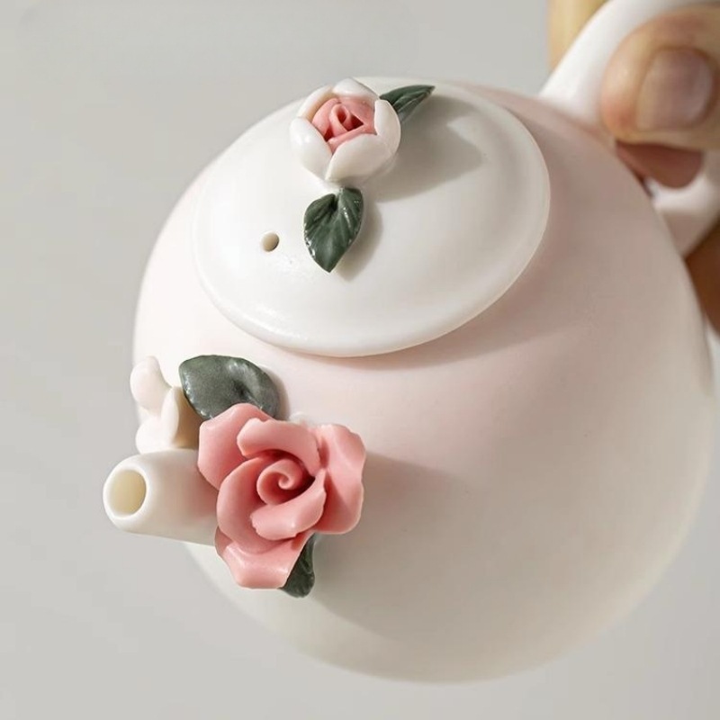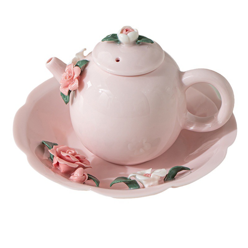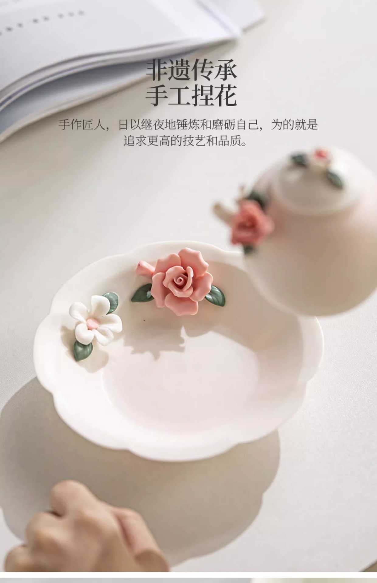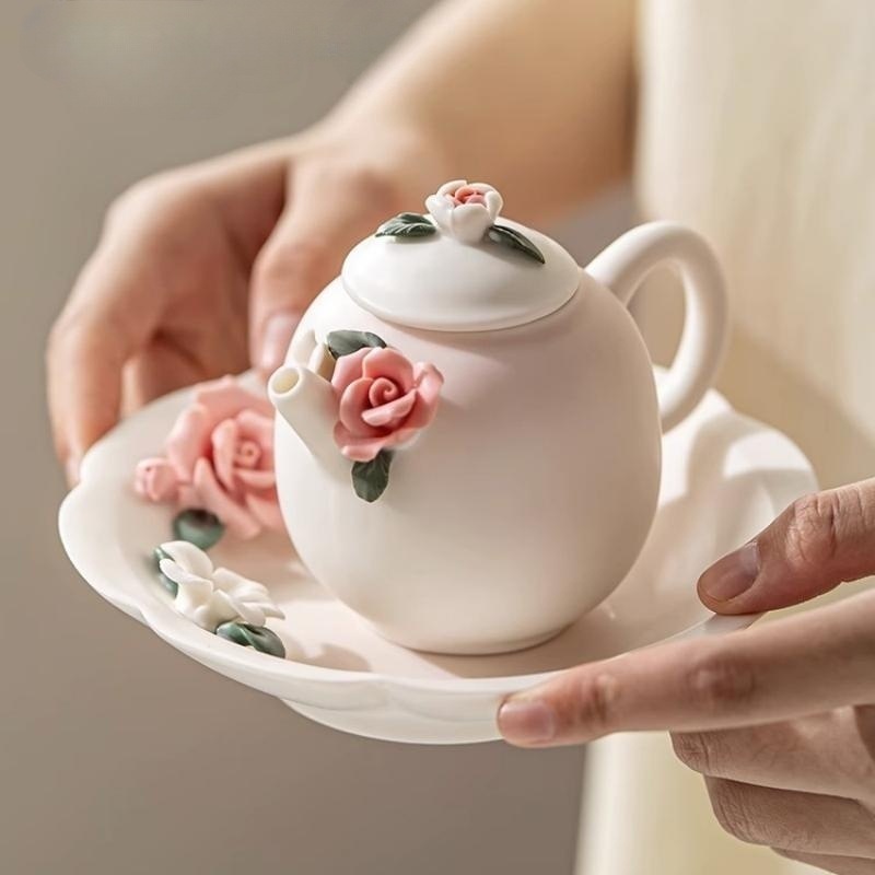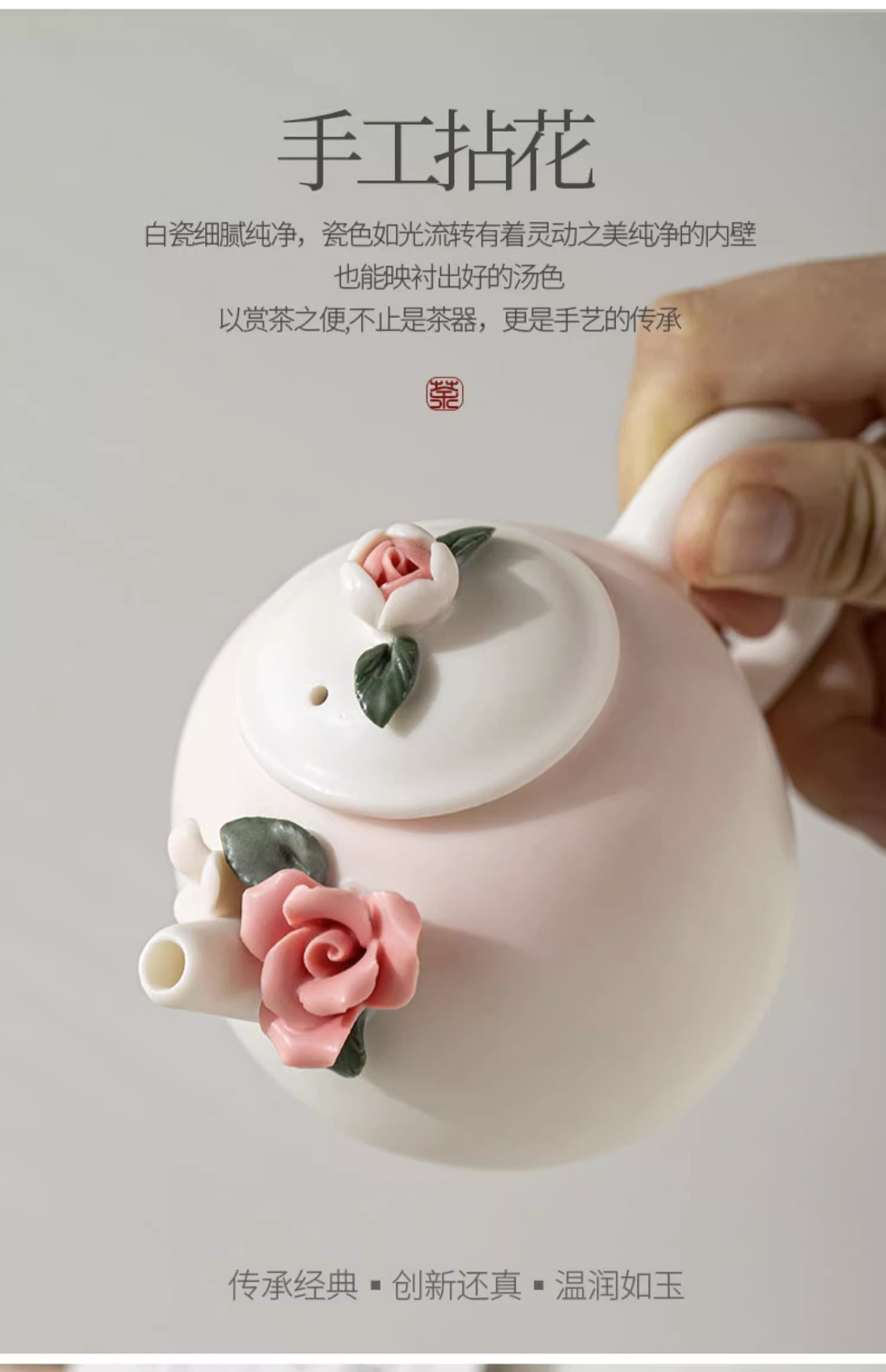 陶瓷茶具创意手捏花泡茶壶小容量粉嫩少女心单壶带壶承高端轻奢