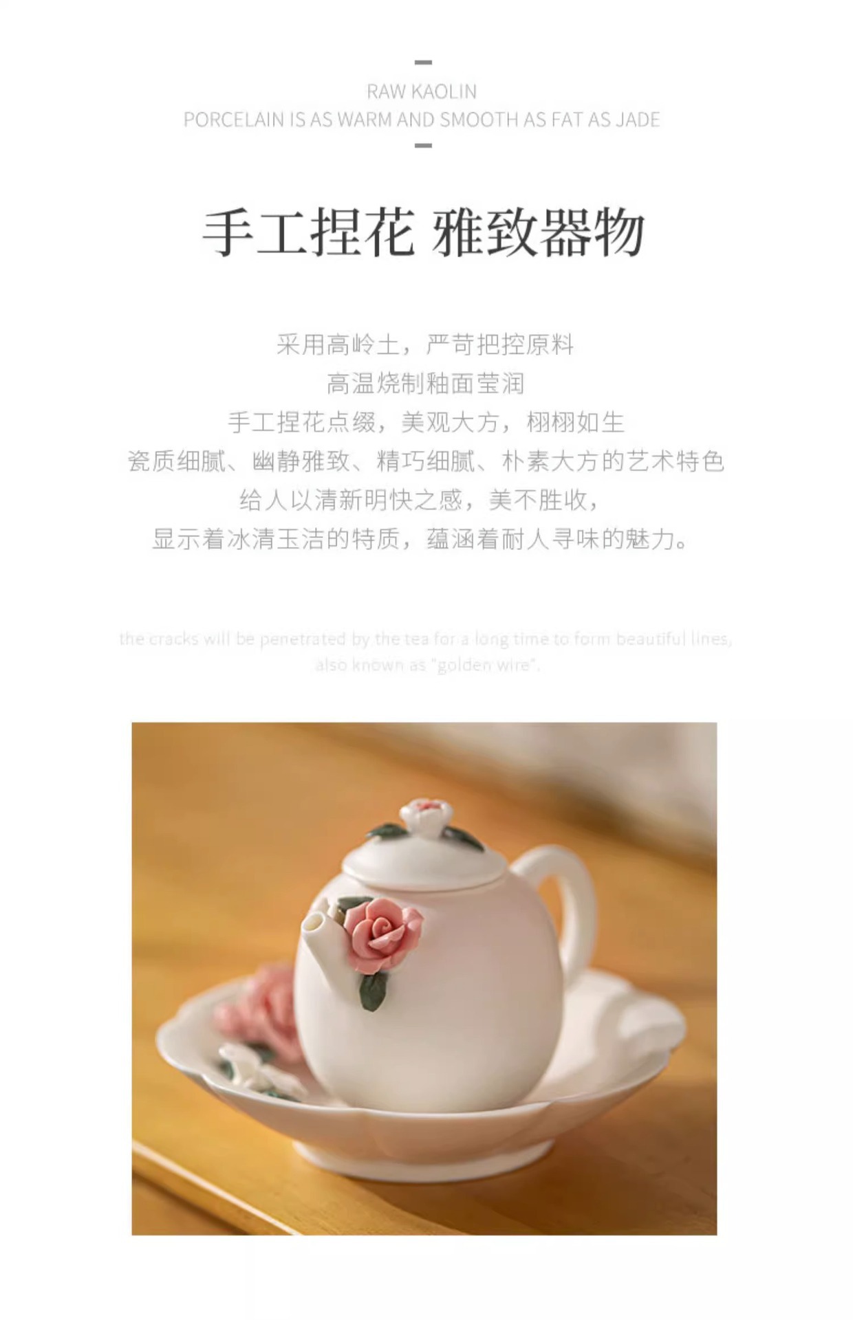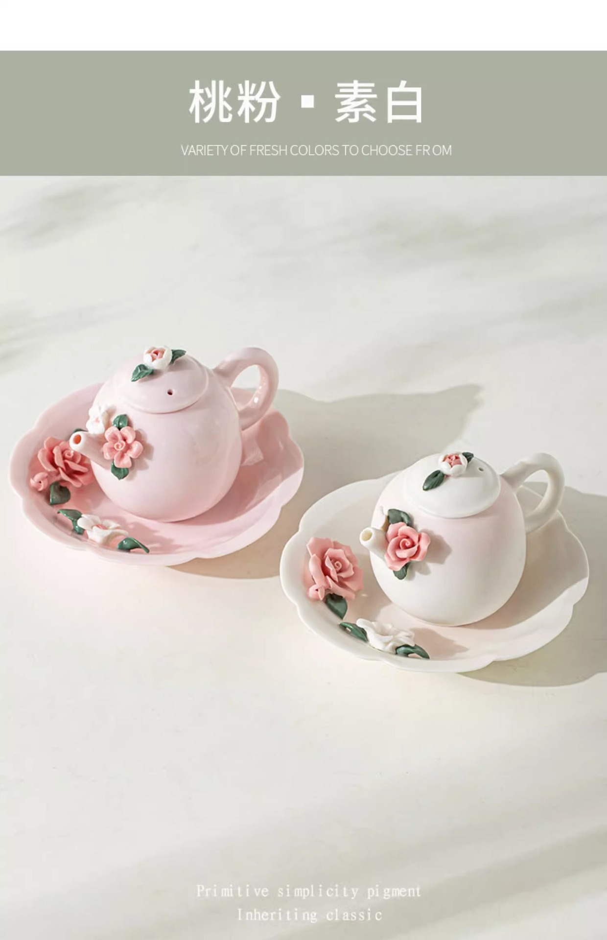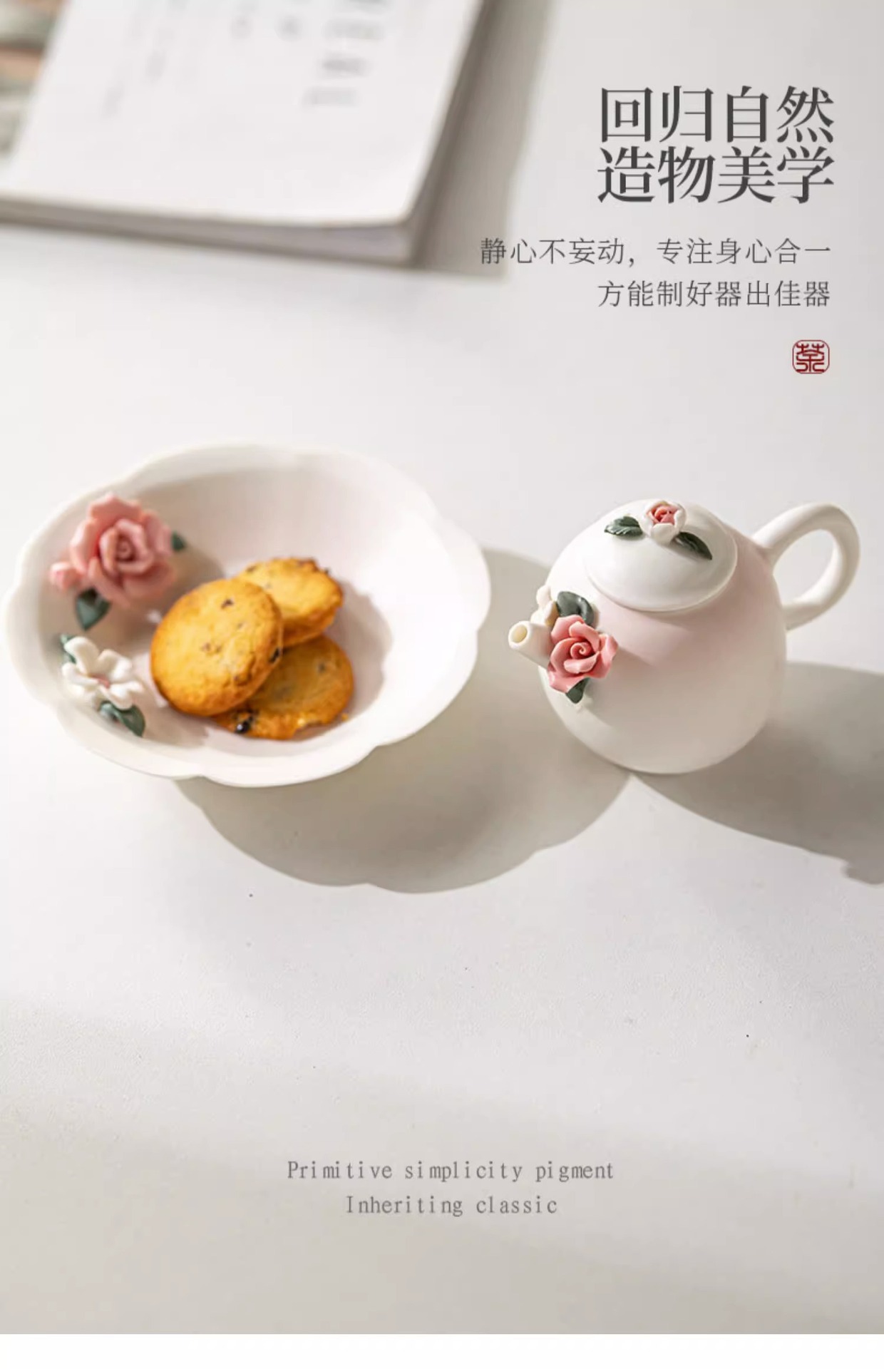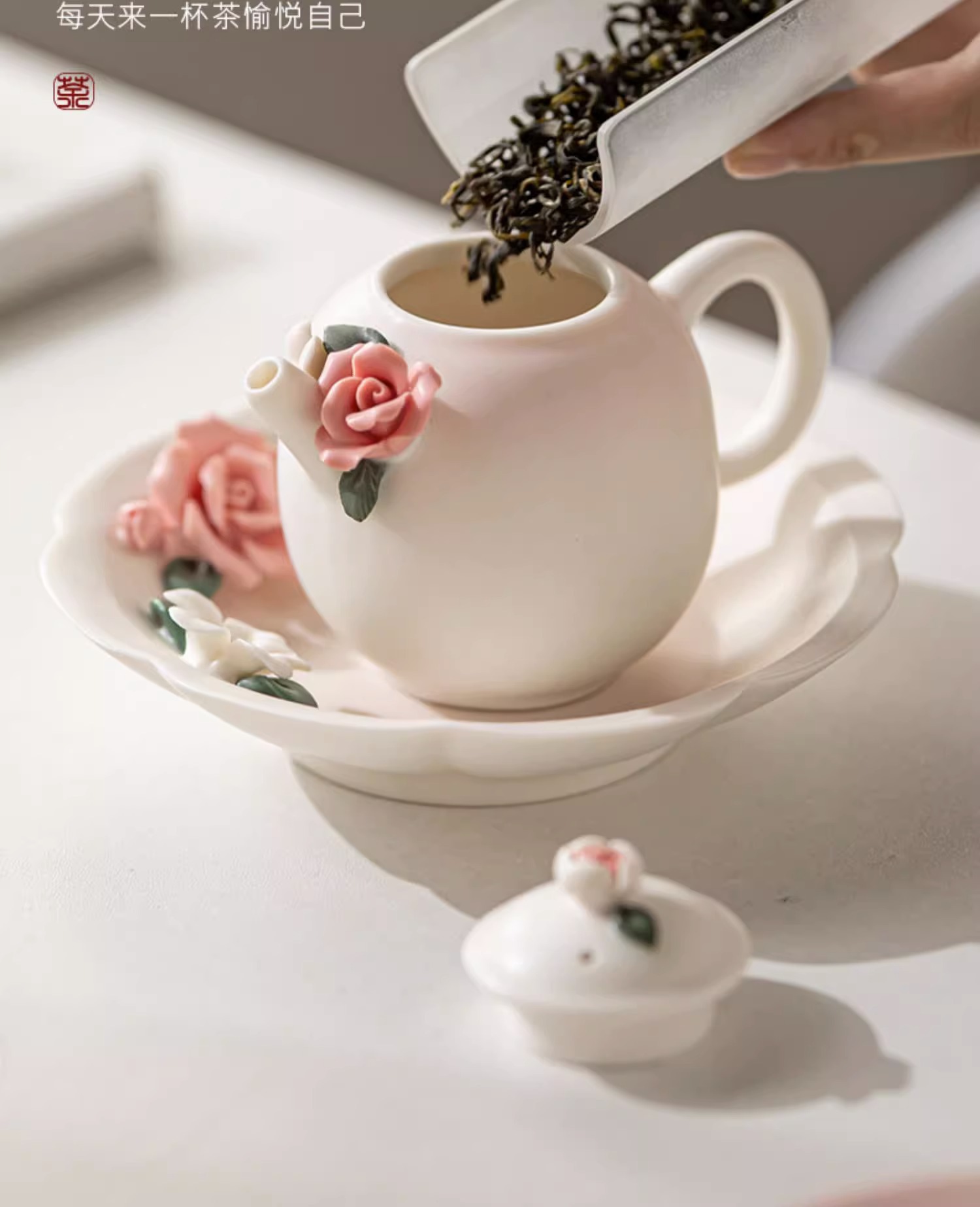 陶瓷茶具创意手捏花泡茶壶小容量粉嫩少女心单壶带壶承高端轻奢