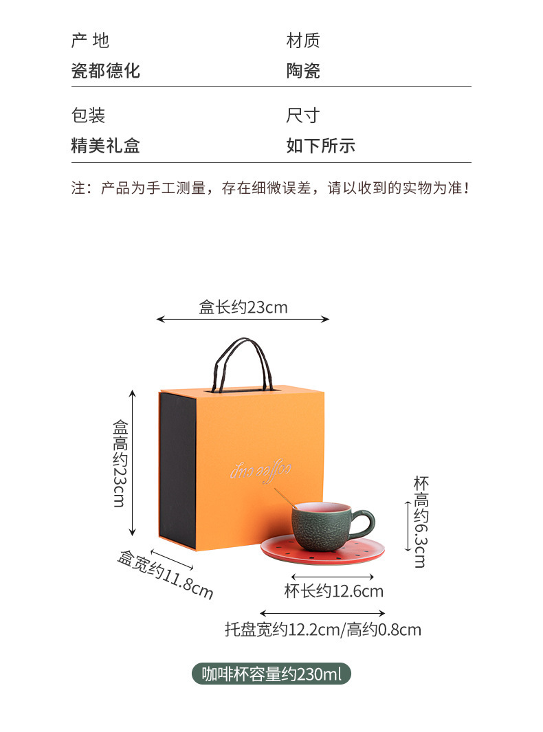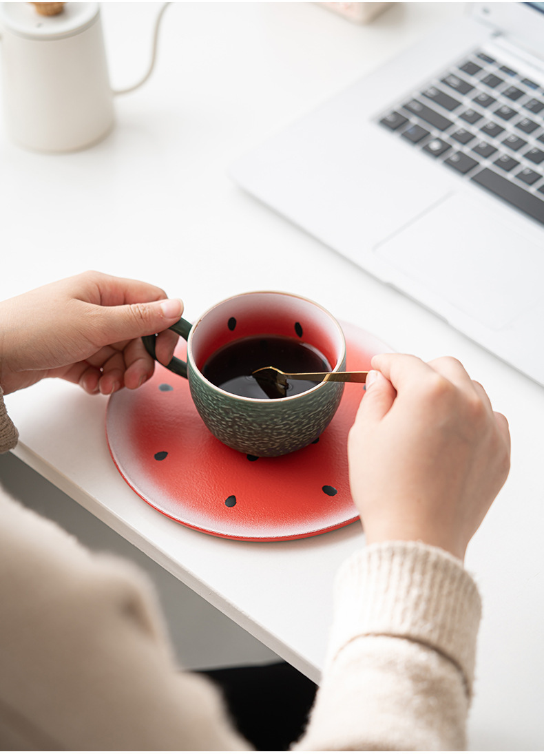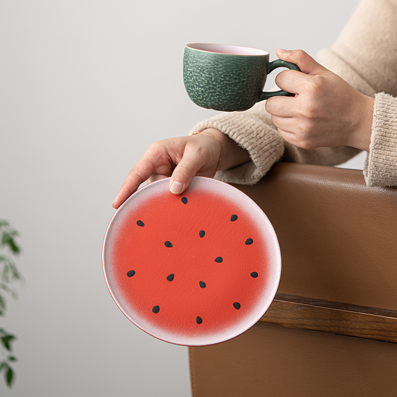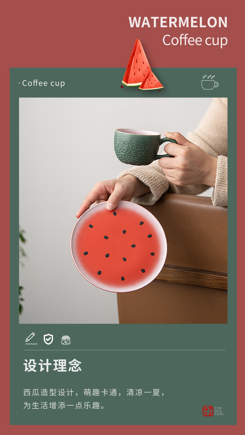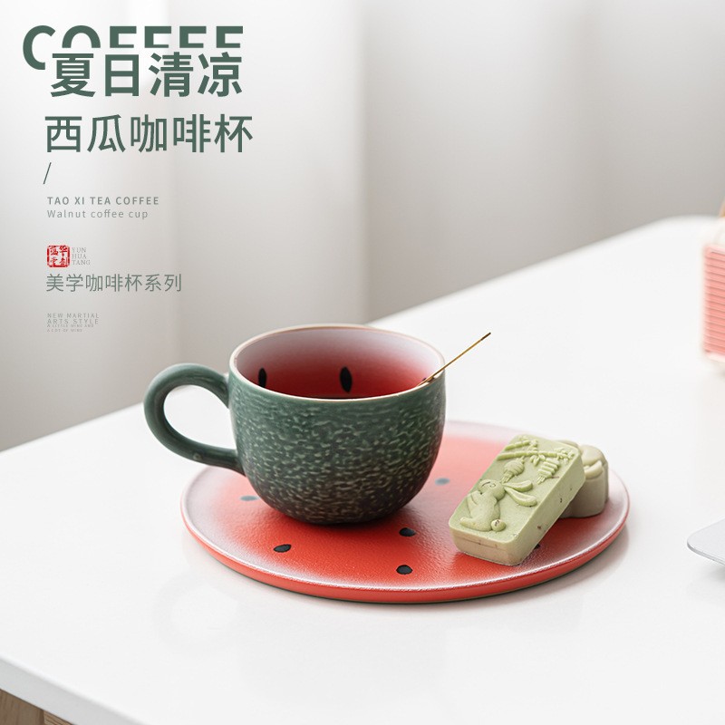 咖啡杯创意陶瓷水杯西瓜杯碟套装马克杯早餐牛奶艺术茶杯下午茶杯
