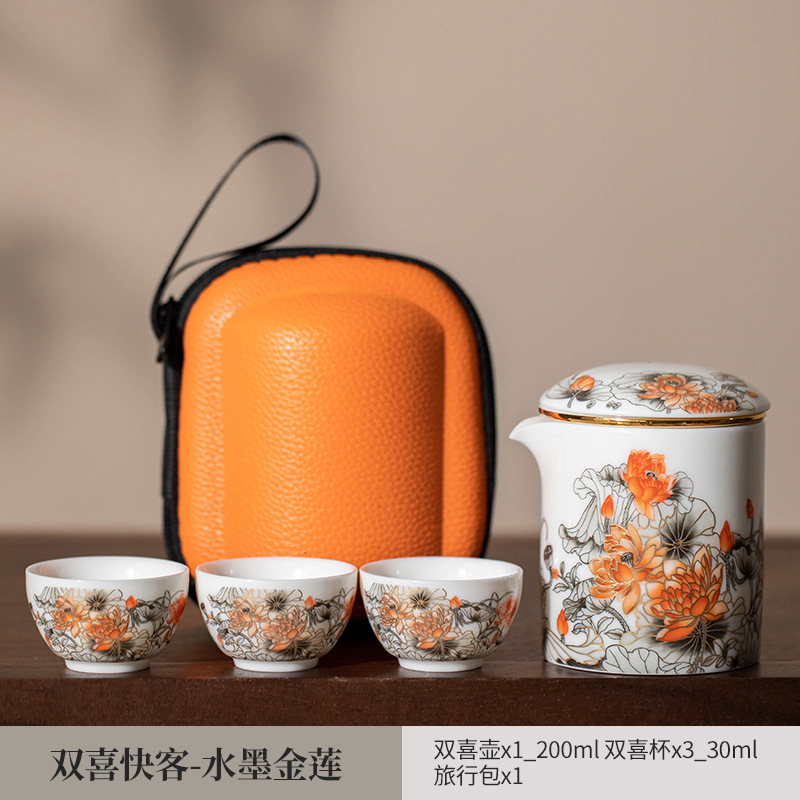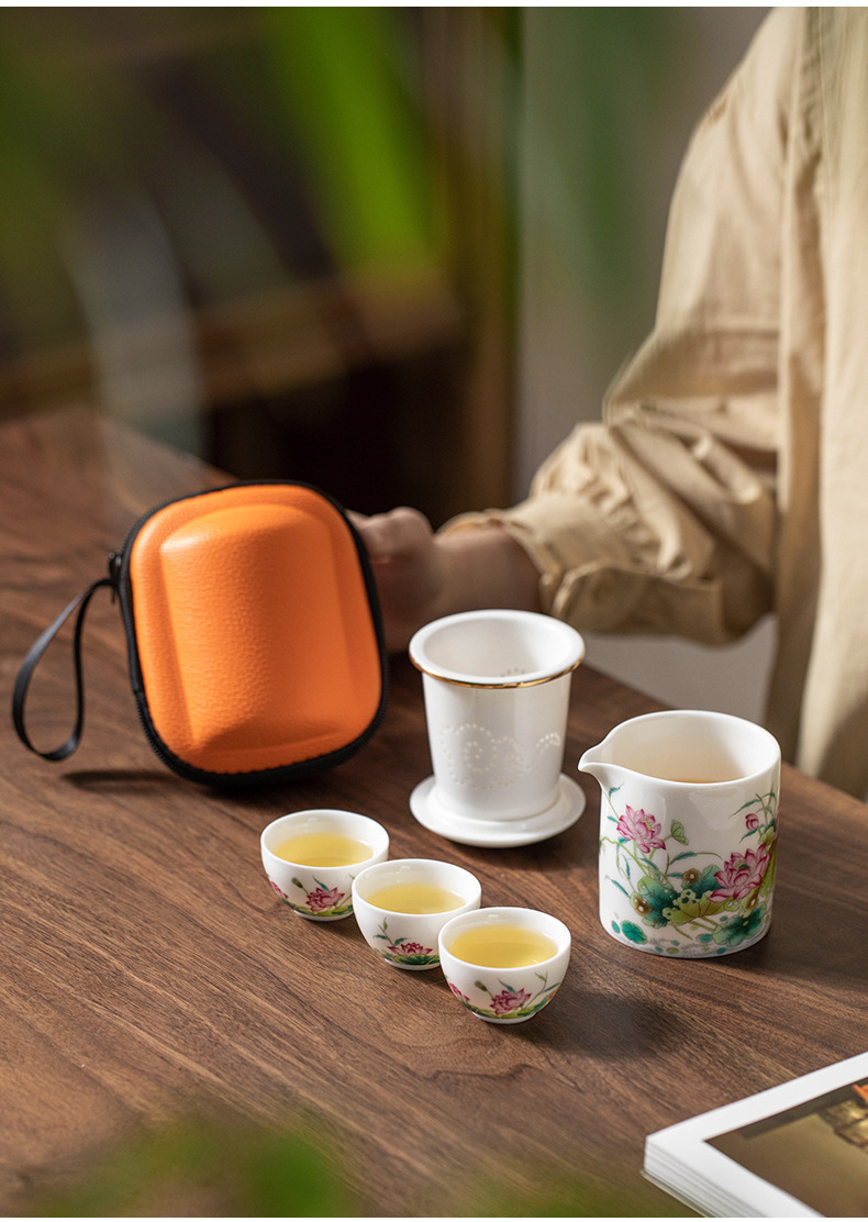日式旅行功夫茶具小套装家用简约泡茶壶陶瓷茶杯户外茶盘便携式包