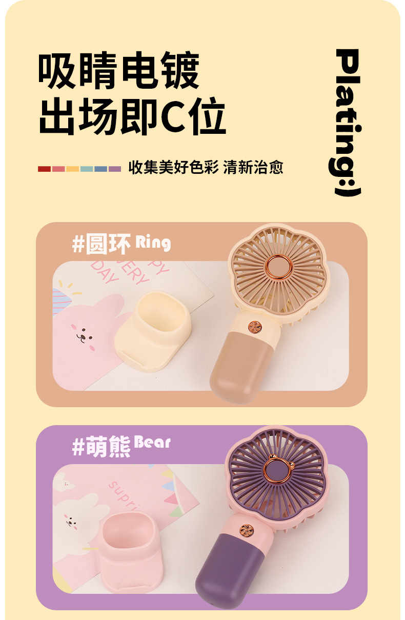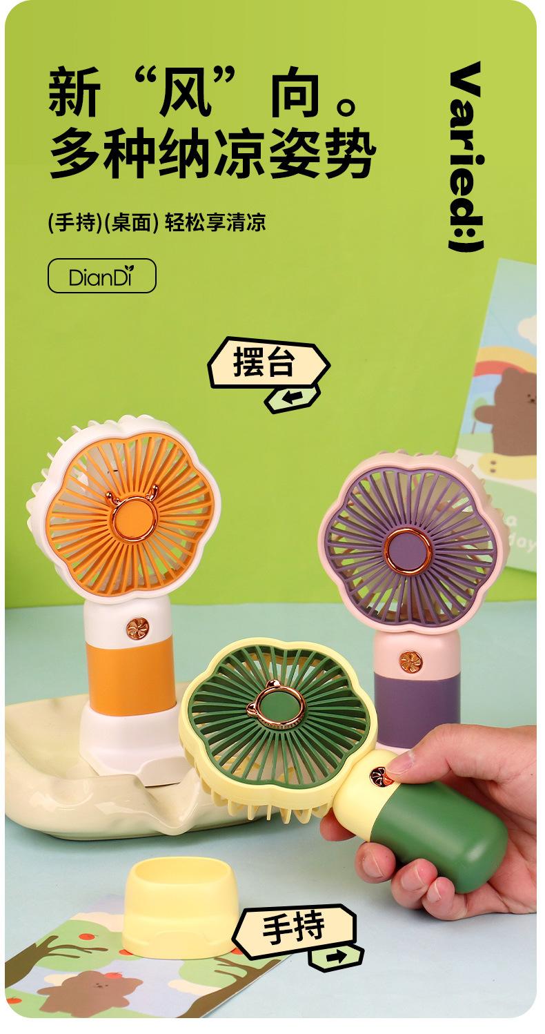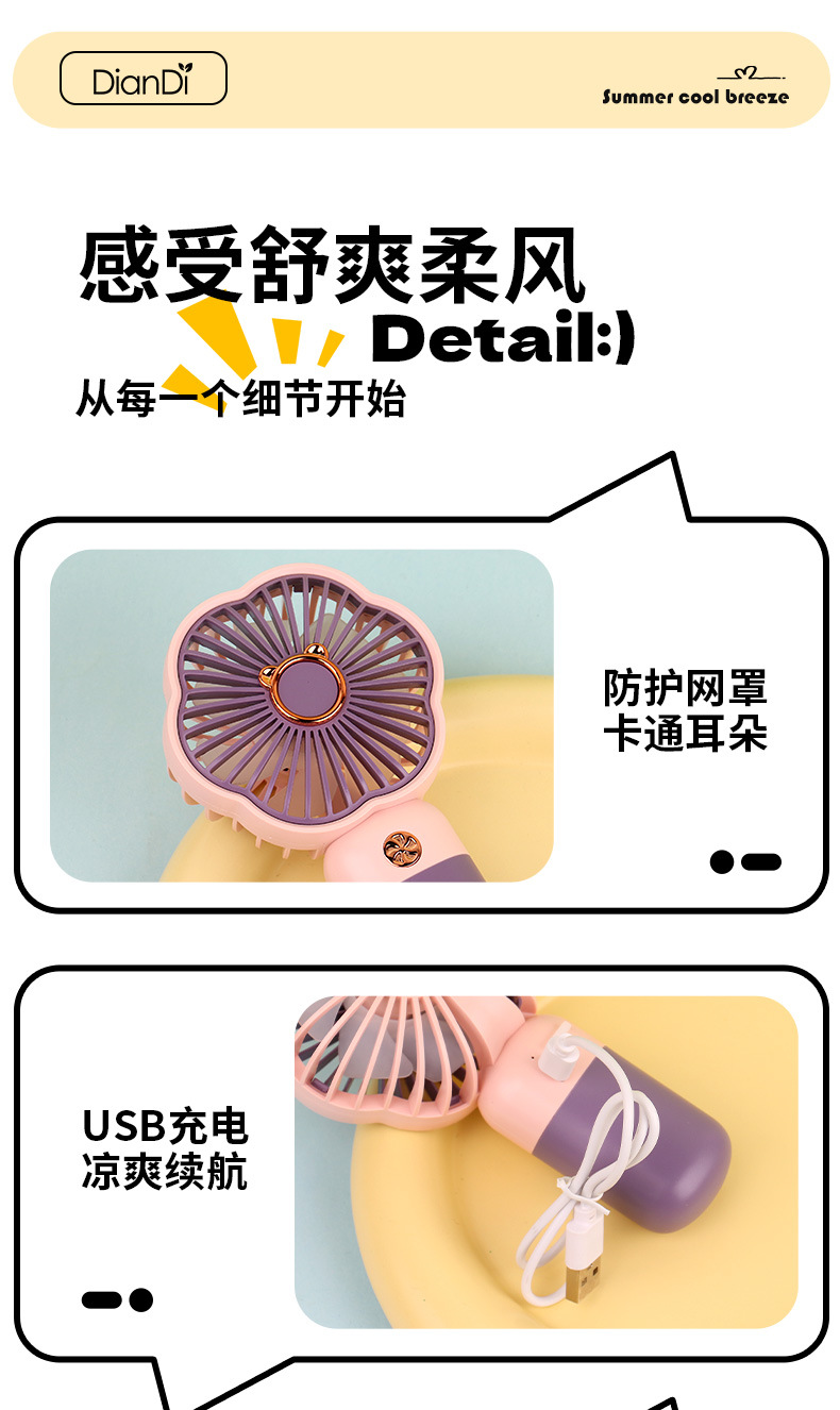 跨境创意卡通USB充电小风扇户外便携迷你手持桌面电风扇厂家批发