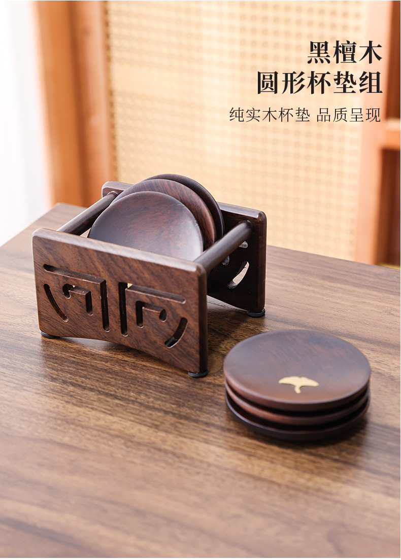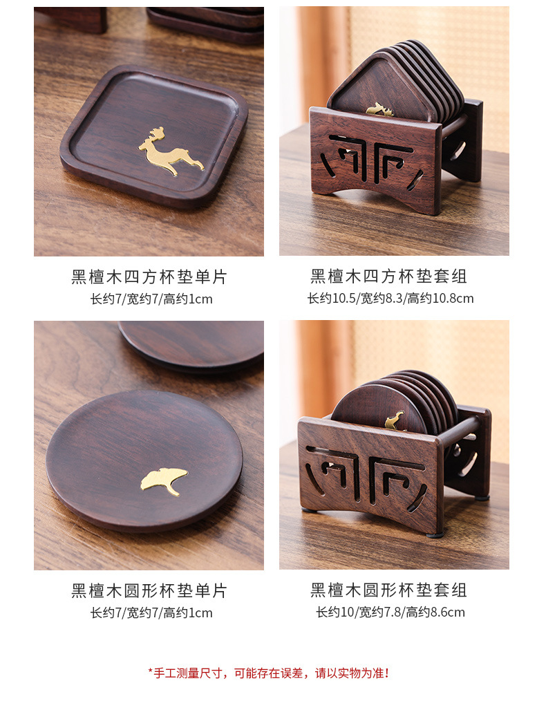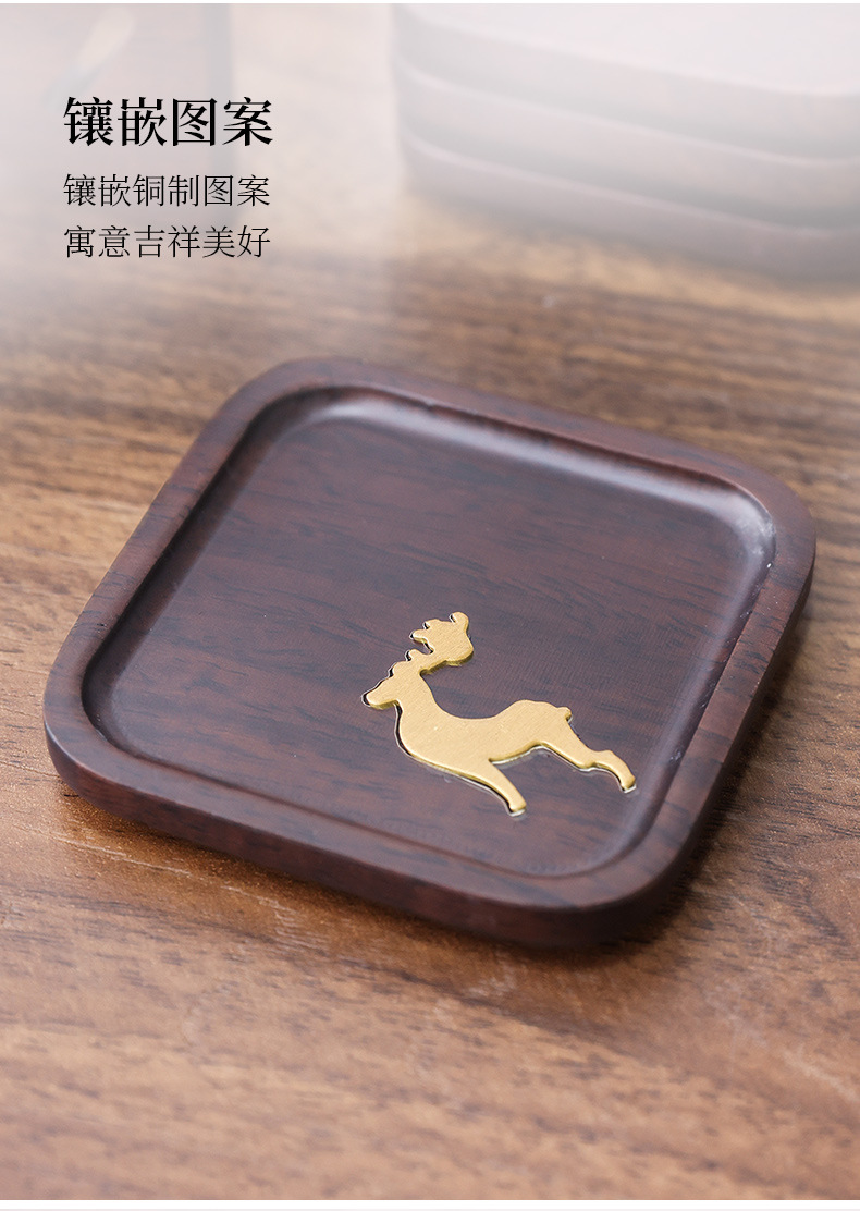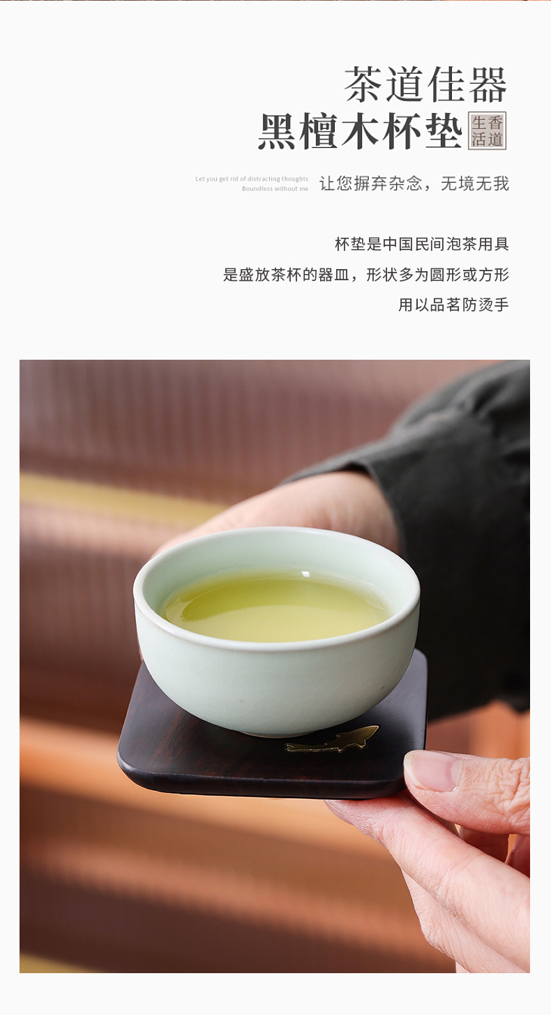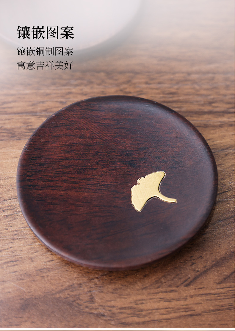 黑檀木中式隔热垫茶杯垫茶道配件实木防烫创意铜木茶托茶具茶碟