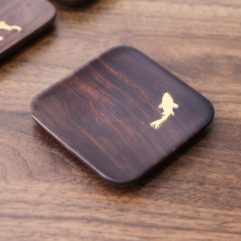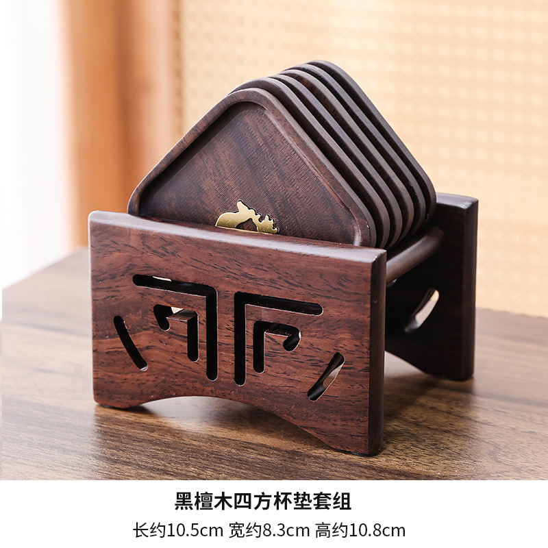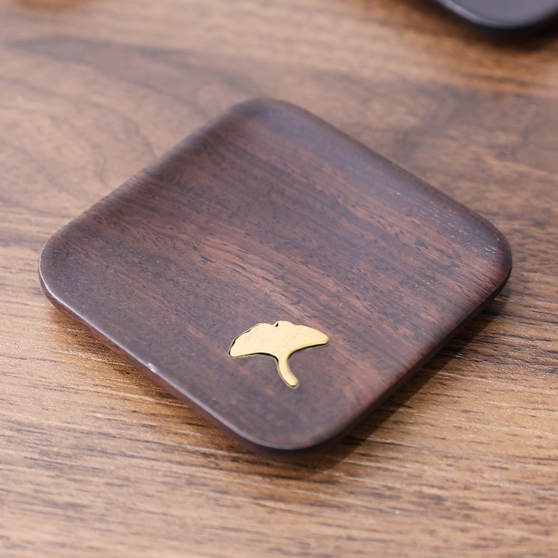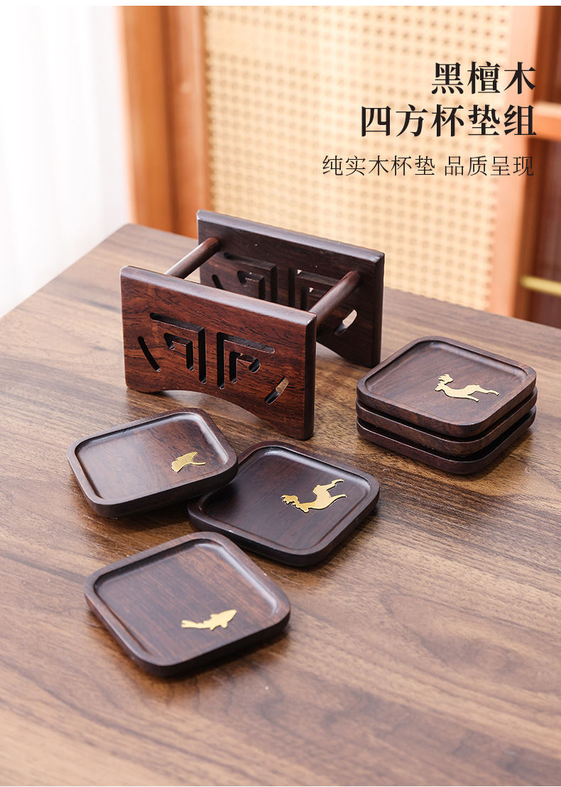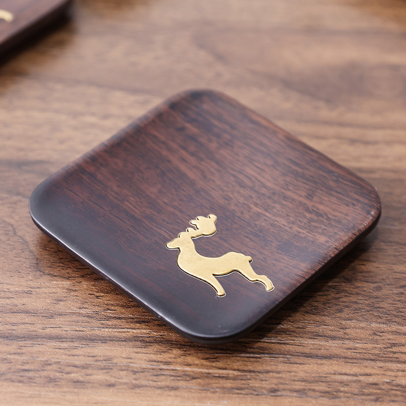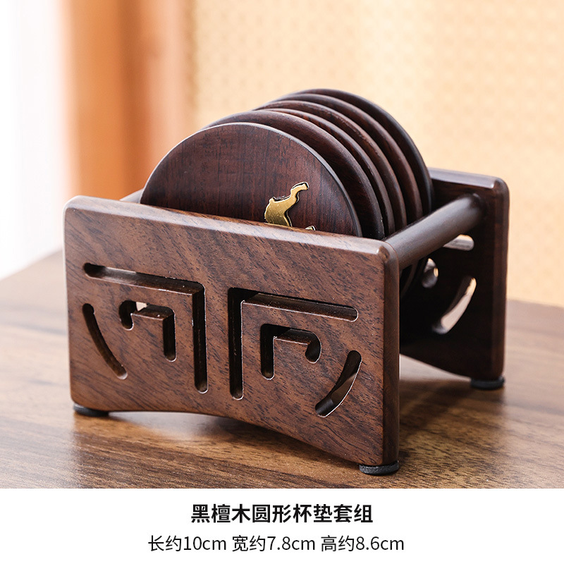 黑檀木中式隔热垫茶杯垫茶道配件实木防烫创意铜木茶托茶具茶碟