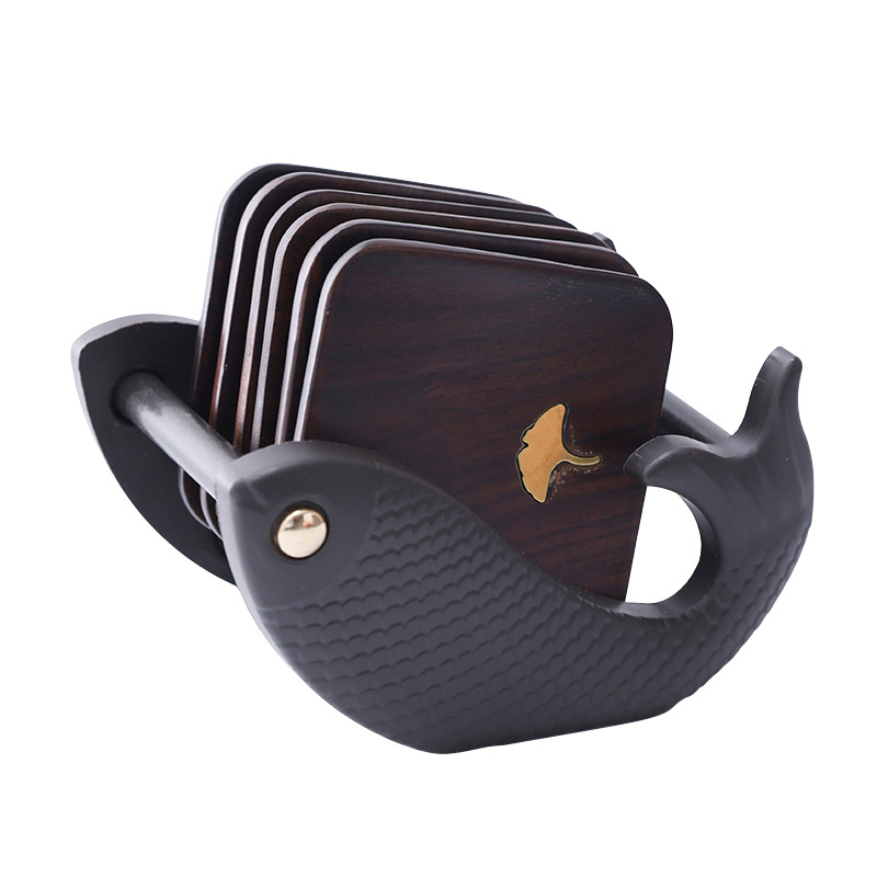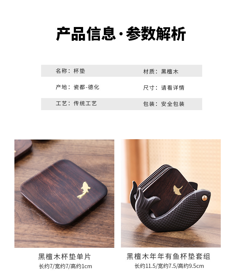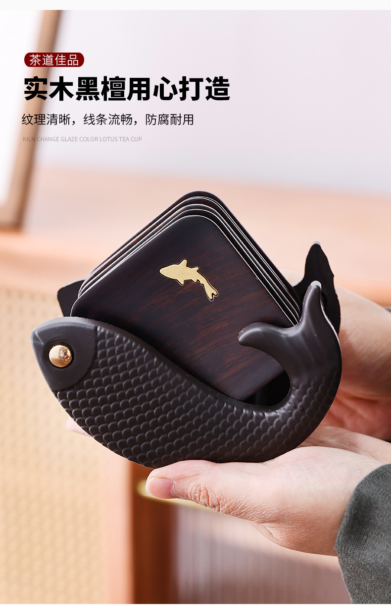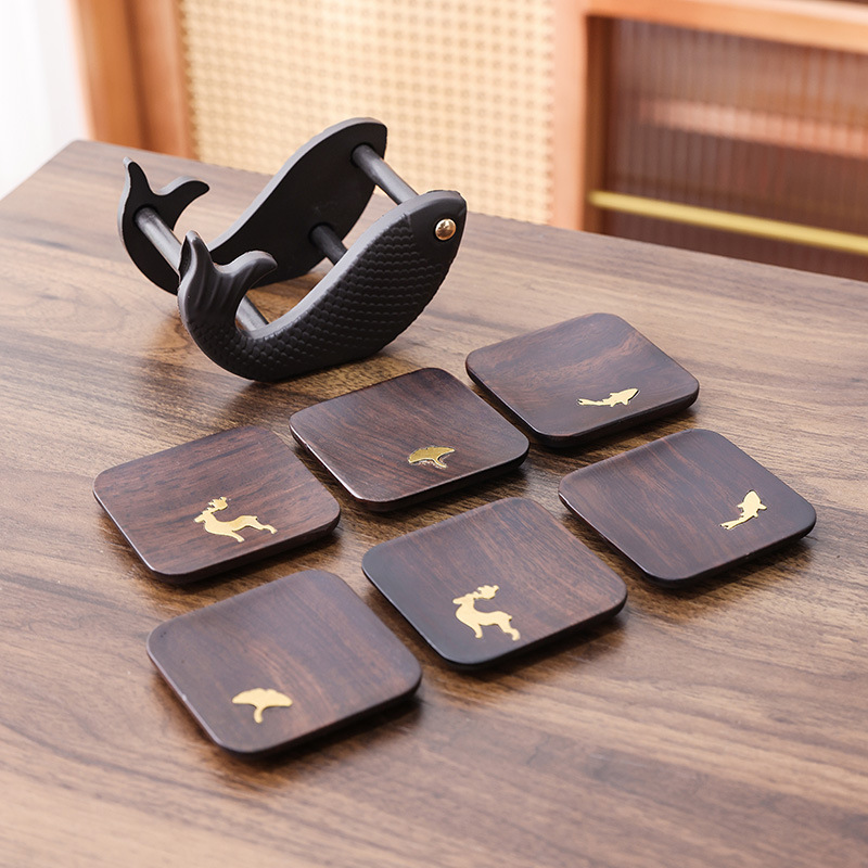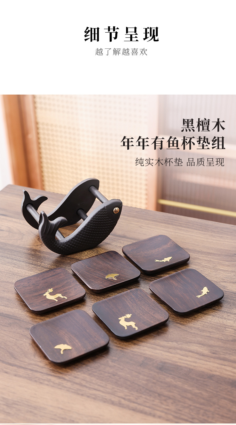 黑檀木中式隔热垫茶杯垫茶道配件实木防烫创意铜木茶托茶具茶碟