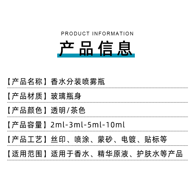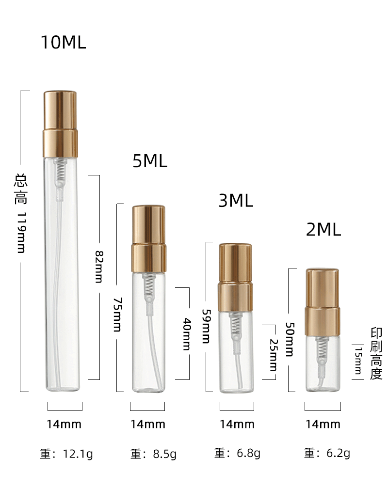 小样香水分装瓶 2ml 3ml 5ml 10ml香水玻璃喷雾瓶 香水旅行分装瓶