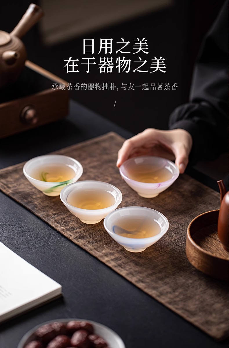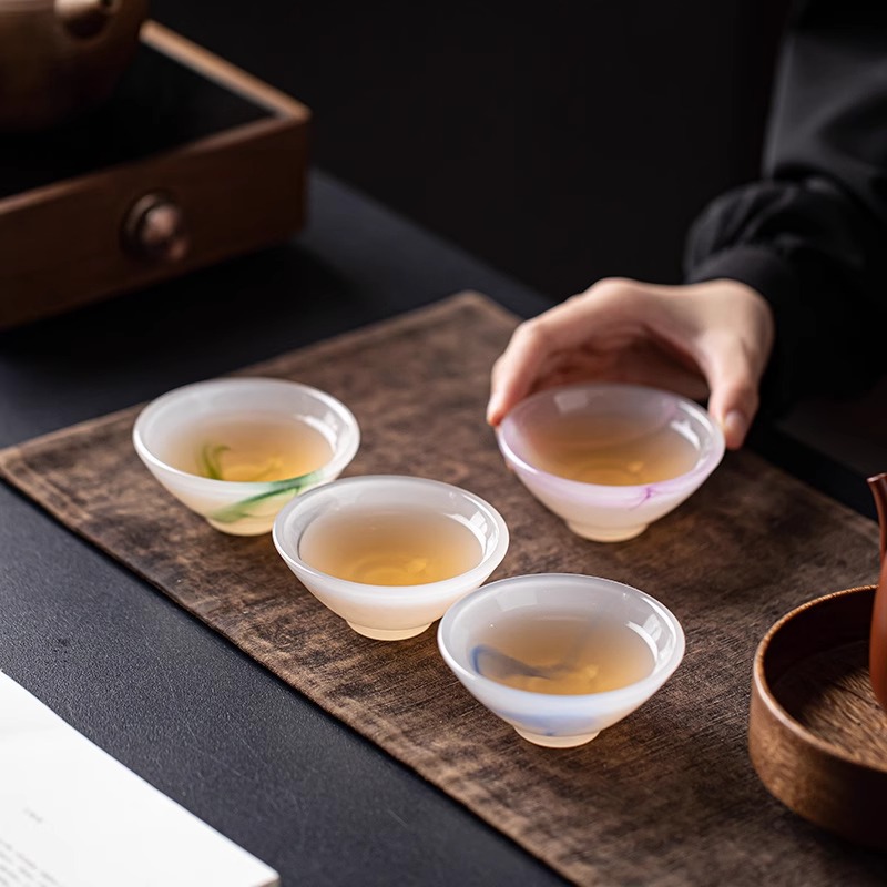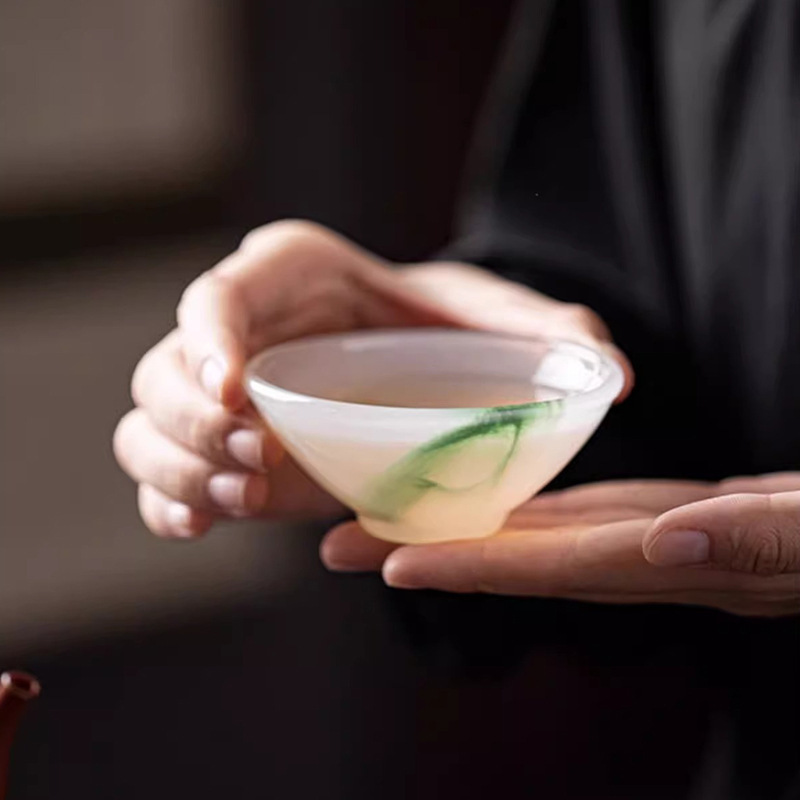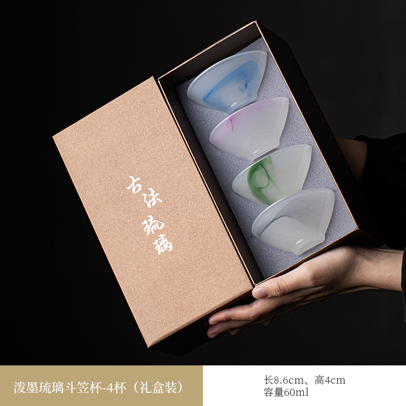古法琉璃主人杯礼盒装单杯家用办公室茶杯会客品茗杯送礼斗笠杯