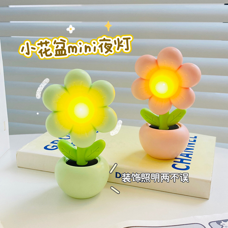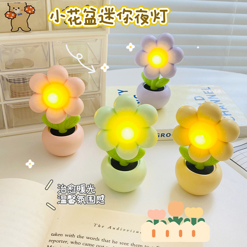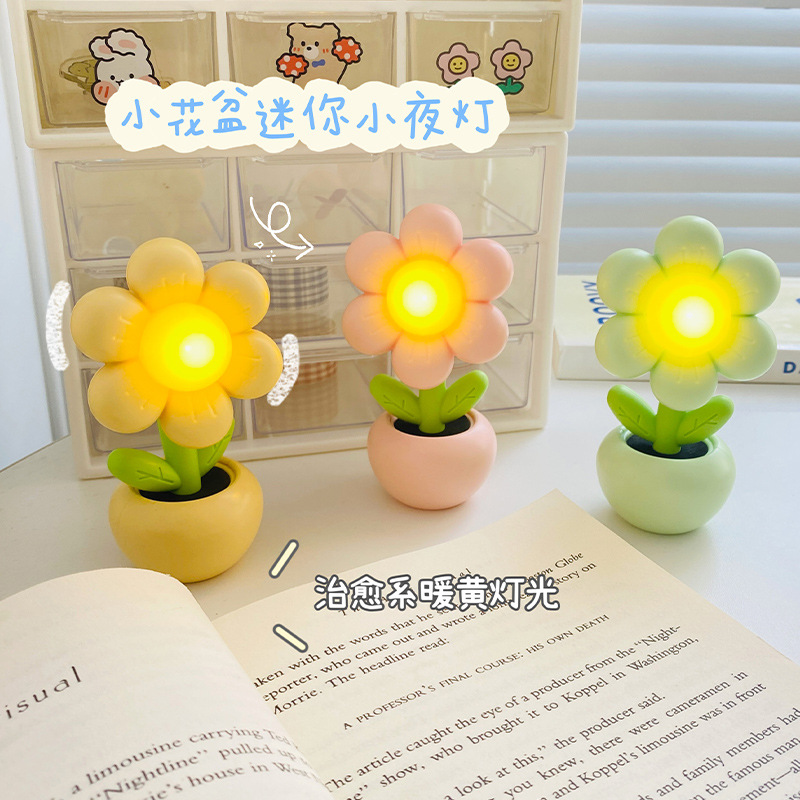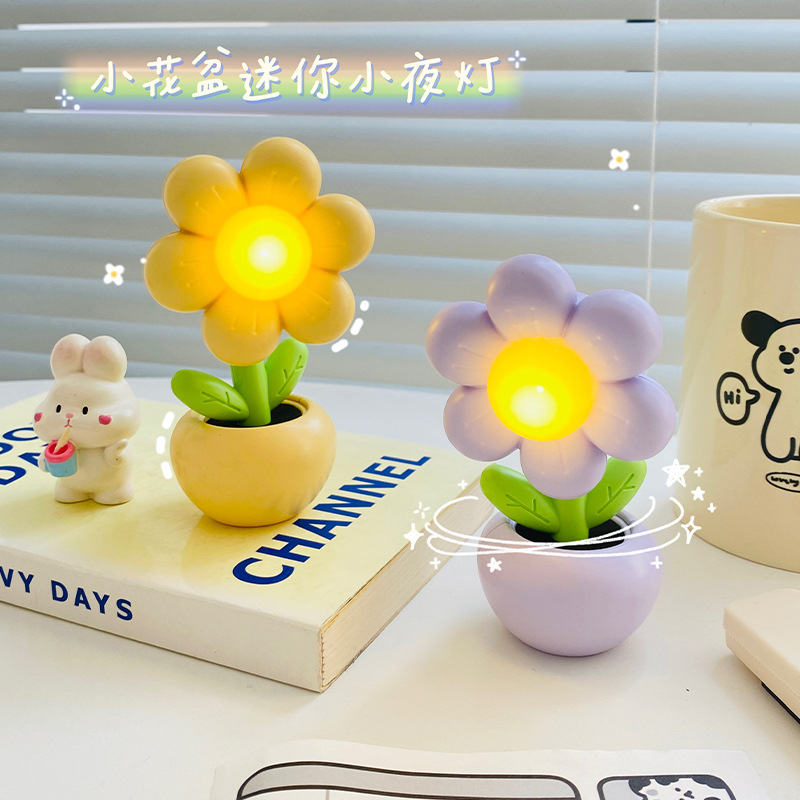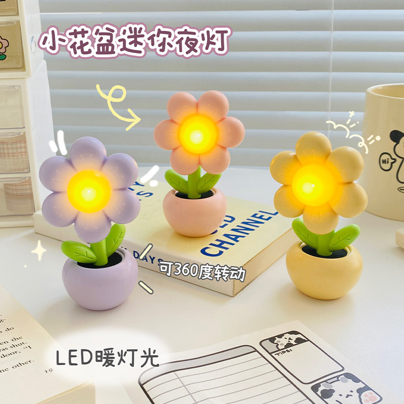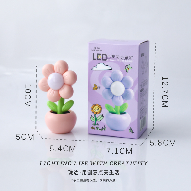 迷你卡通小花花小台灯儿童学生卧室摆件装饰小夜灯暖光桌面学习灯