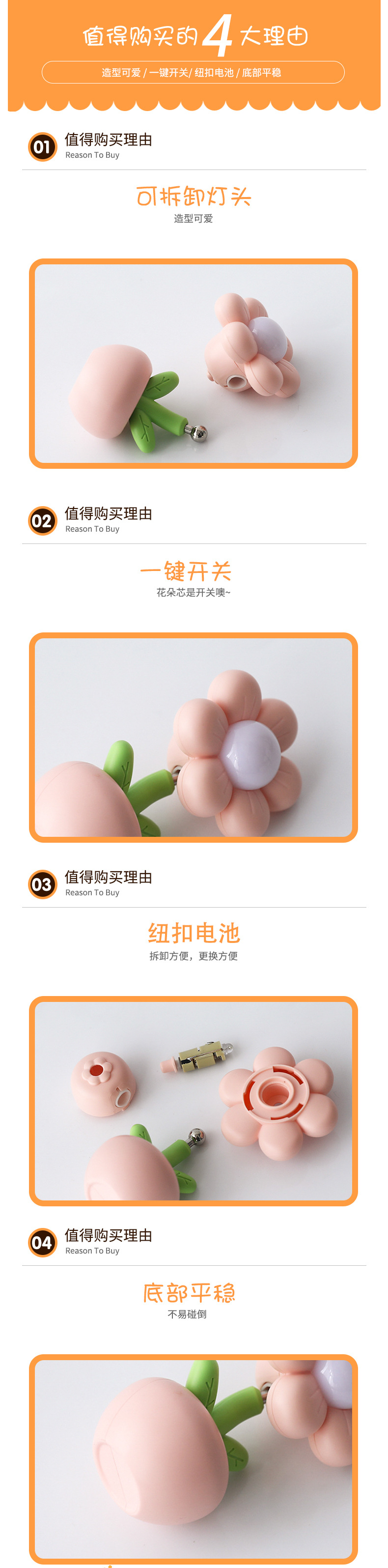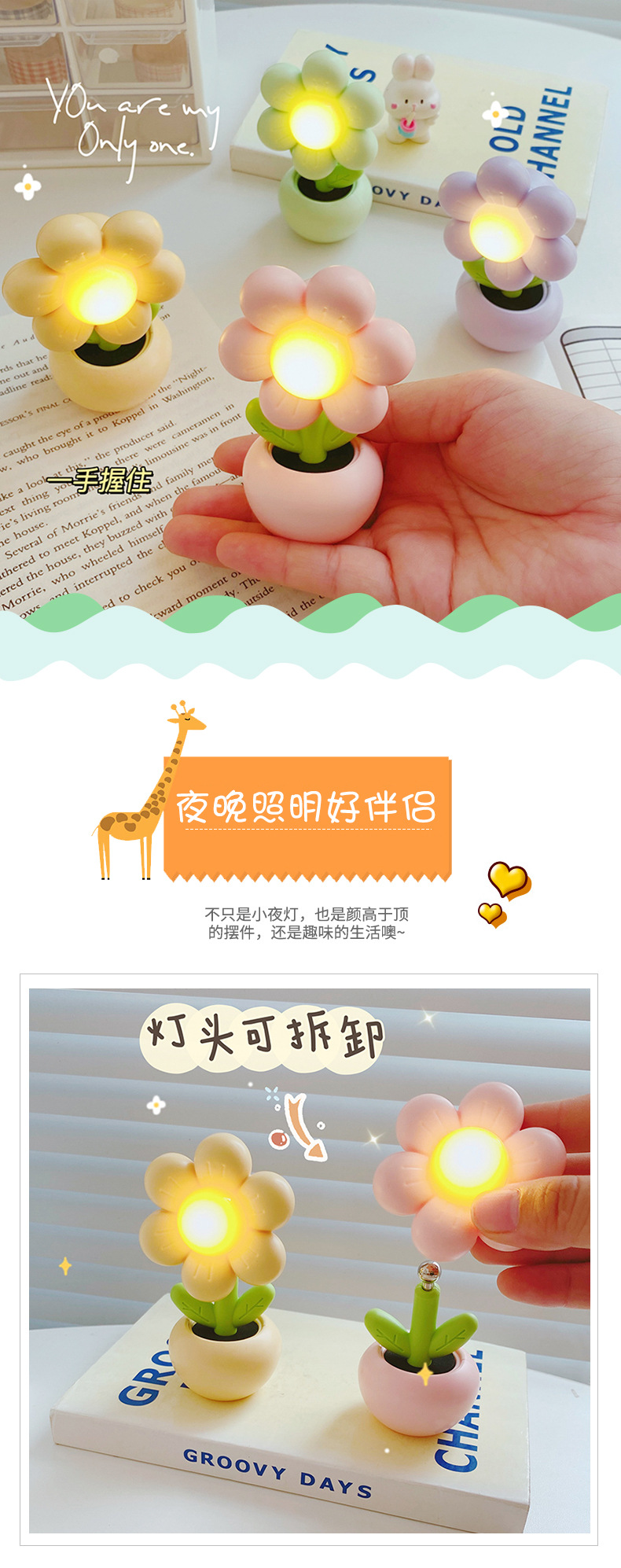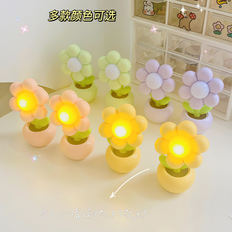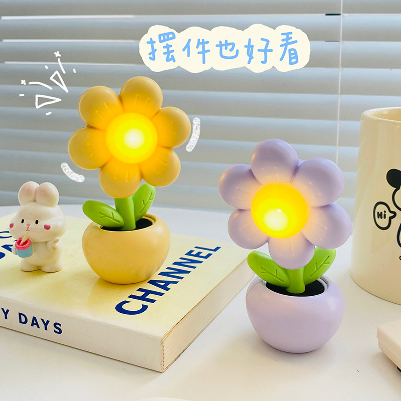 迷你卡通小花花小台灯儿童学生卧室摆件装饰小夜灯暖光桌面学习灯
