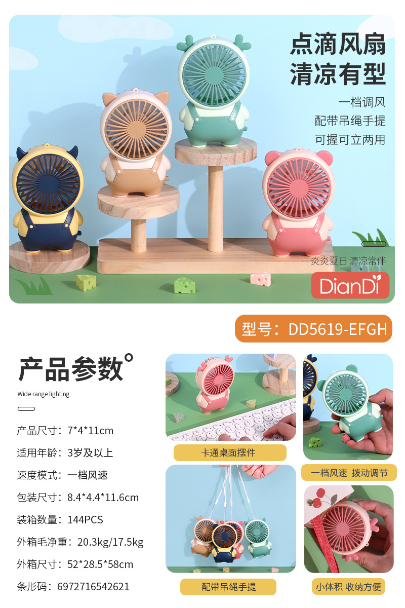儿童萌趣手持小风扇便携式迷你电扇 USB充电学生礼品风扇外贸厂家