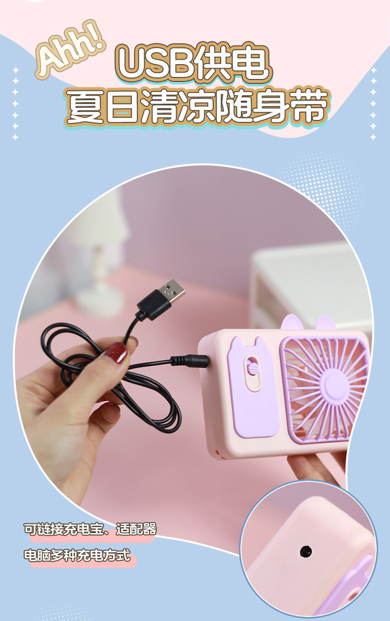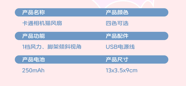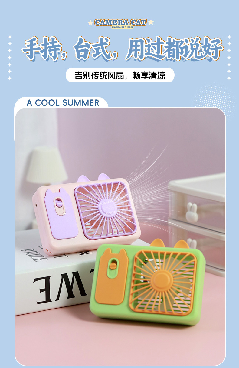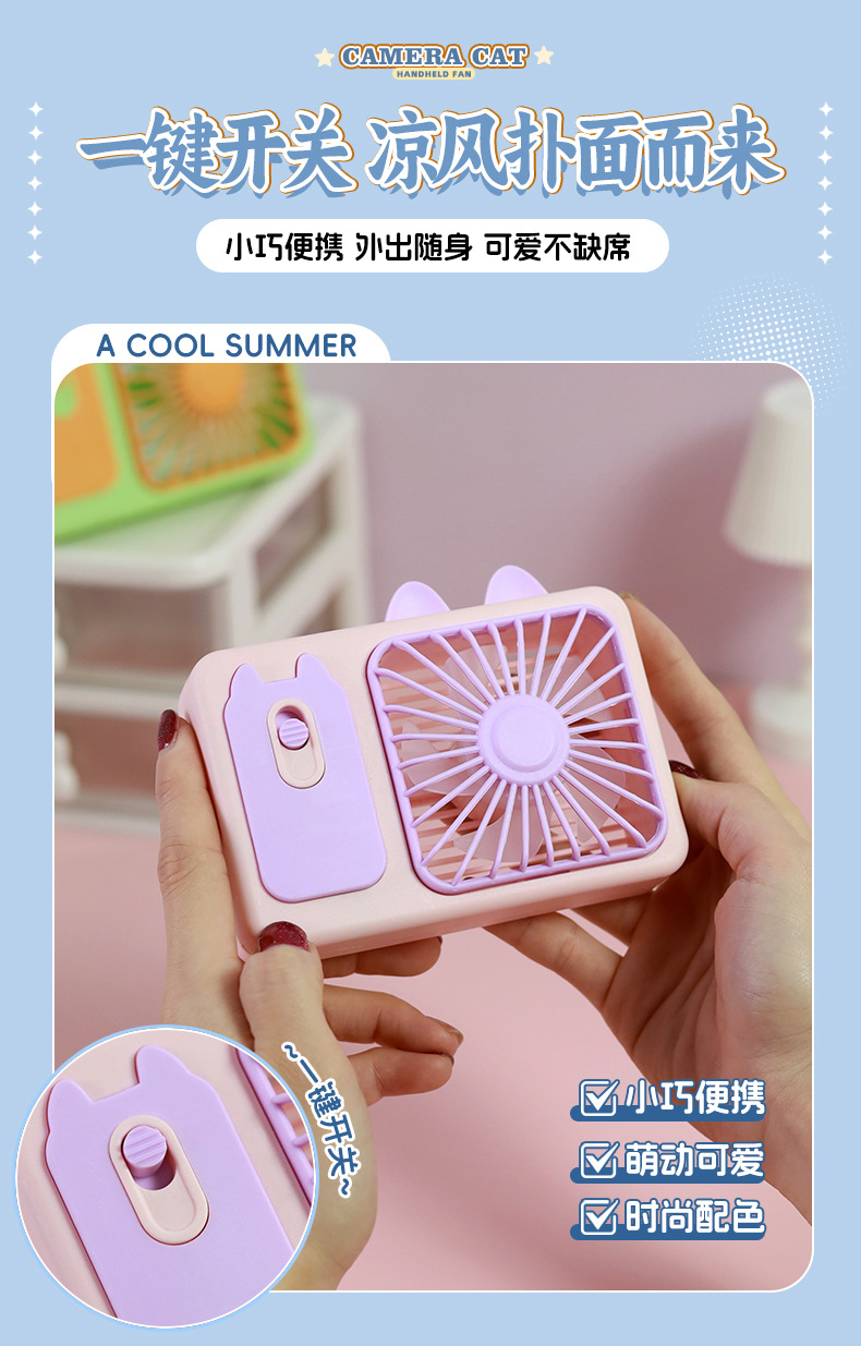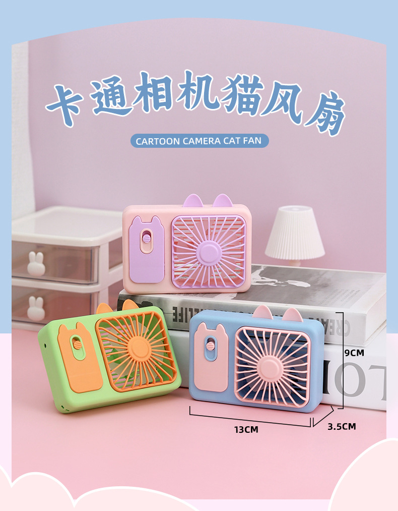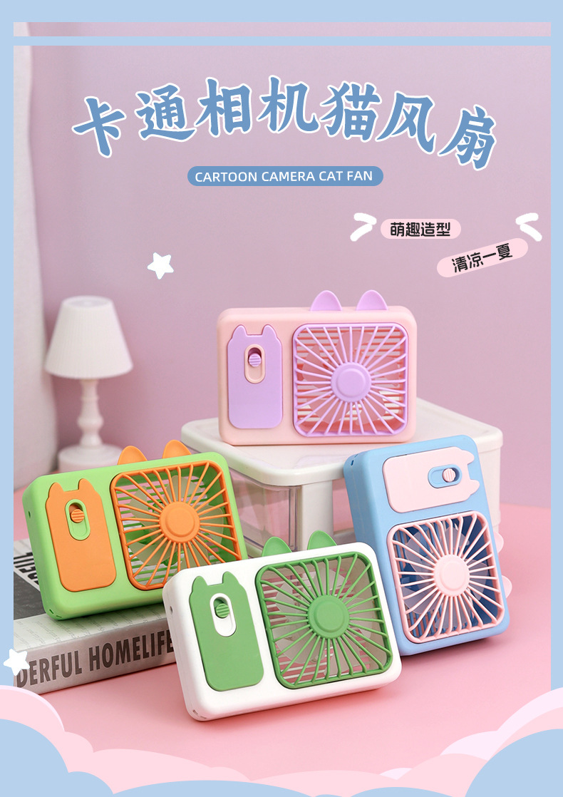 卡通相机猫小风扇夏季迷你 usb充电办公室桌面便携跨境电风扇厂家