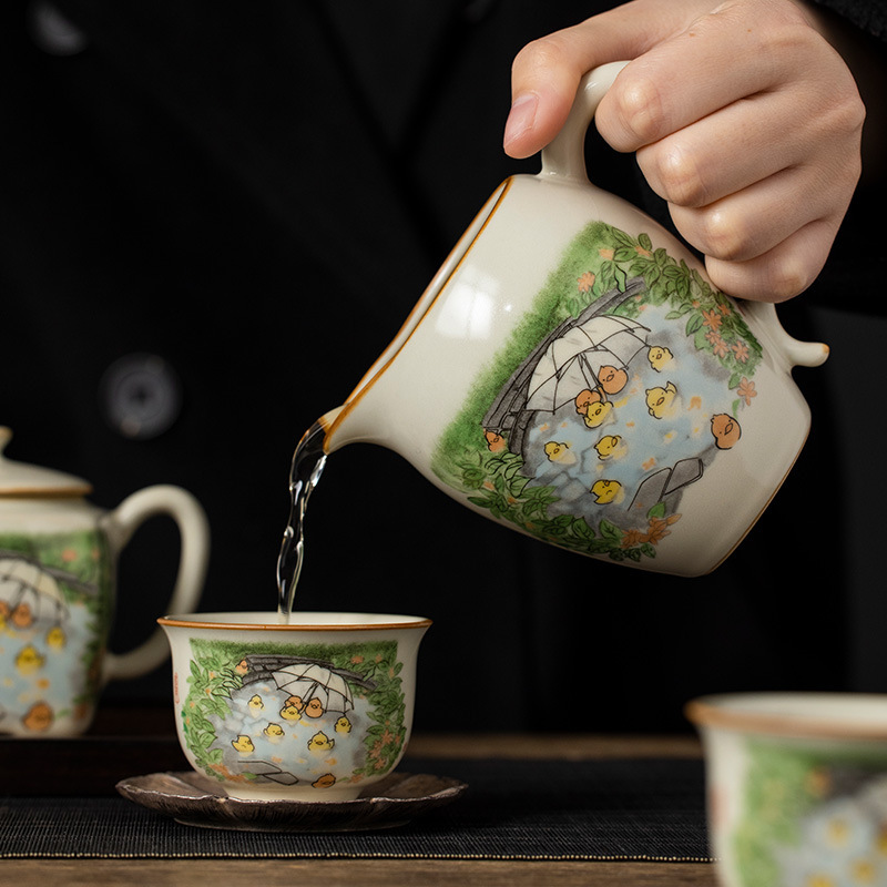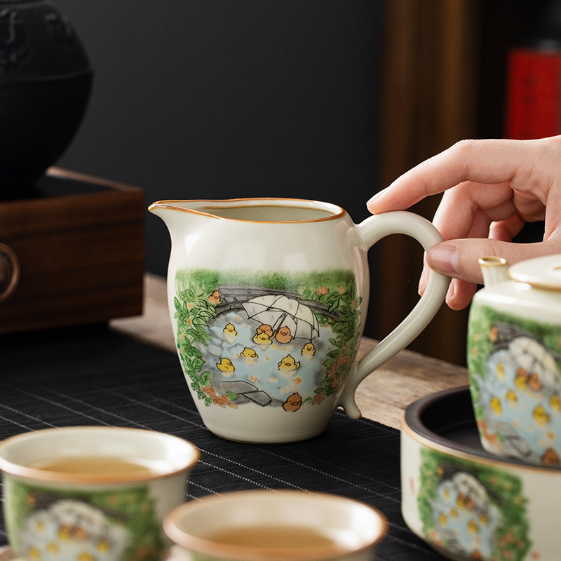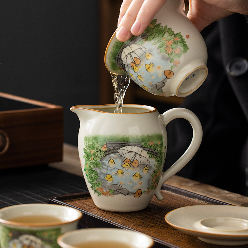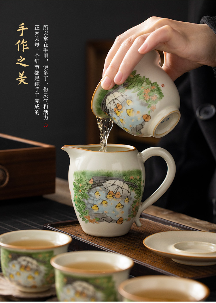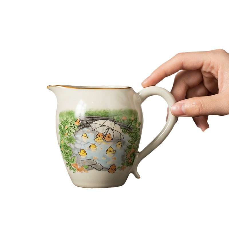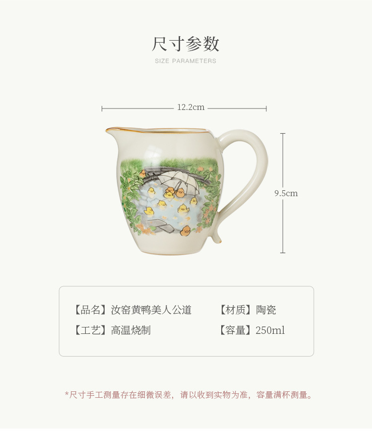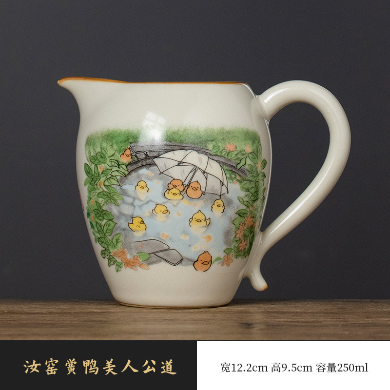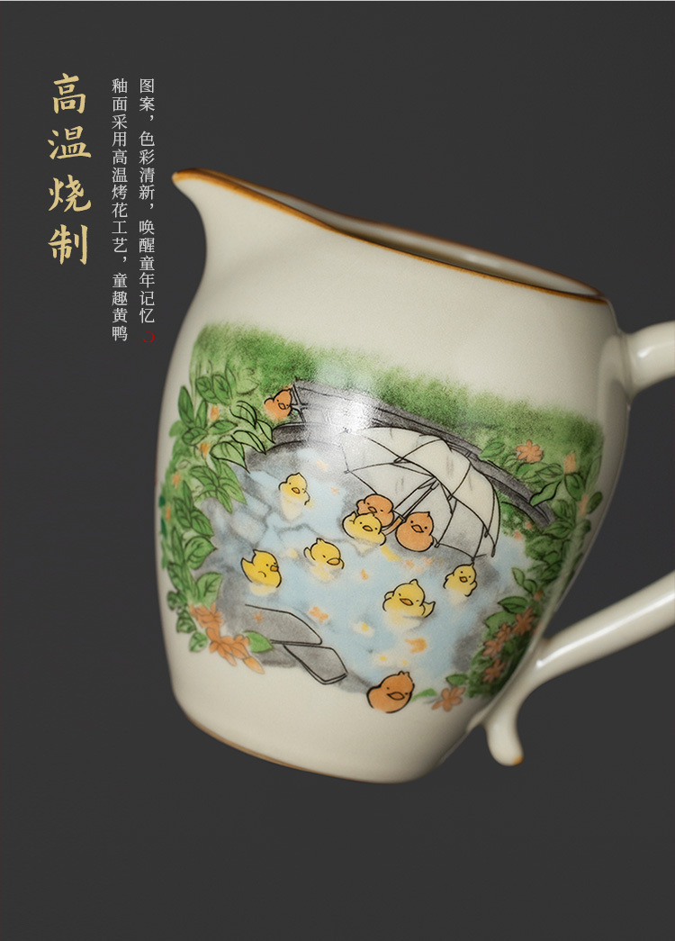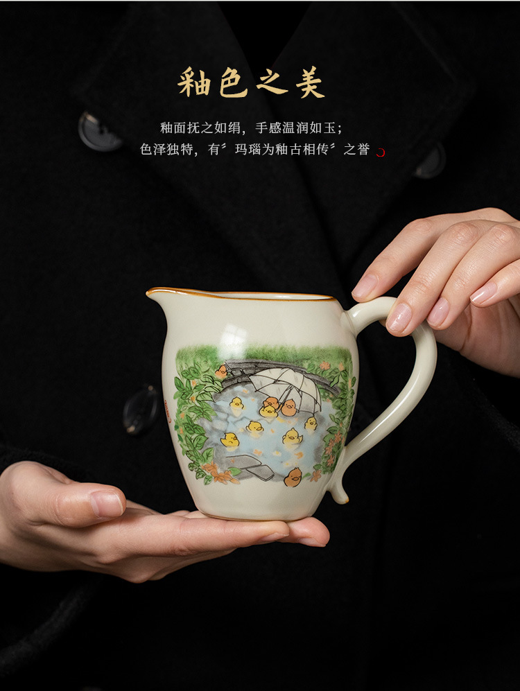 汝窑小黄鸭公道杯分茶器陶瓷家用精致高档茶海公杯功夫茶具配件