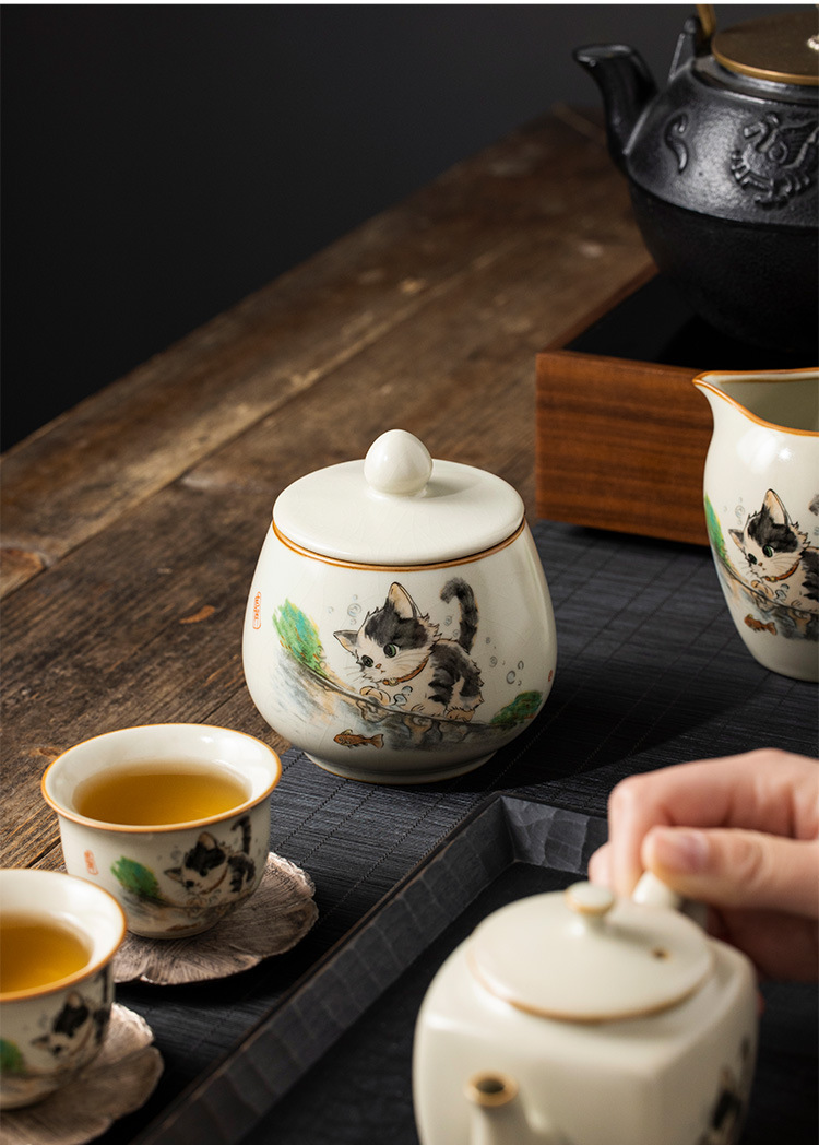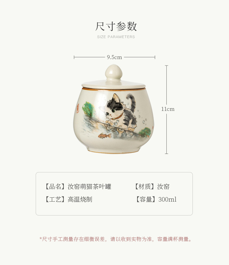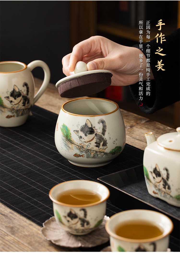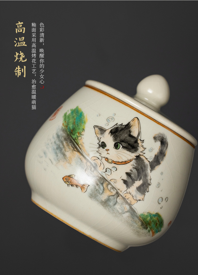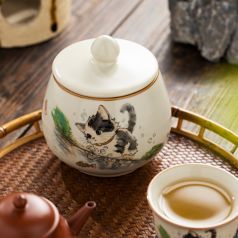 汝窑萌猫茶叶罐陶瓷储存罐茶叶精品高档包装送礼礼品密封罐防潮罐