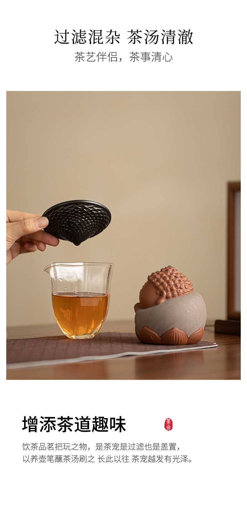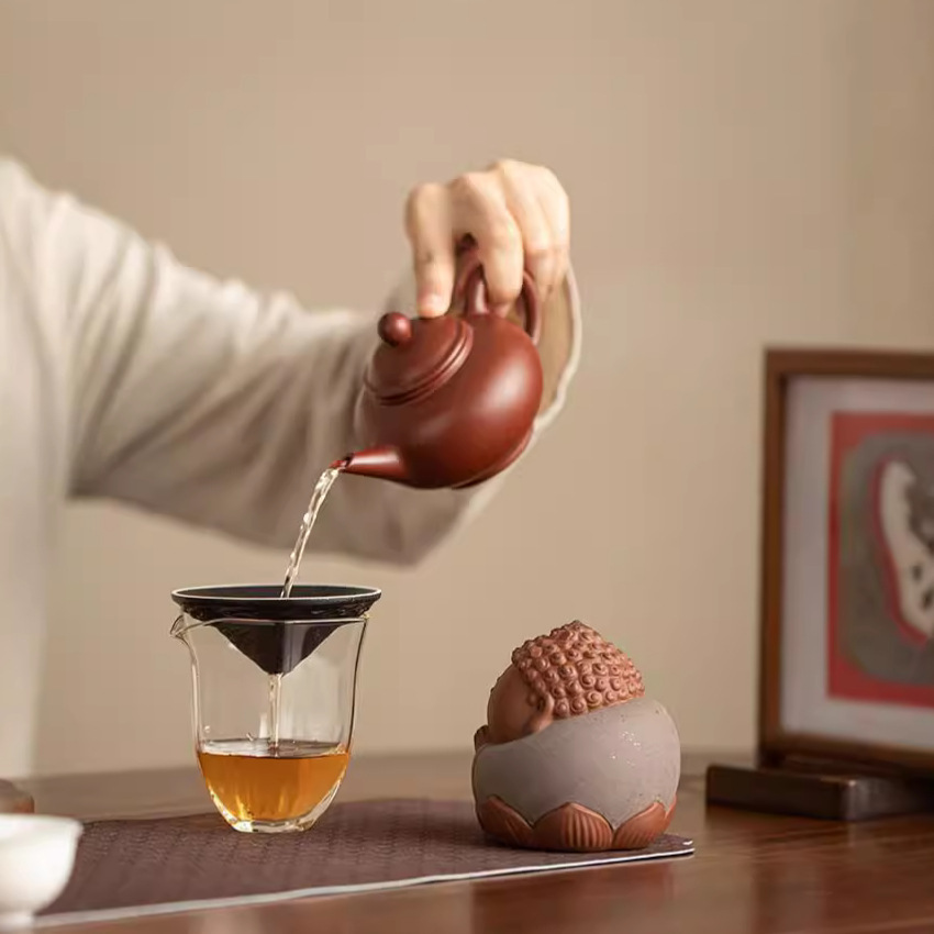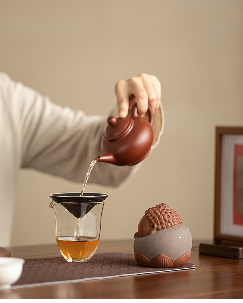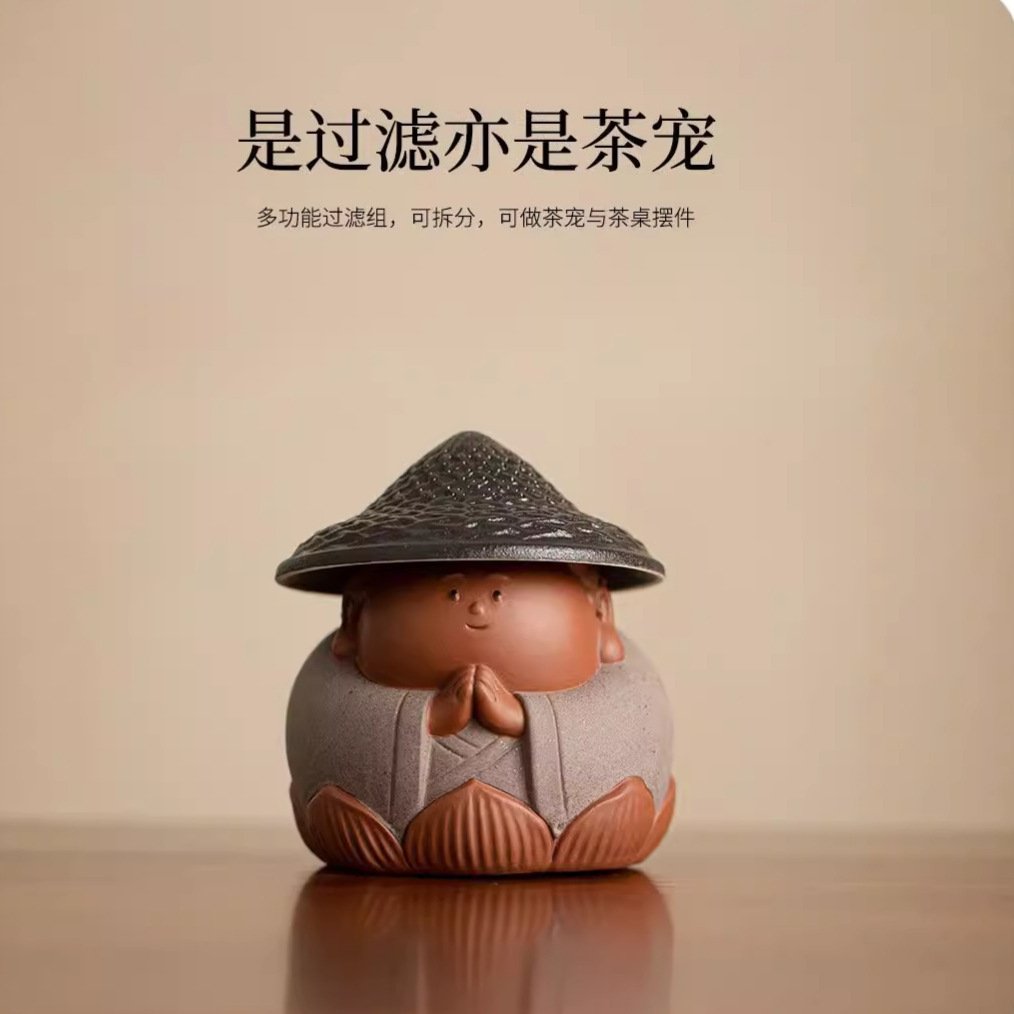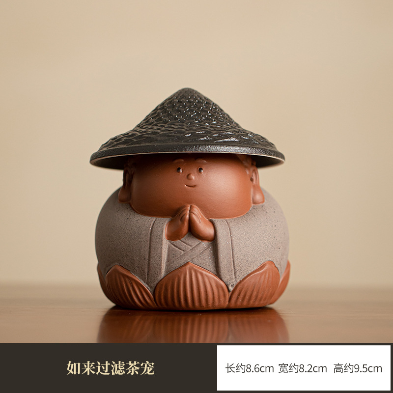 创意紫砂小如来一体茶漏过滤功夫茶具配件家用精品可养茶宠摆件