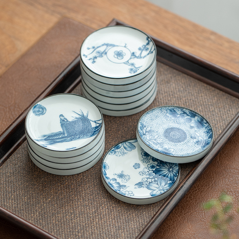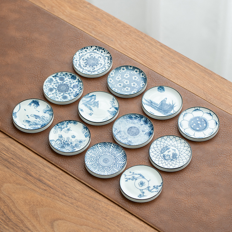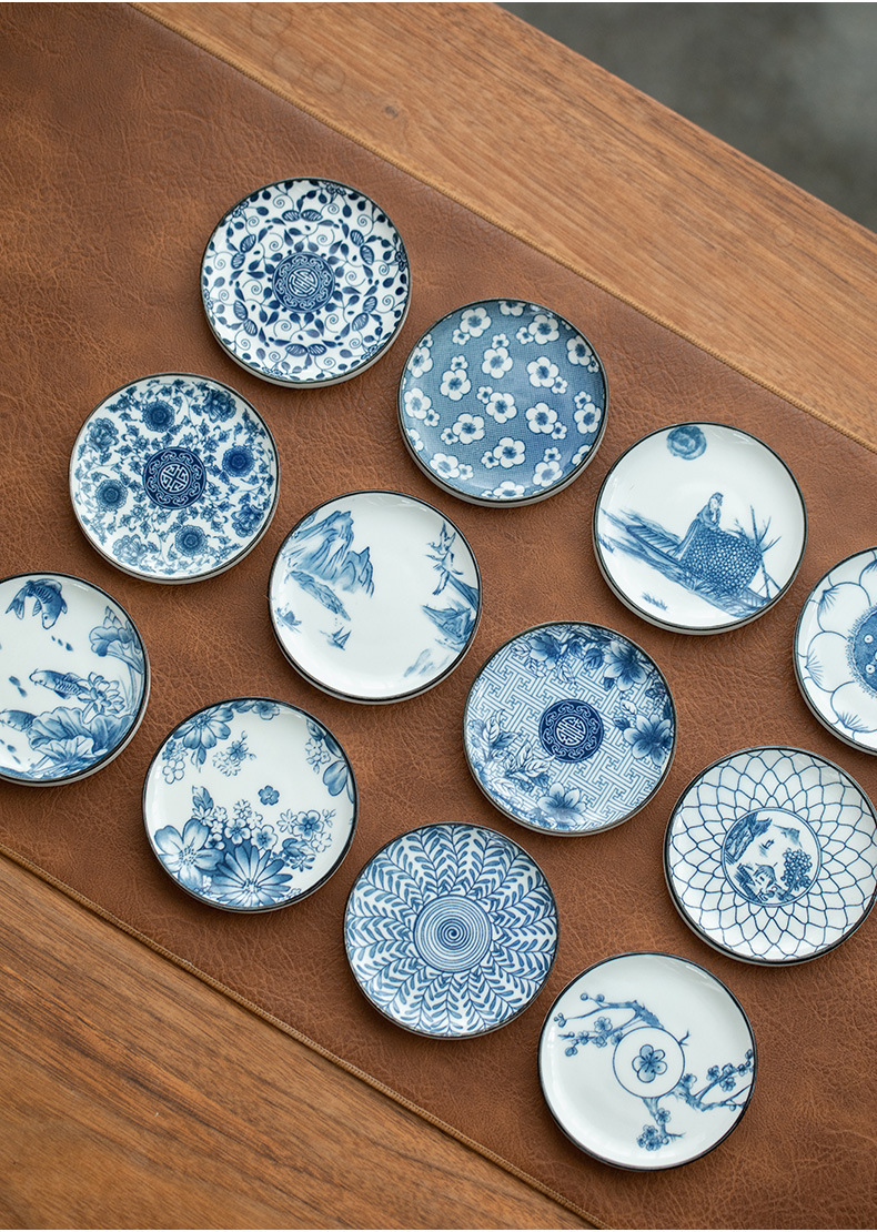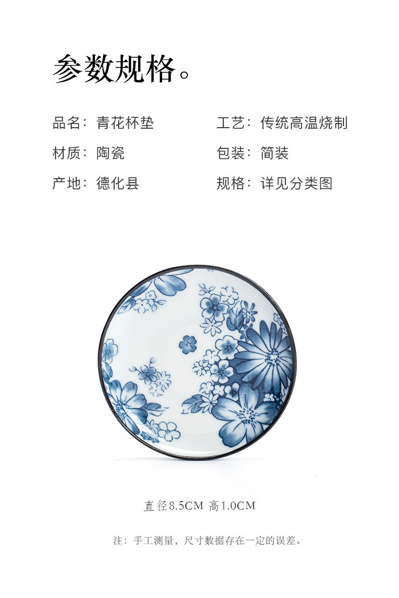 陶瓷果盘糕点盘茶具茶杯垫青花瓷防烫隔热茶托复古家用水果托盘