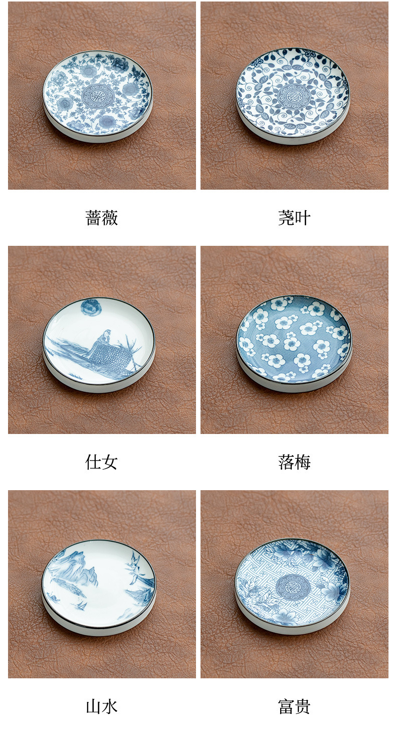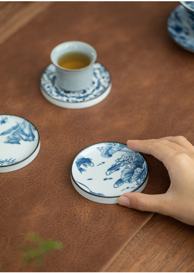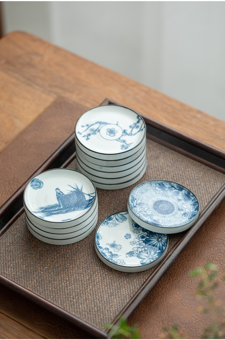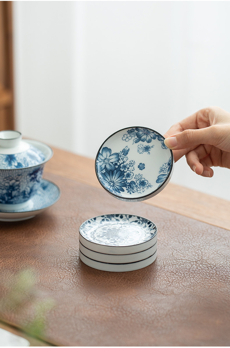 陶瓷果盘糕点盘茶具茶杯垫青花瓷防烫隔热茶托复古家用水果托盘