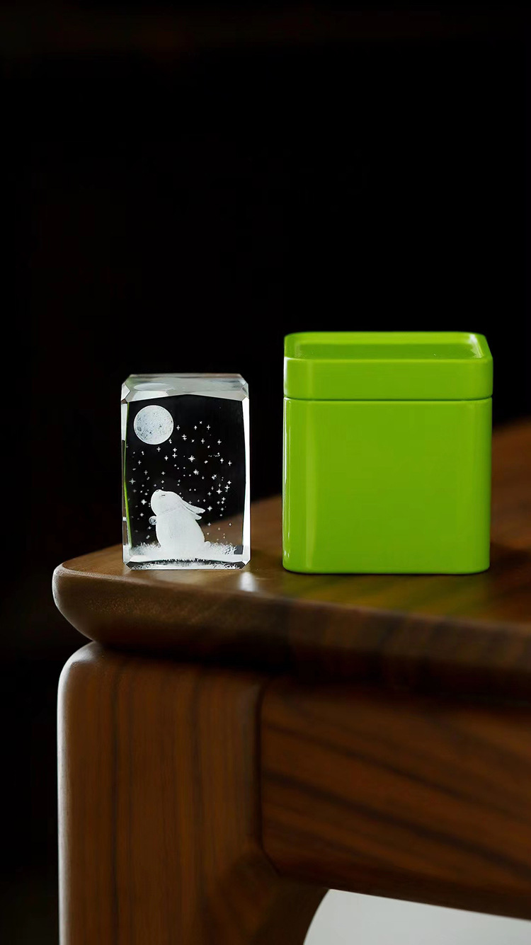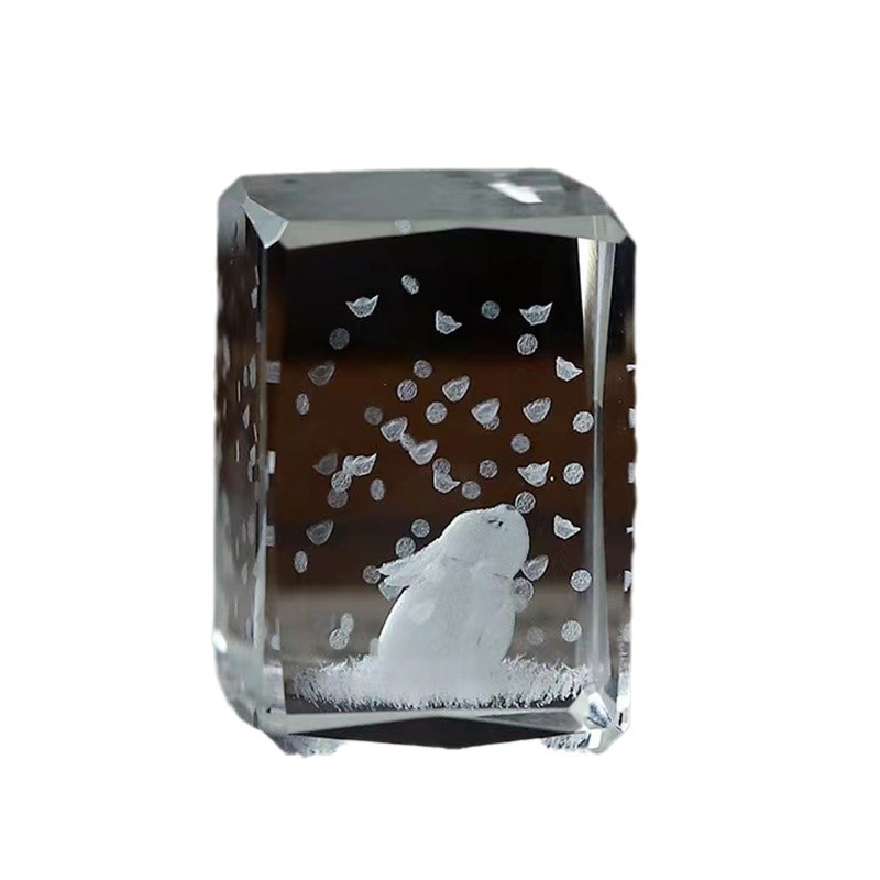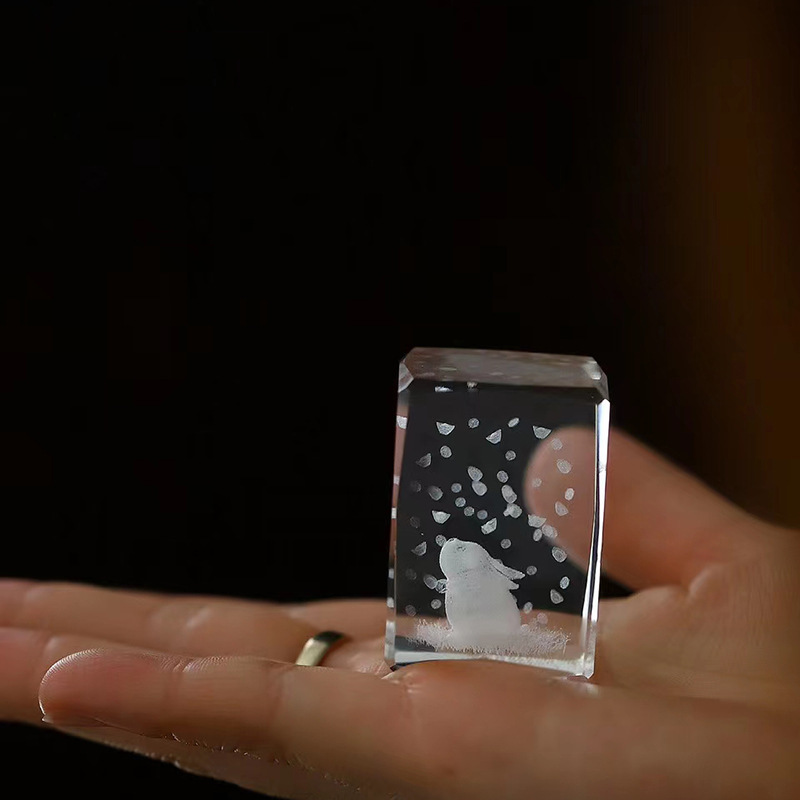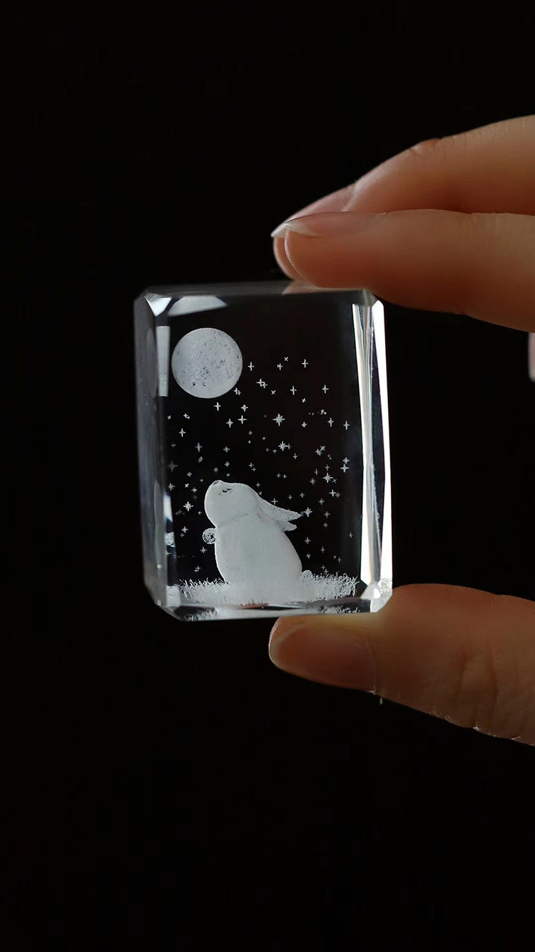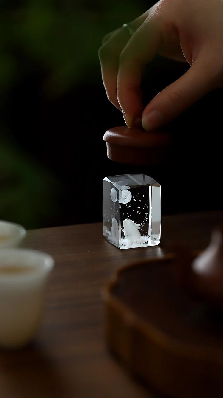 批发水晶玻璃望月兔盖置茶壶盖碗茶盖置托 兔年茶道摆件盖置盖托