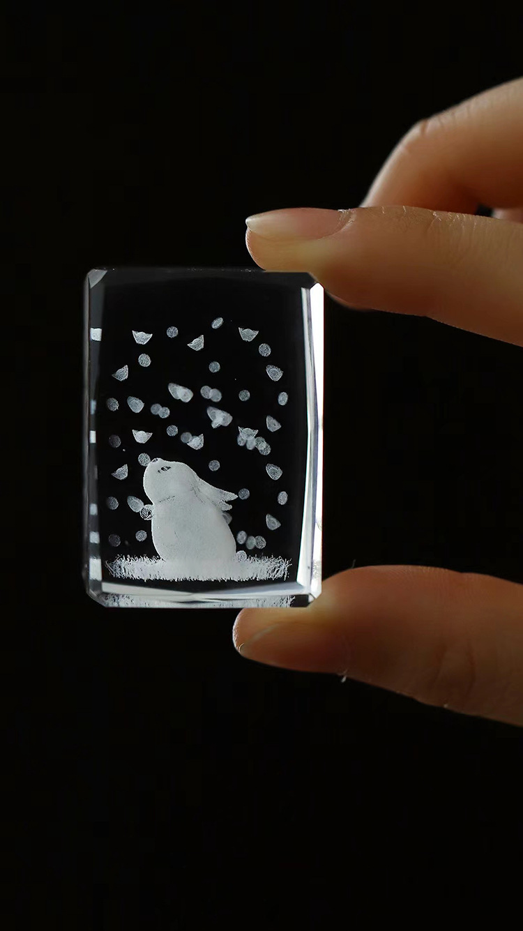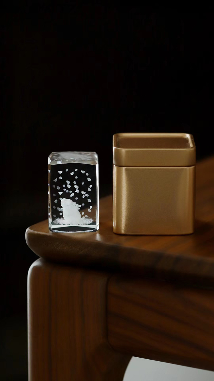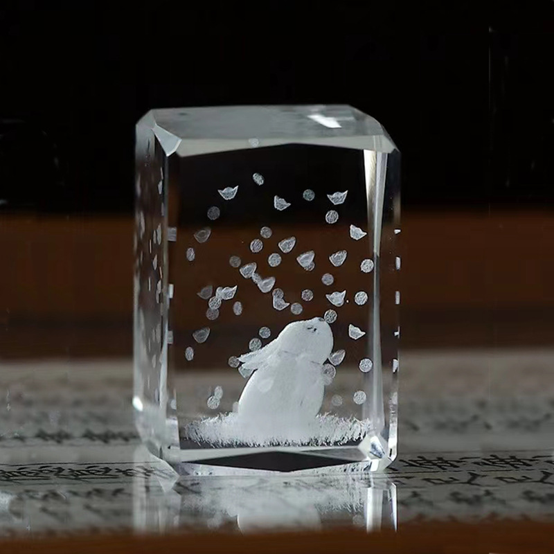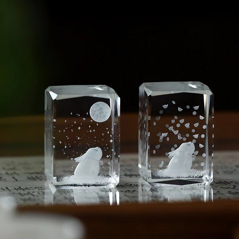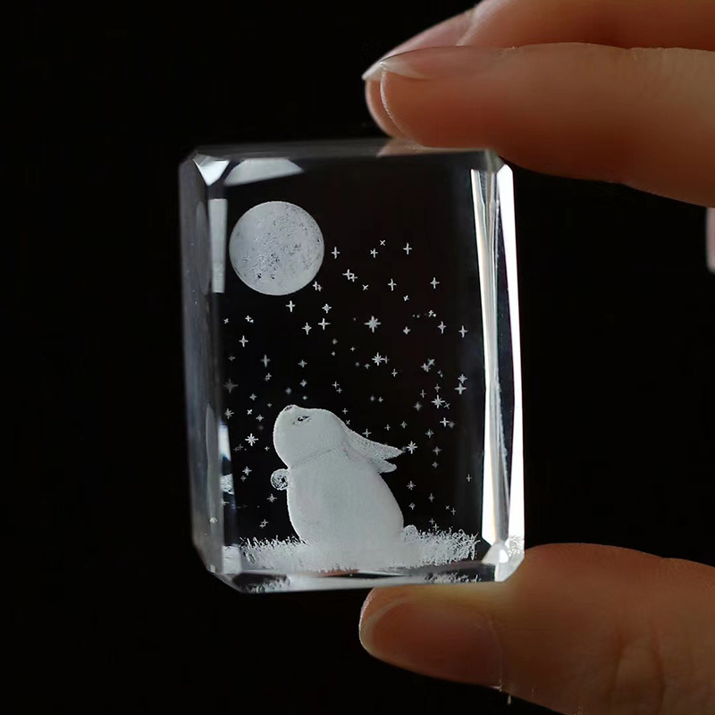 批发水晶玻璃望月兔盖置茶壶盖碗茶盖置托 兔年茶道摆件盖置盖托