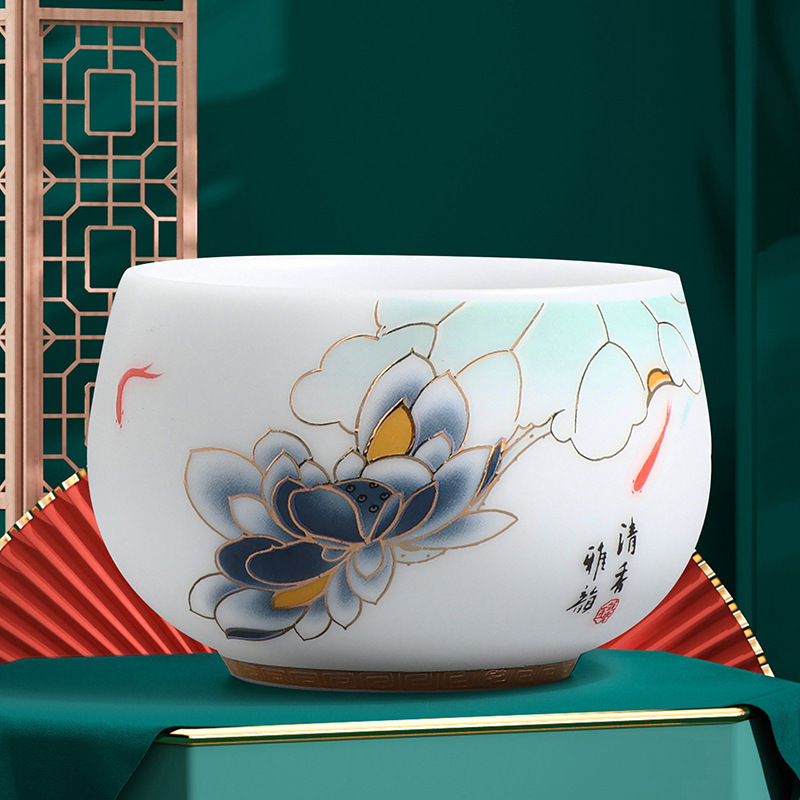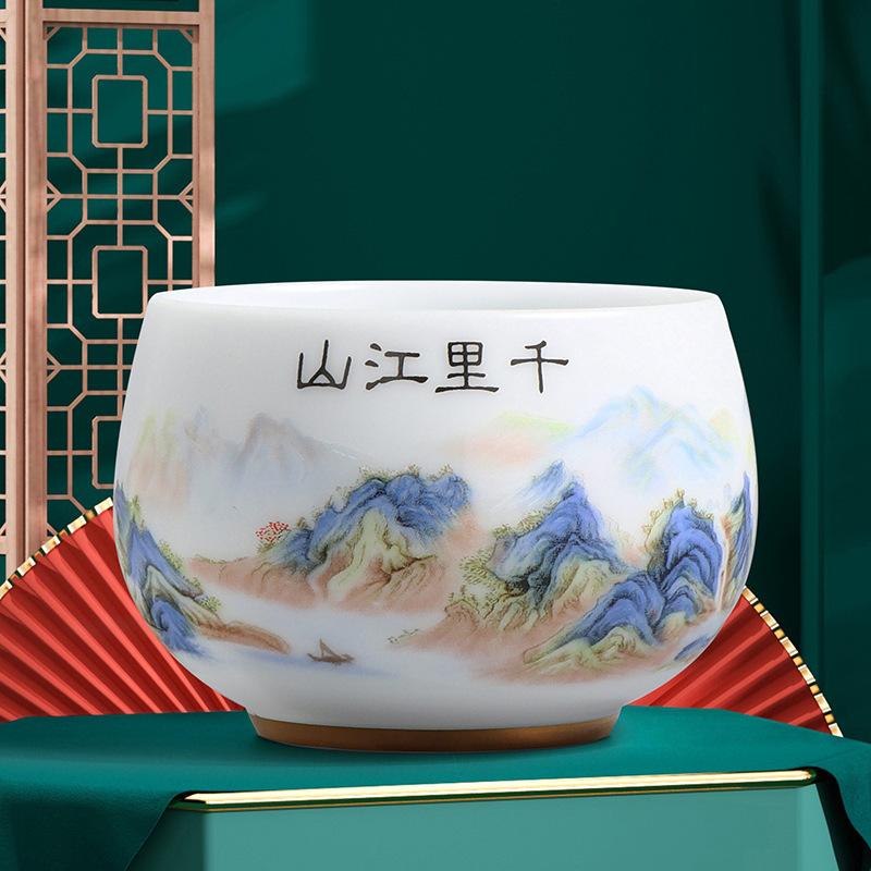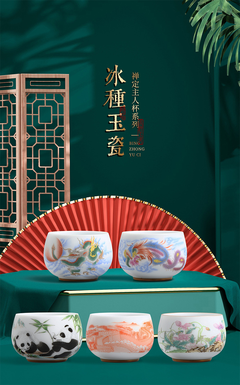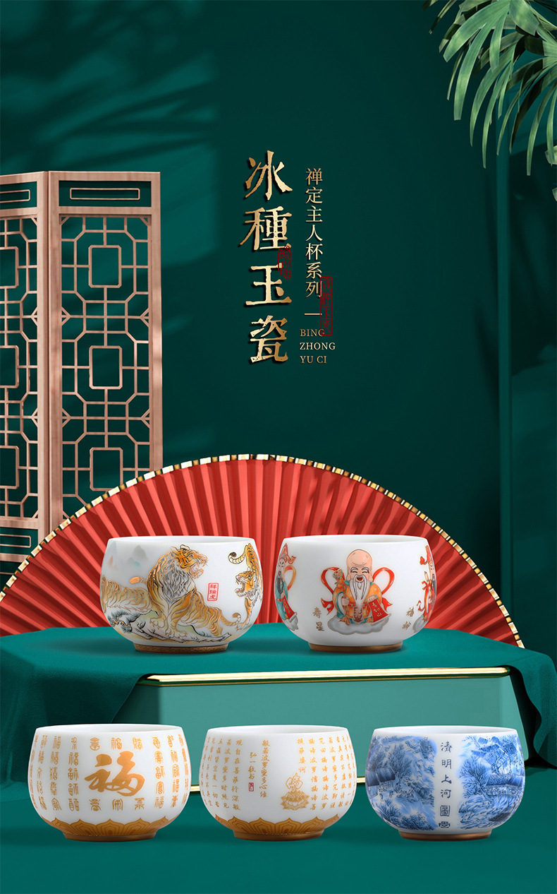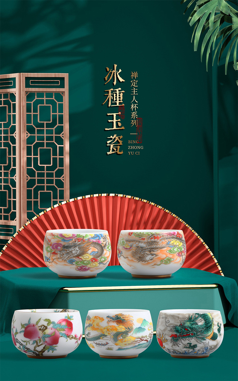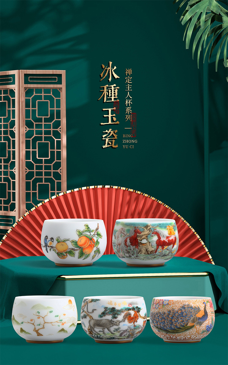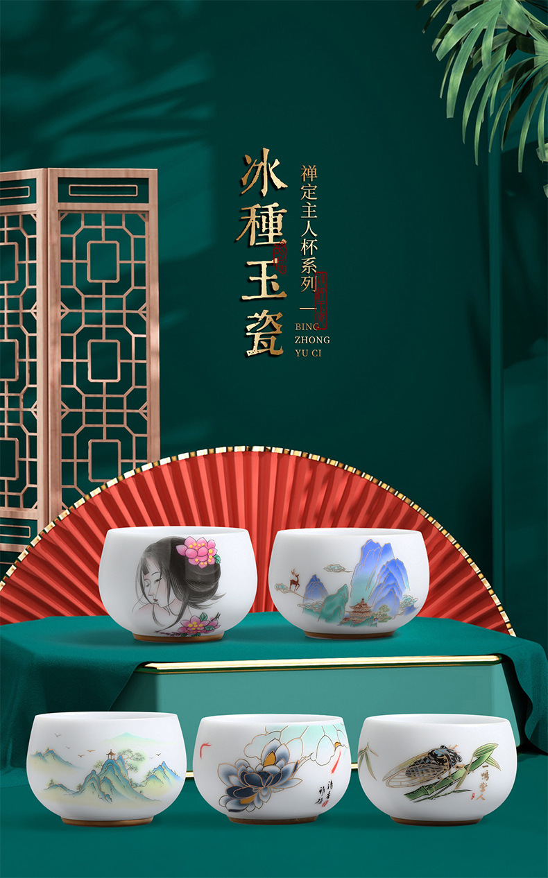 素烧冰种主人杯羊脂玉瓷茶杯高档薄胎单杯茶碗白瓷功夫茶具品茗杯