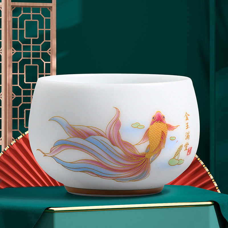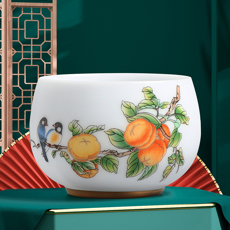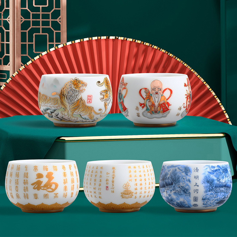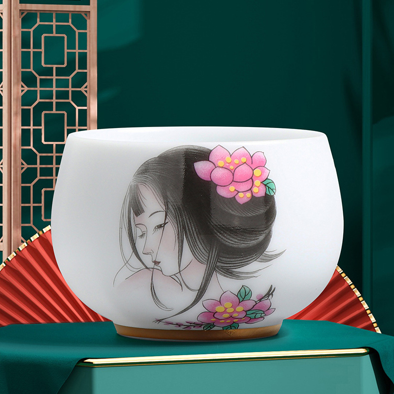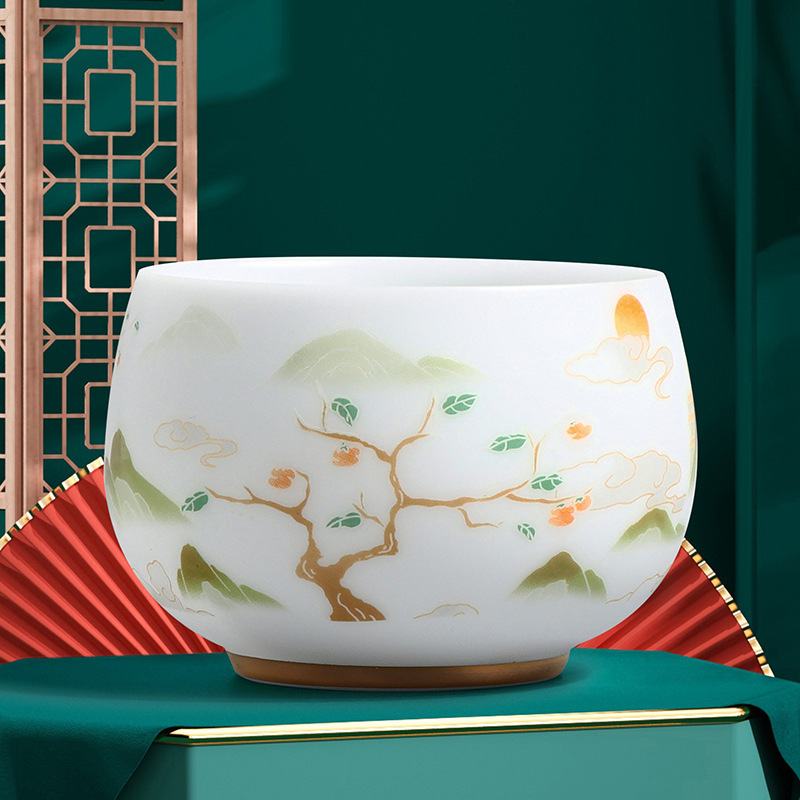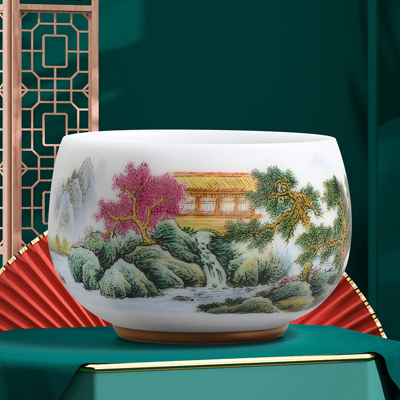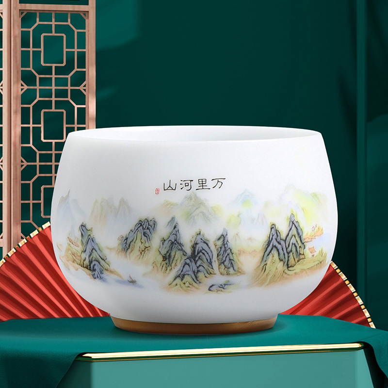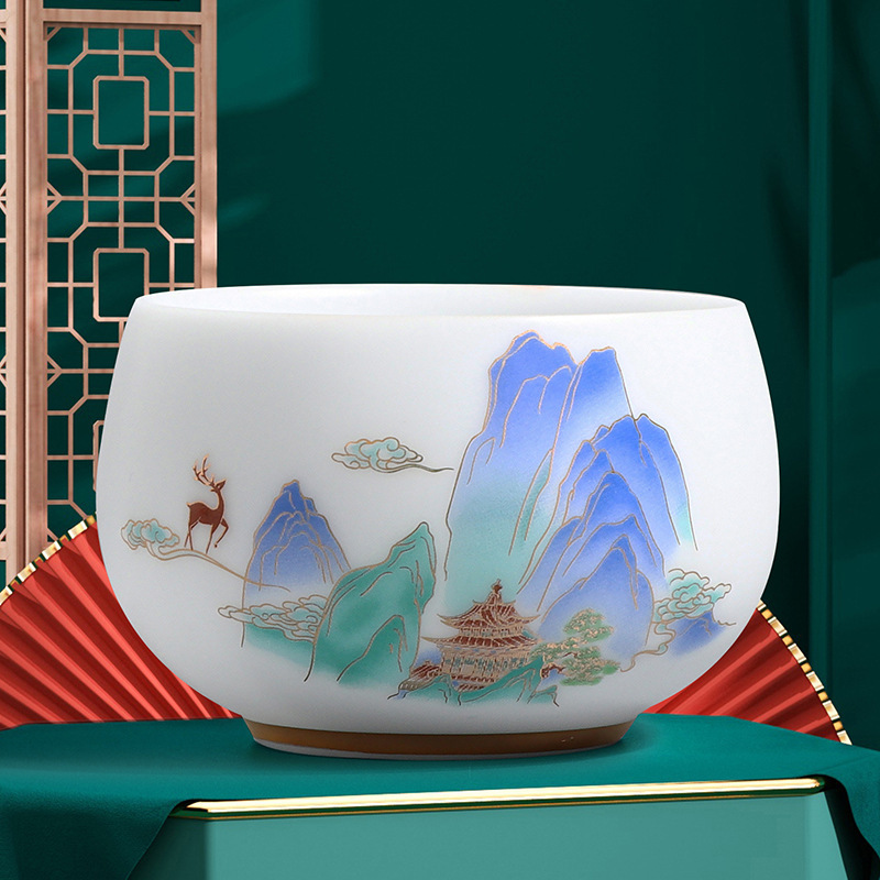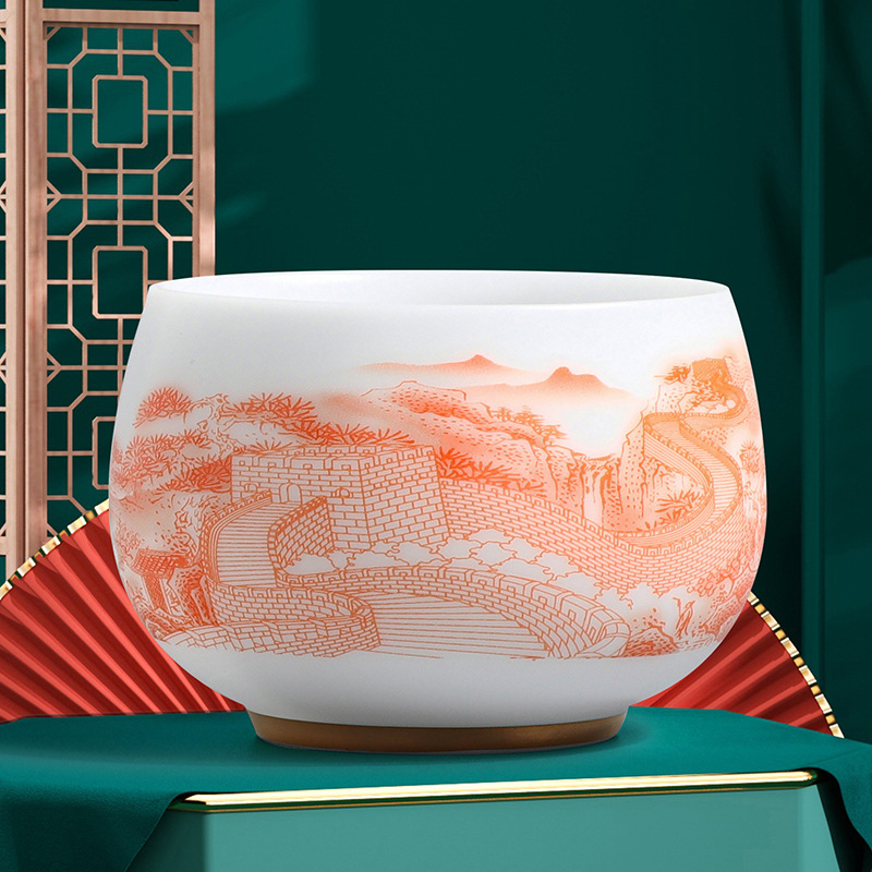 素烧冰种主人杯羊脂玉瓷茶杯高档薄胎单杯茶碗白瓷功夫茶具品茗杯