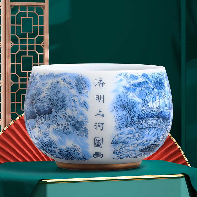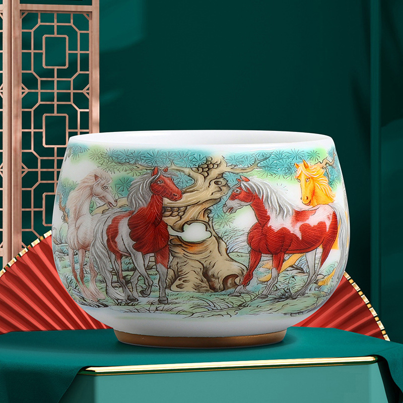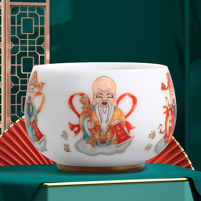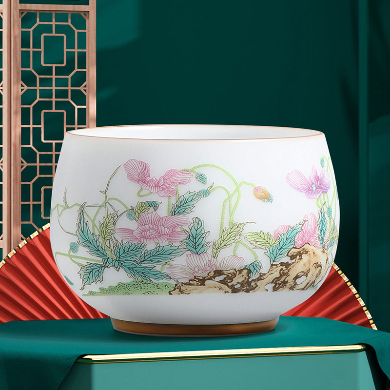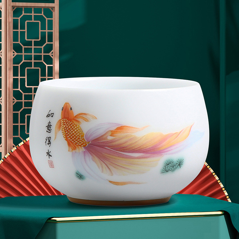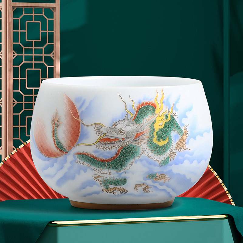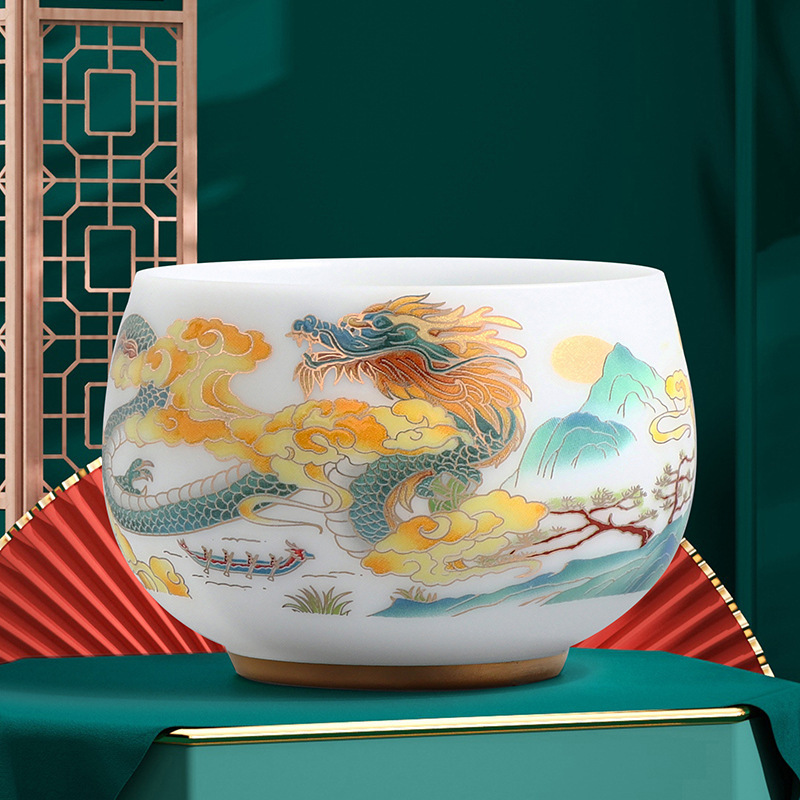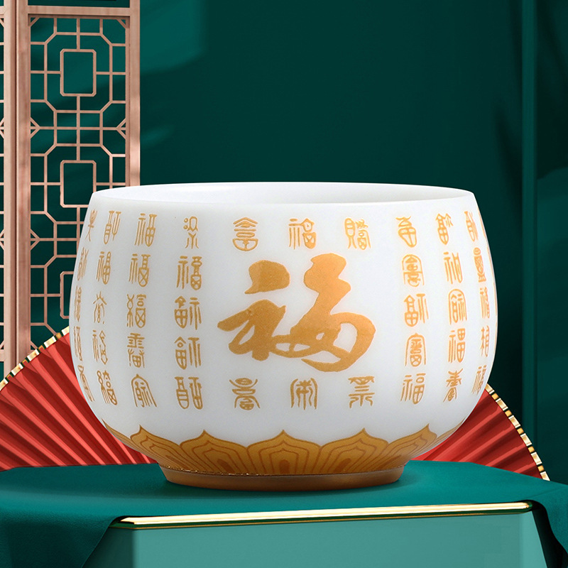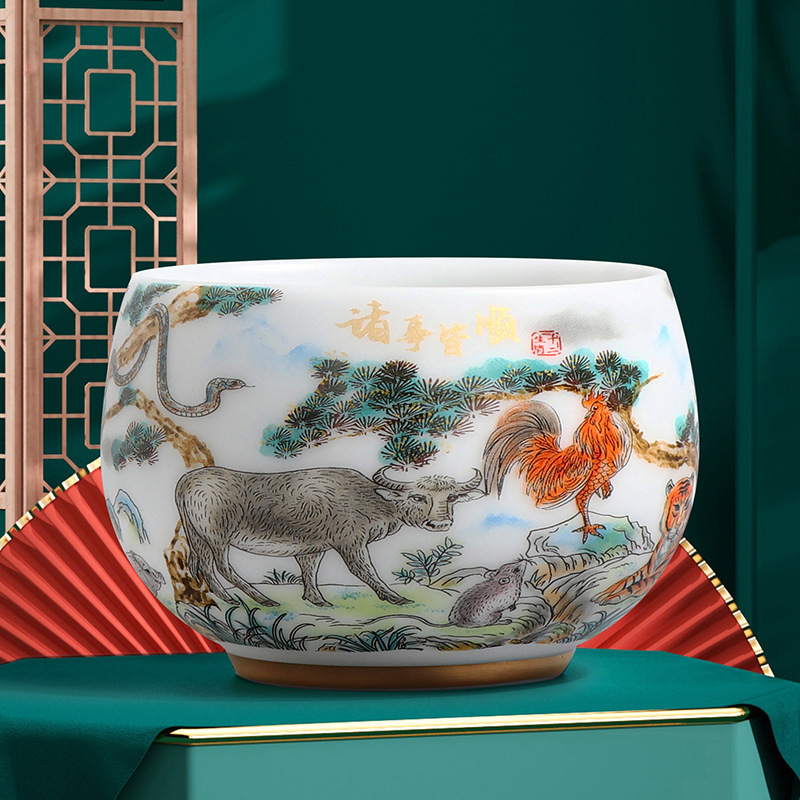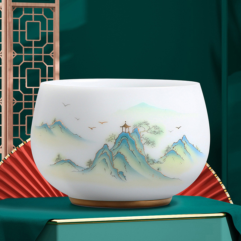 素烧冰种主人杯羊脂玉瓷茶杯高档薄胎单杯茶碗白瓷功夫茶具品茗杯