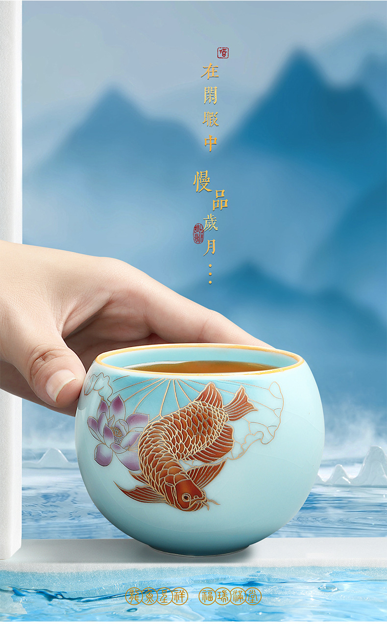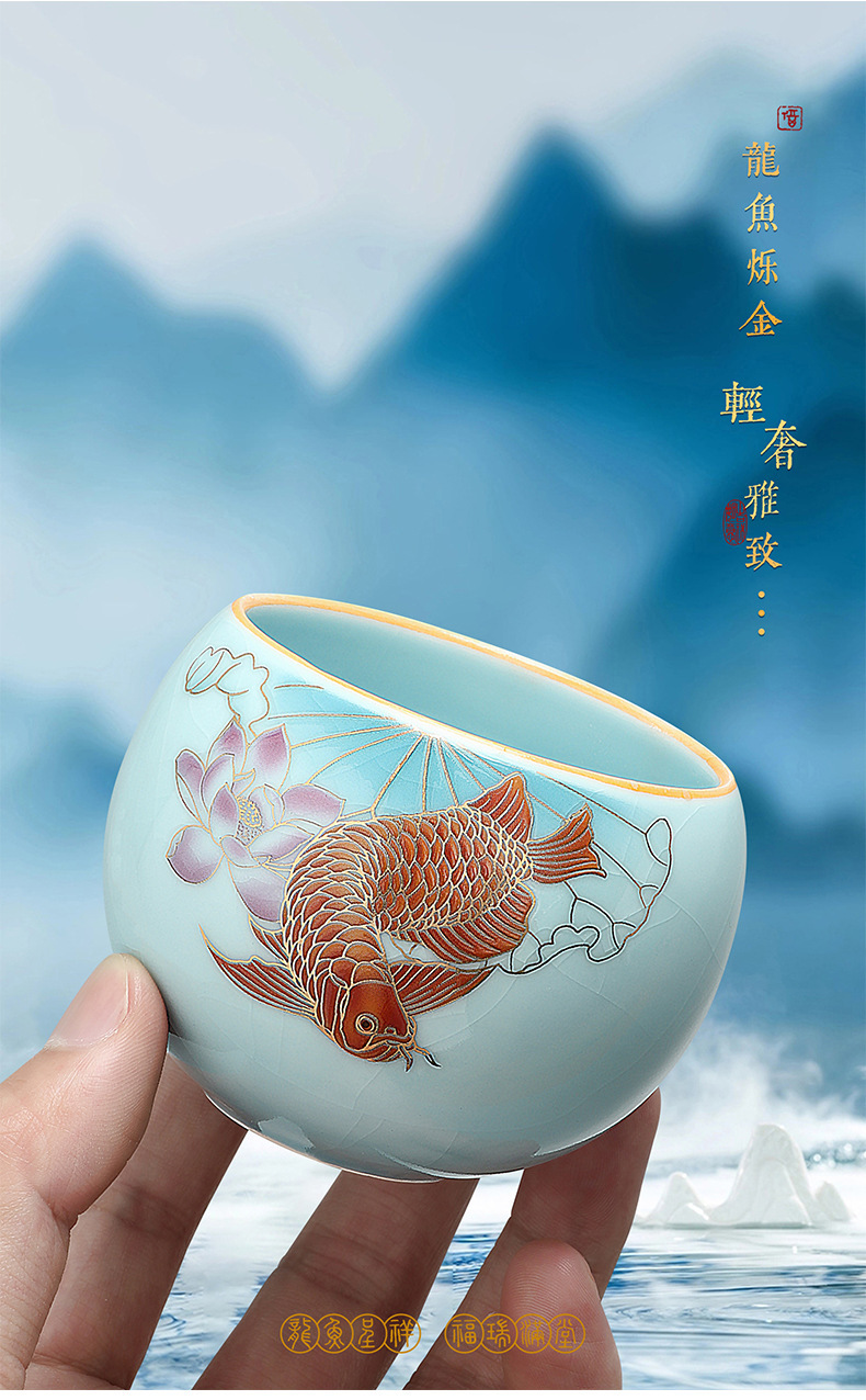 龙鱼主人杯功夫茶杯单个品茗杯国潮单杯个人杯高颜值商务伴手礼品