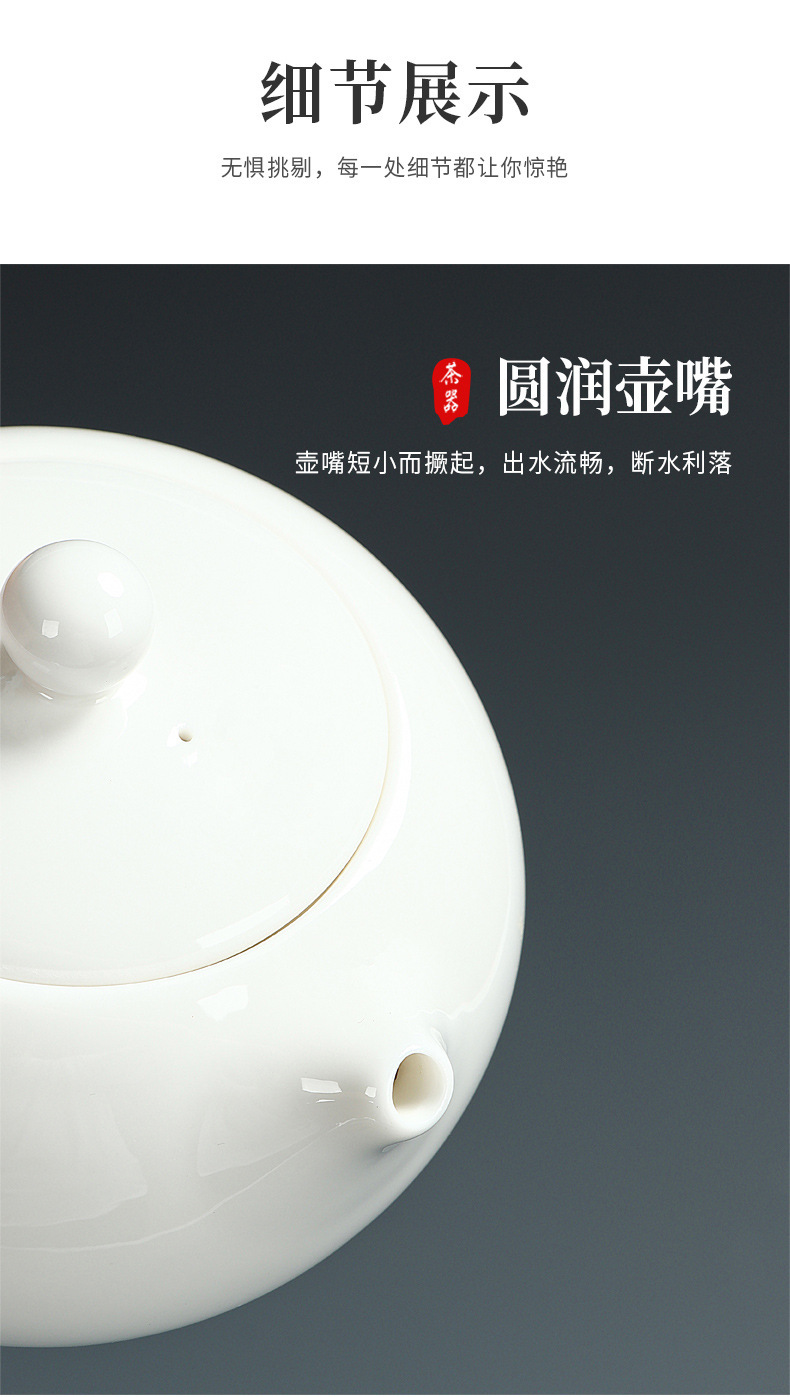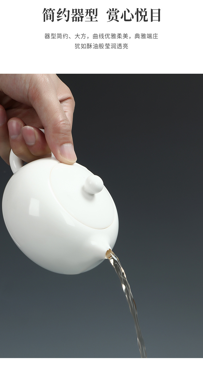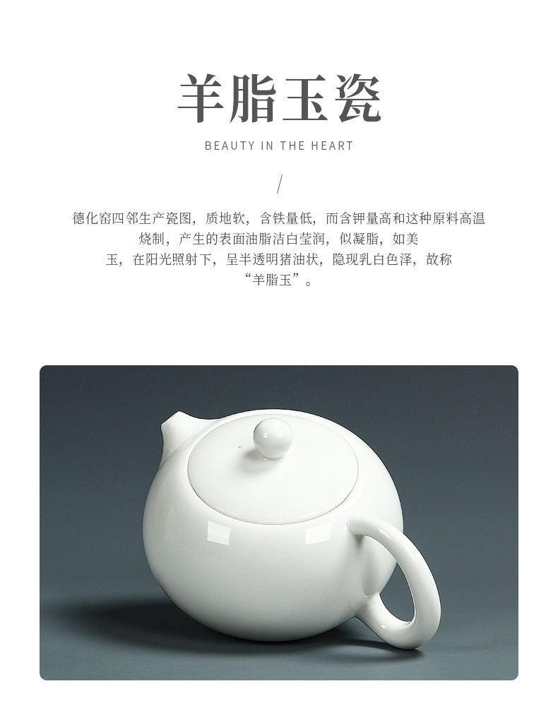 德化白瓷功夫茶壶羊脂玉瓷透白泡茶壶家用单壶纯色陶瓷小壶中式白
