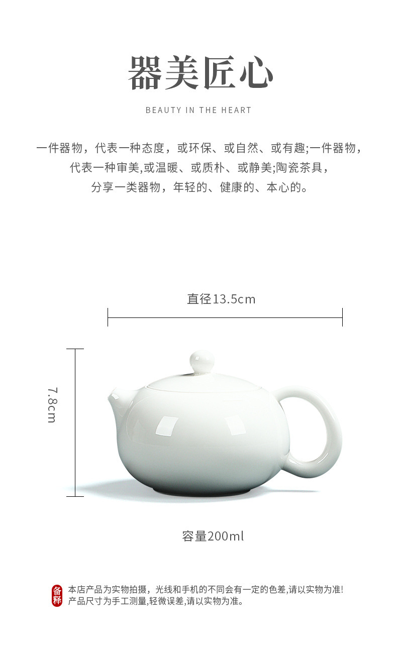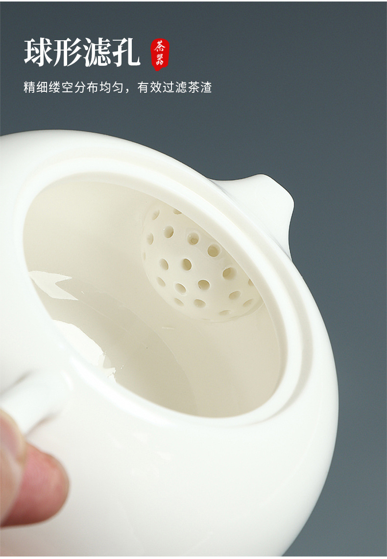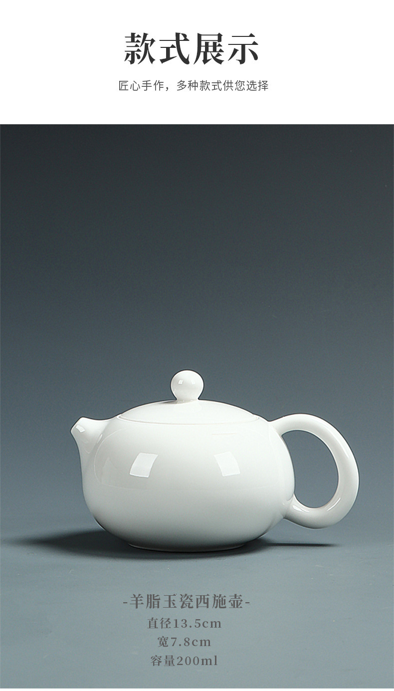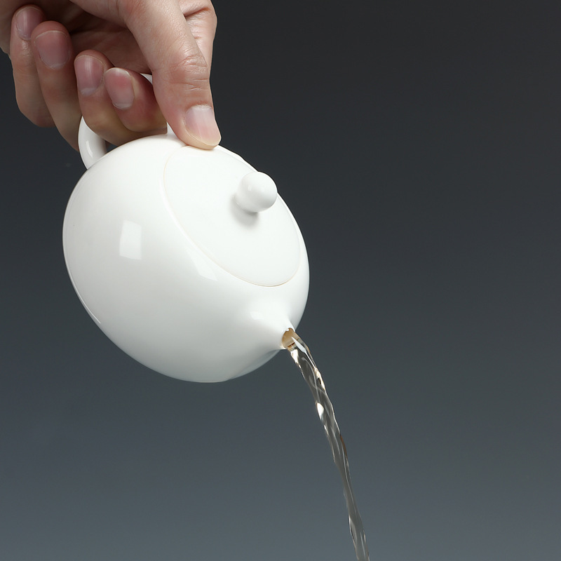 德化白瓷功夫茶壶羊脂玉瓷透白泡茶壶家用单壶纯色陶瓷小壶中式白