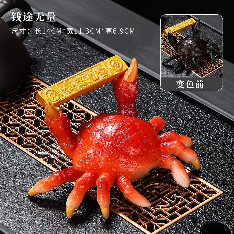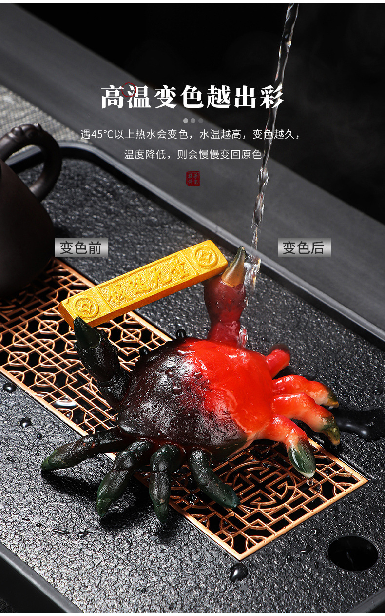 茶宠摆件遇水变色钱途量创意个性螃蟹功夫茶具茶玩趣玩茶道配件