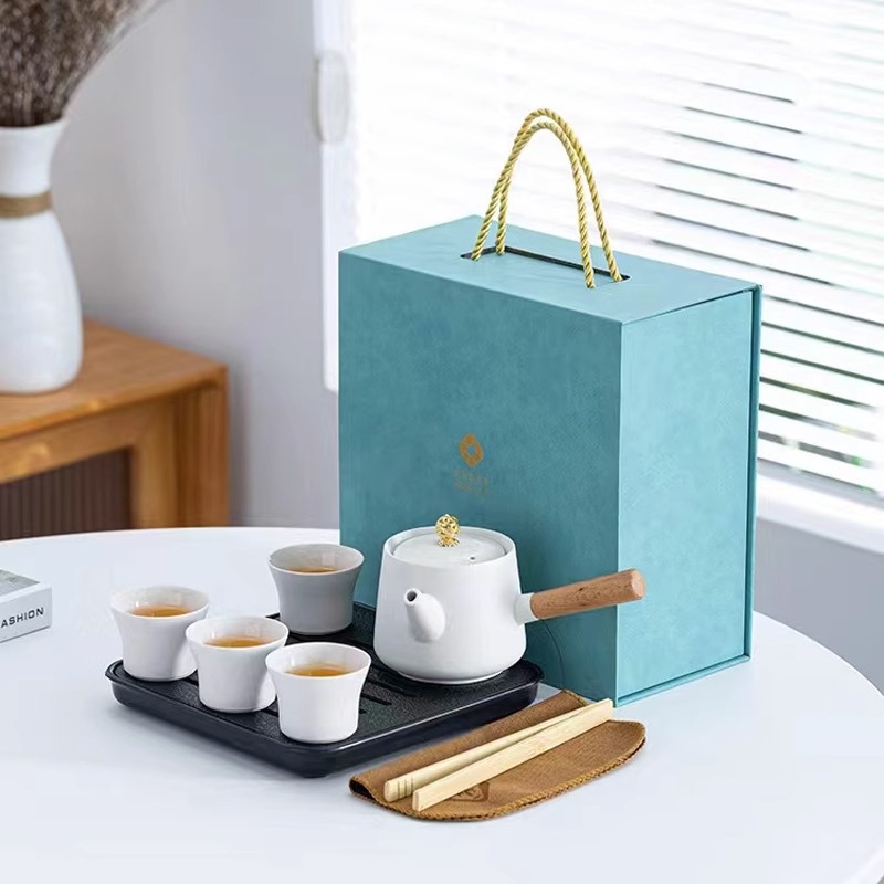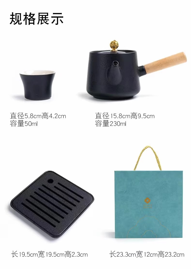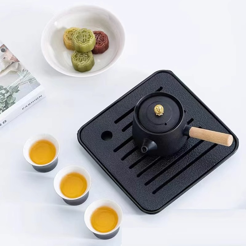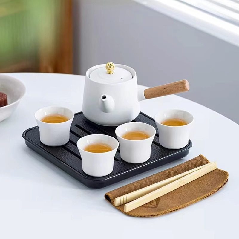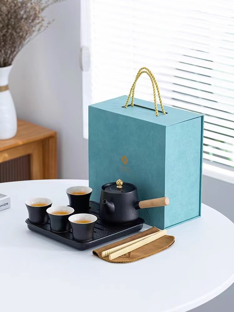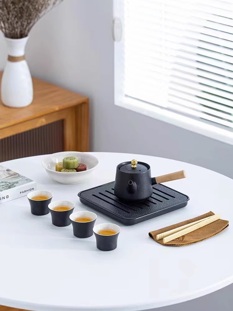 黑陶功夫茶具一壶四杯茶壶茶杯小套装旅行茶具陶瓷家用配茶盘简约