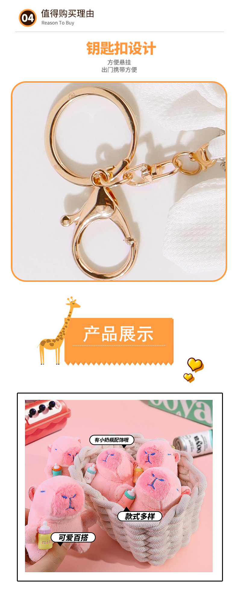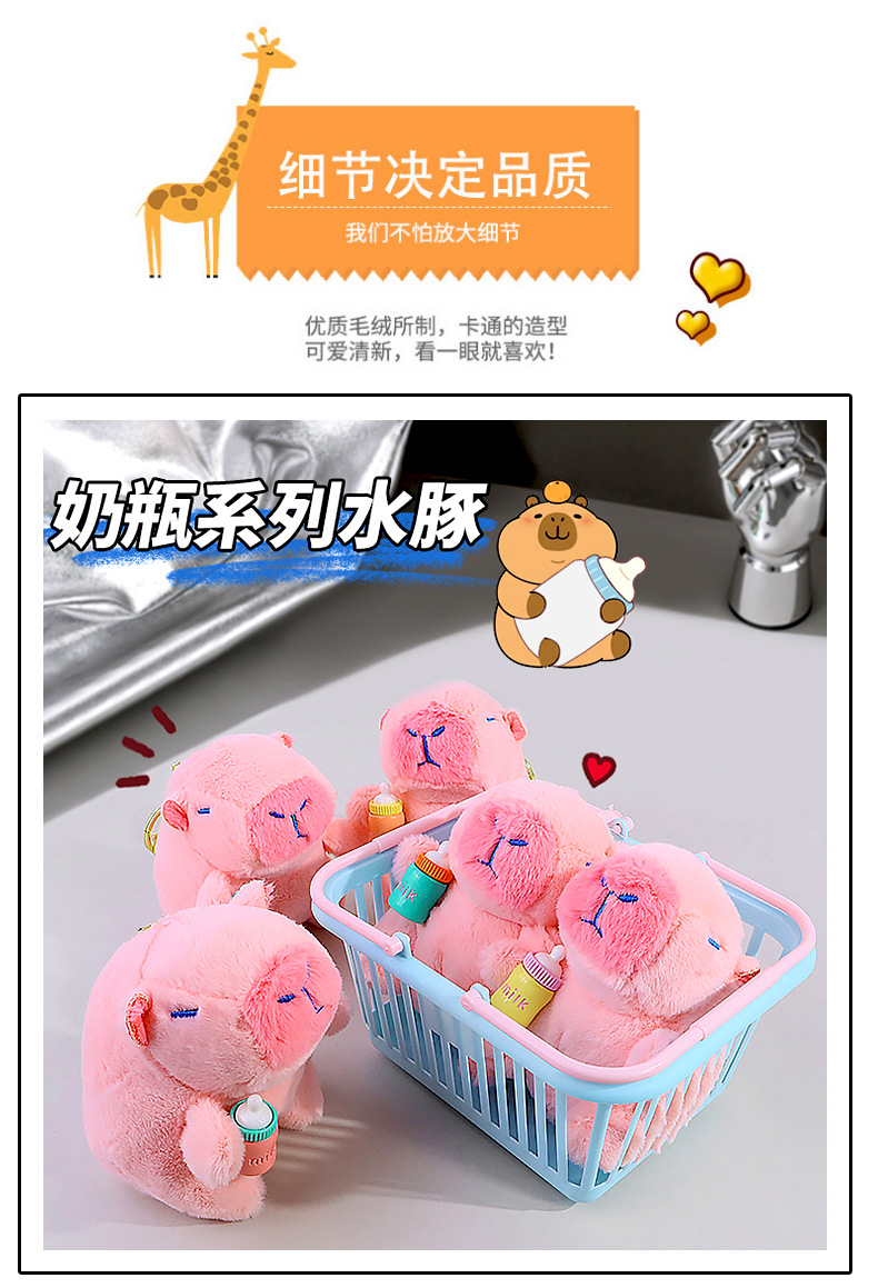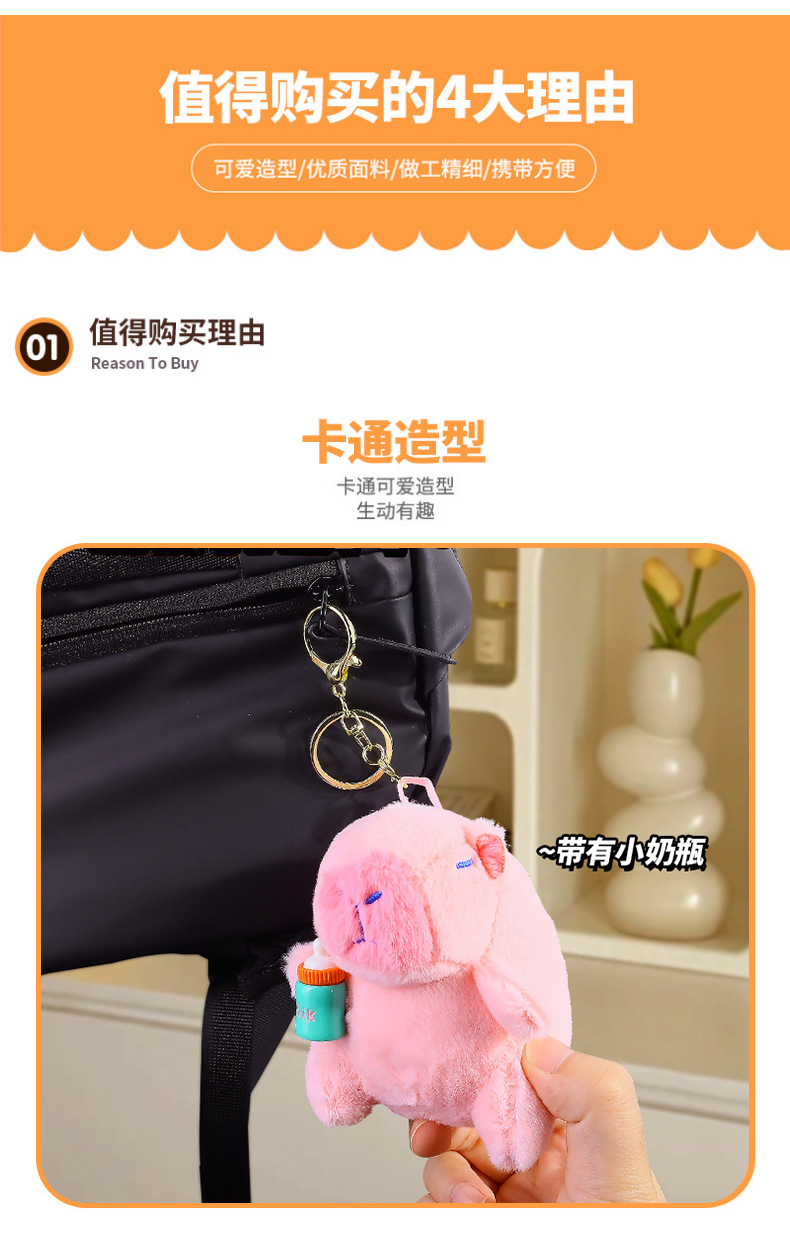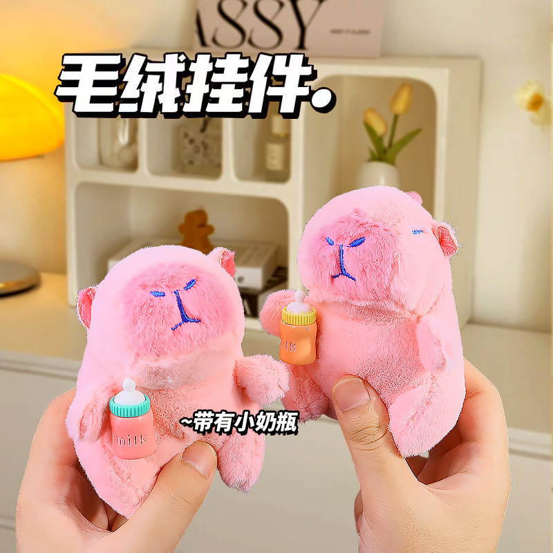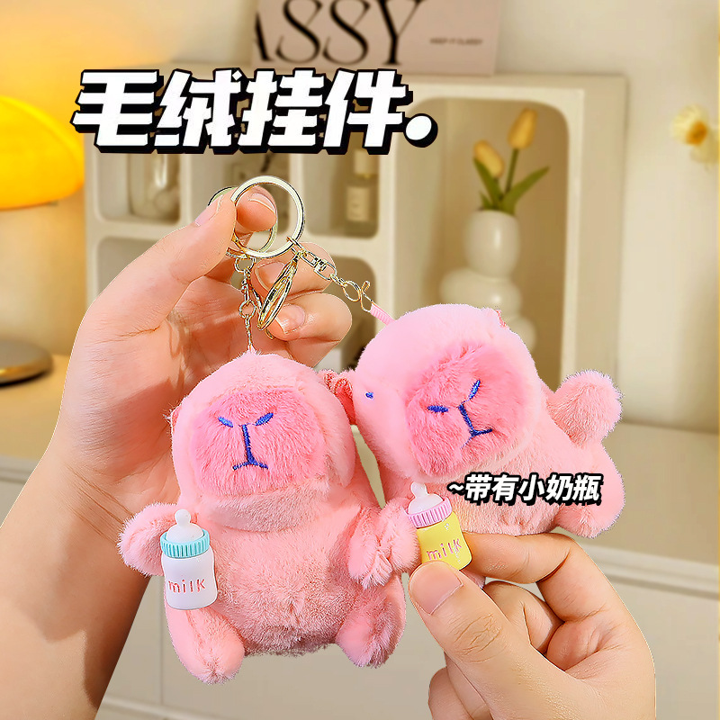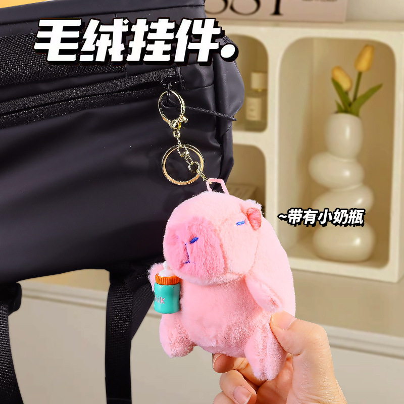 可爱卡皮巴拉抱奶瓶玩偶毛绒钥匙扣少女心背包挂件娃娃公仔小礼品