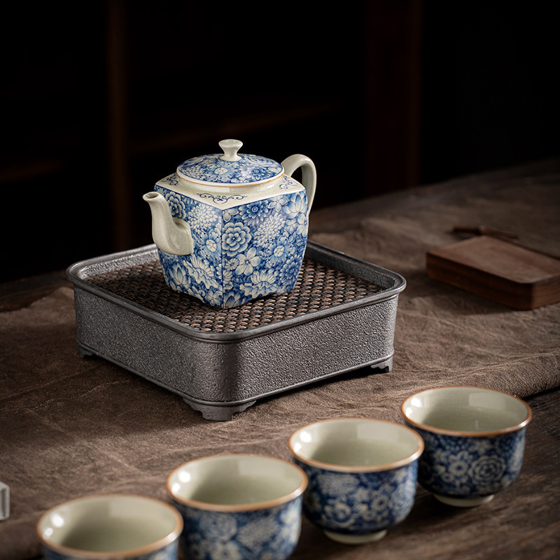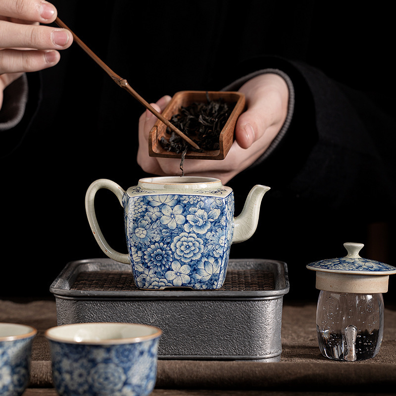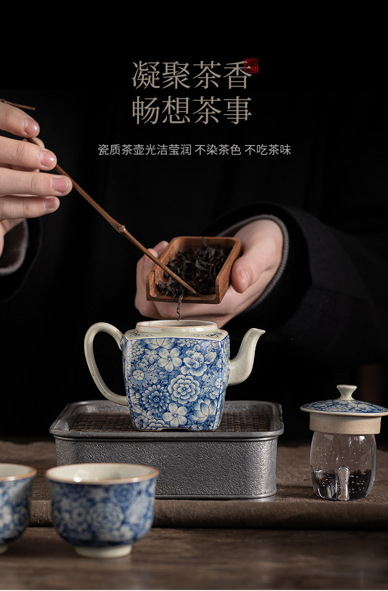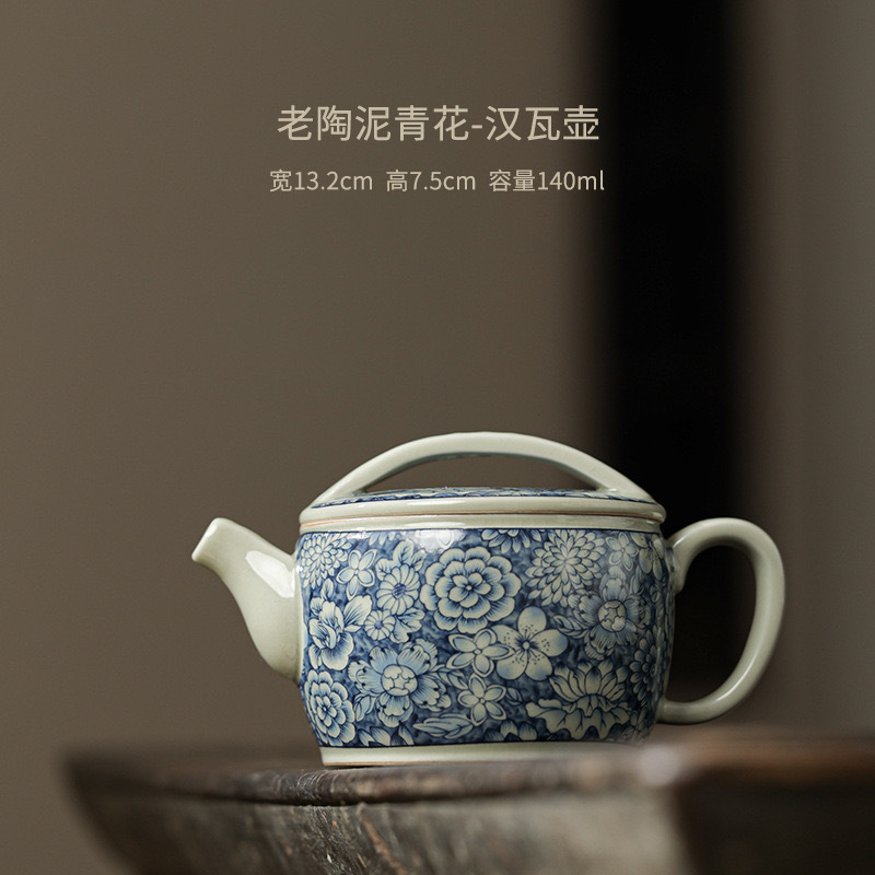 老陶泥茶壶手工家用四方陶瓷单壶家用功夫茶具配件开片可养泡茶器