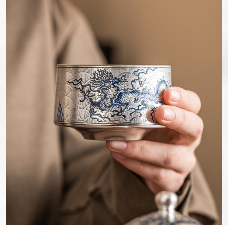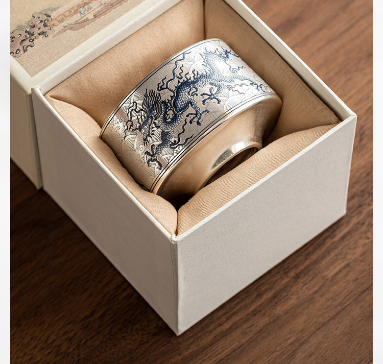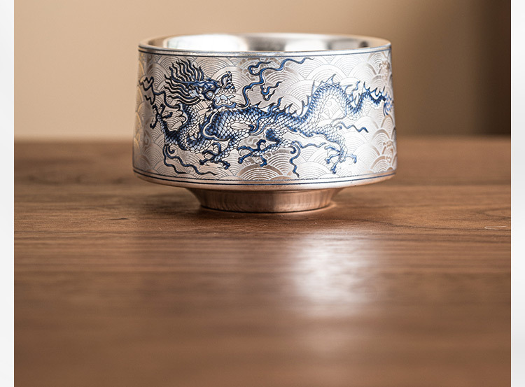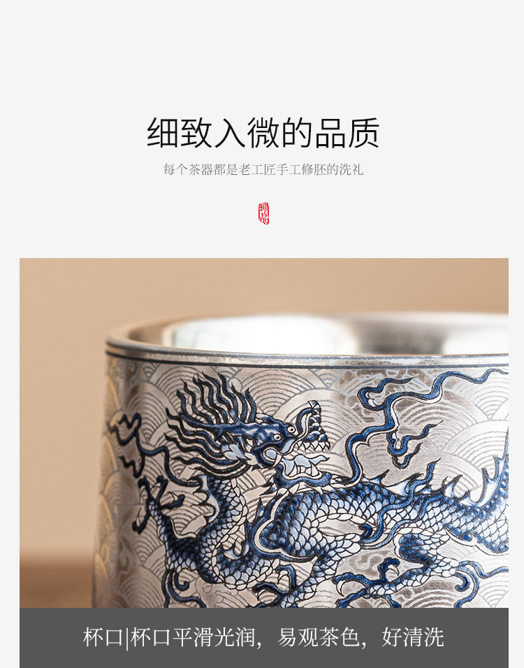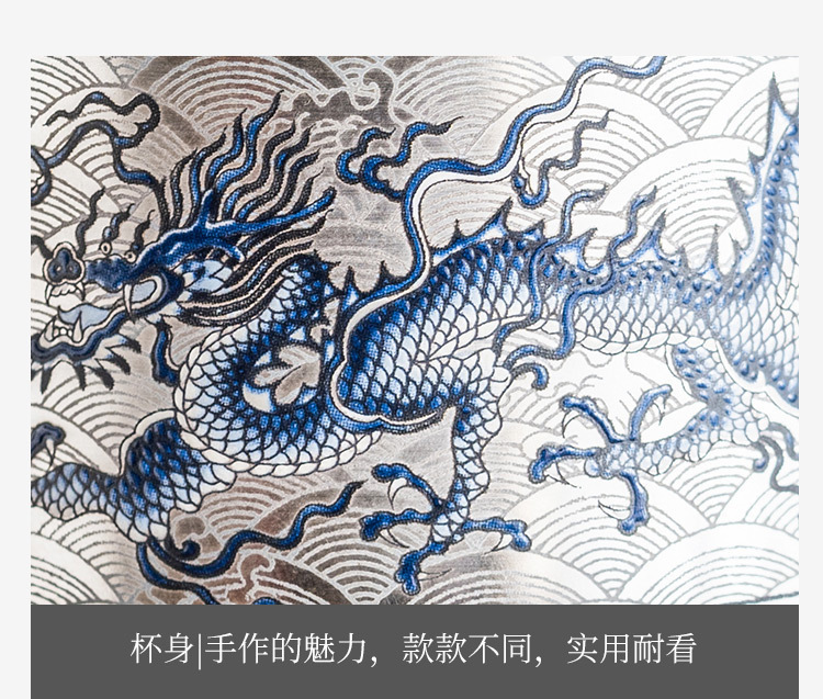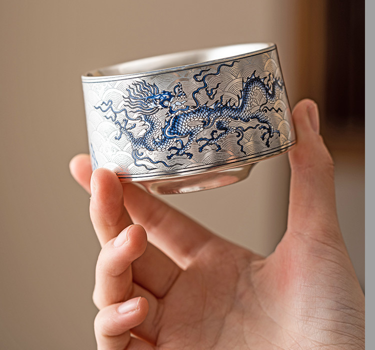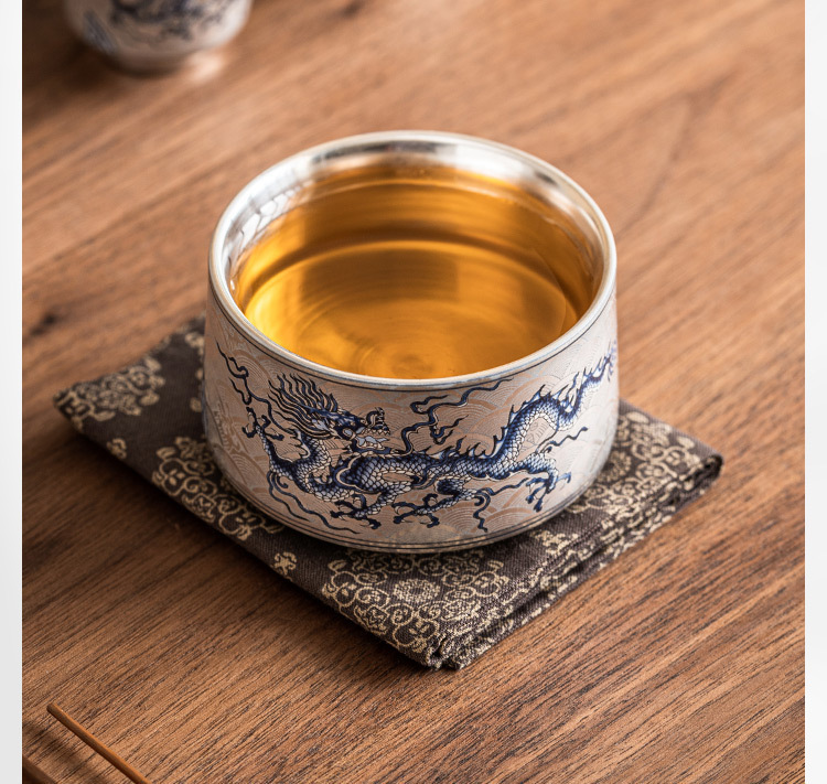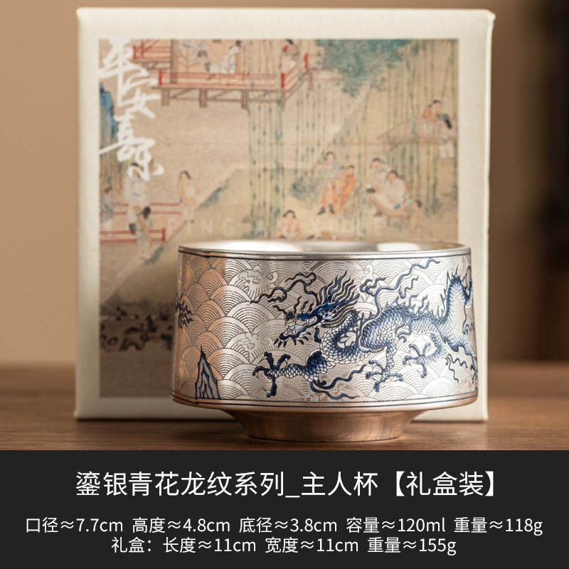 鎏银青花龙纹主人杯单杯家用喝茶杯大容量高档陶瓷礼品茶具品茗杯