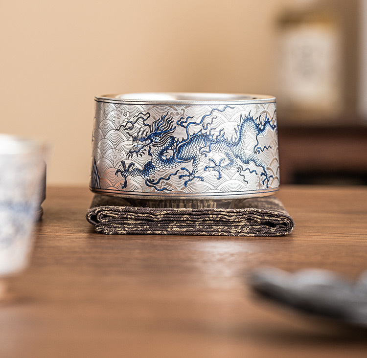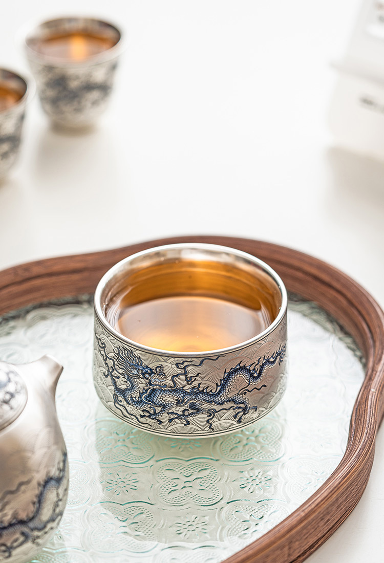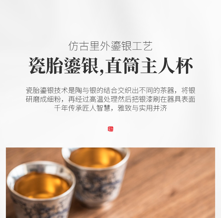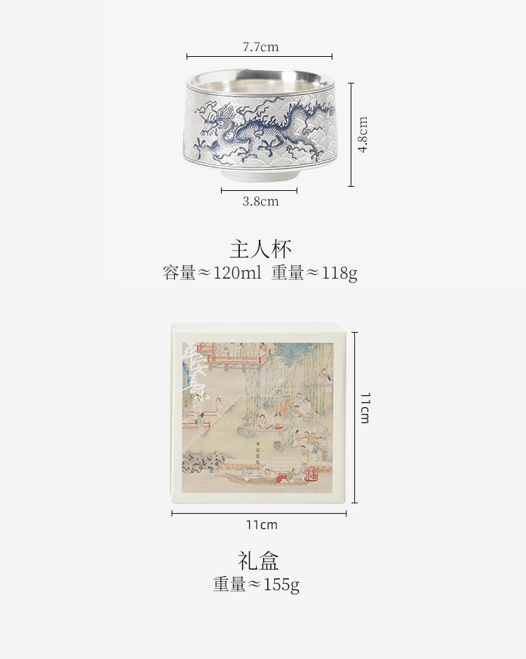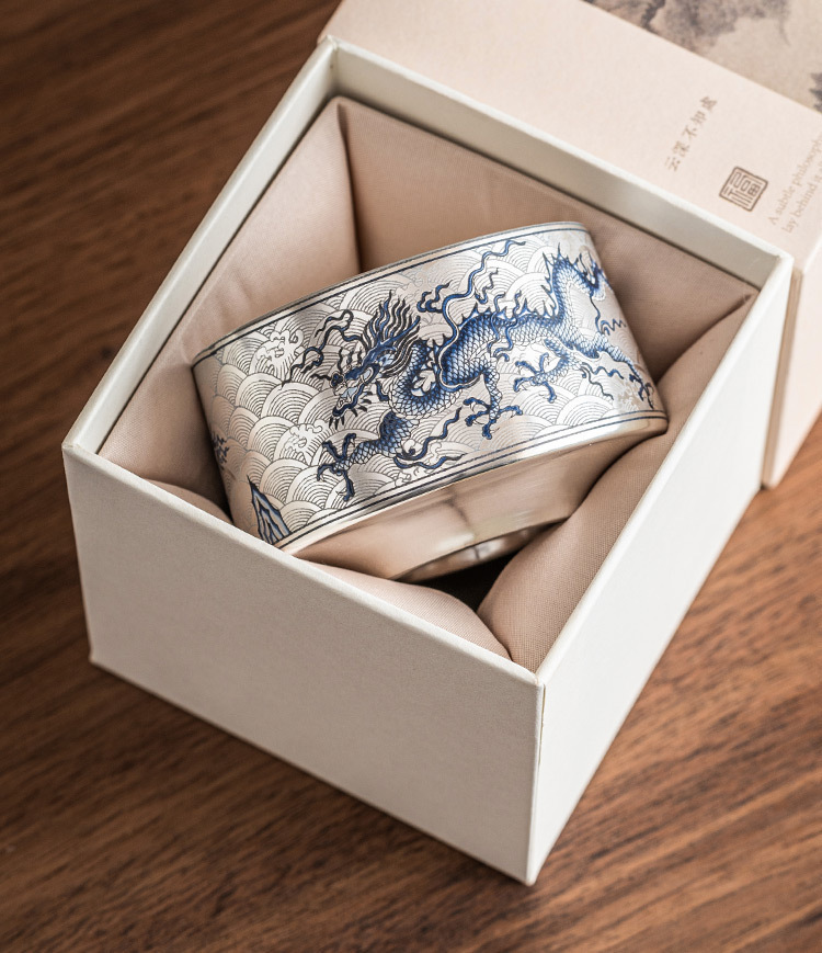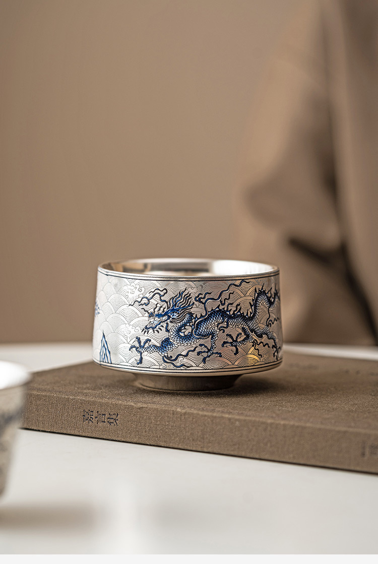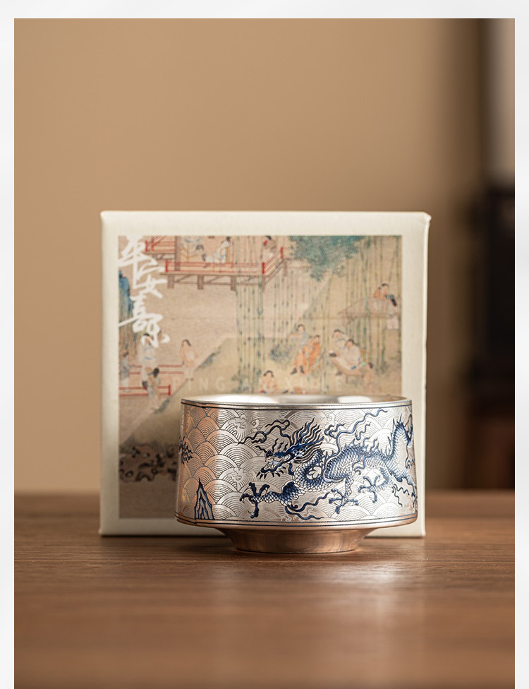 鎏银青花龙纹主人杯单杯家用喝茶杯大容量高档陶瓷礼品茶具品茗杯