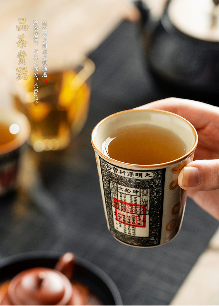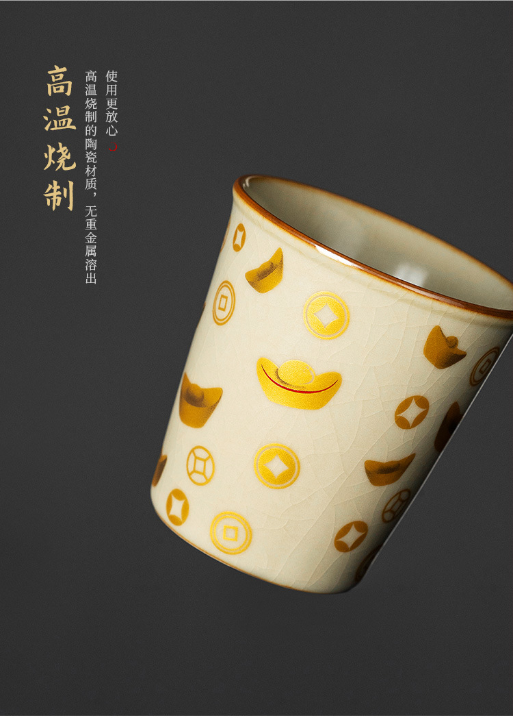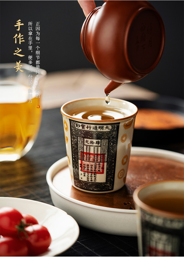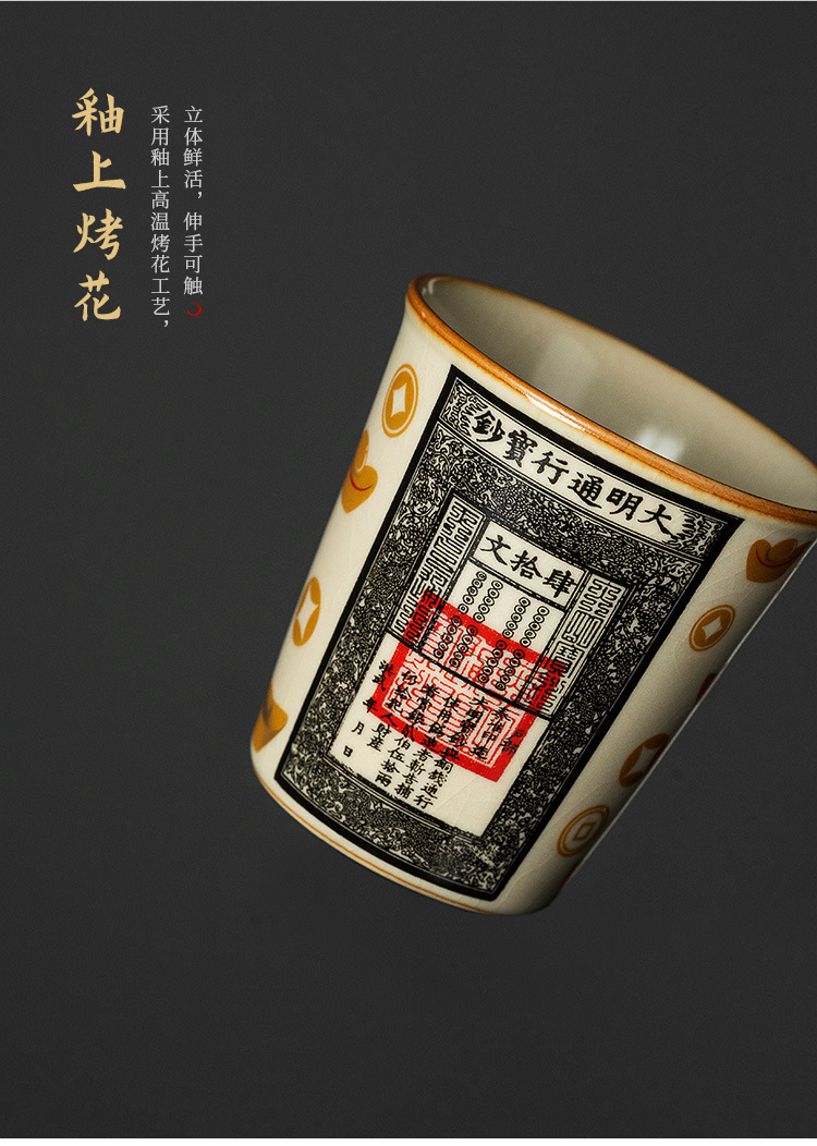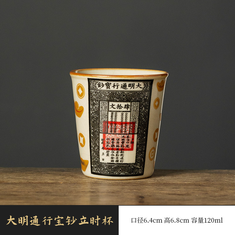 汝窑大明宝钞茶杯个人专用主人杯高档陶瓷中式单水杯子喝茶可乐杯