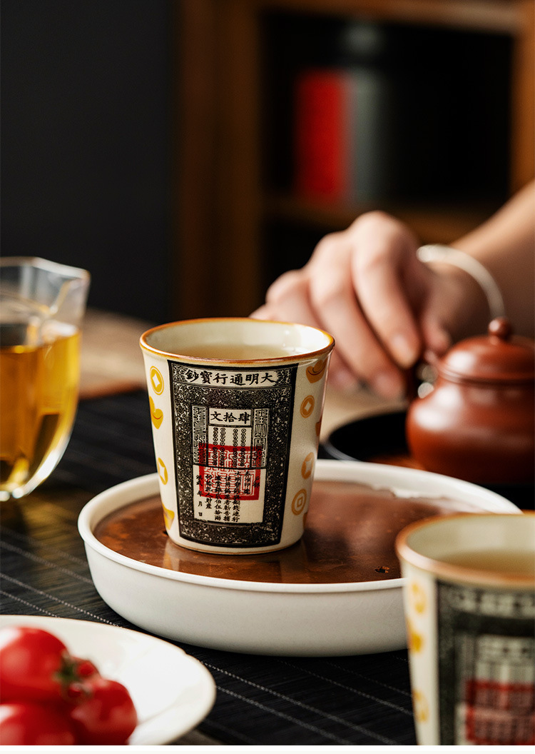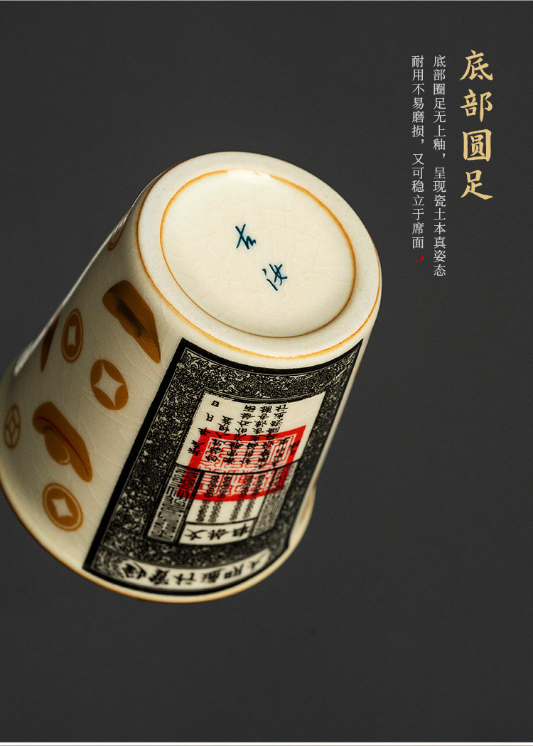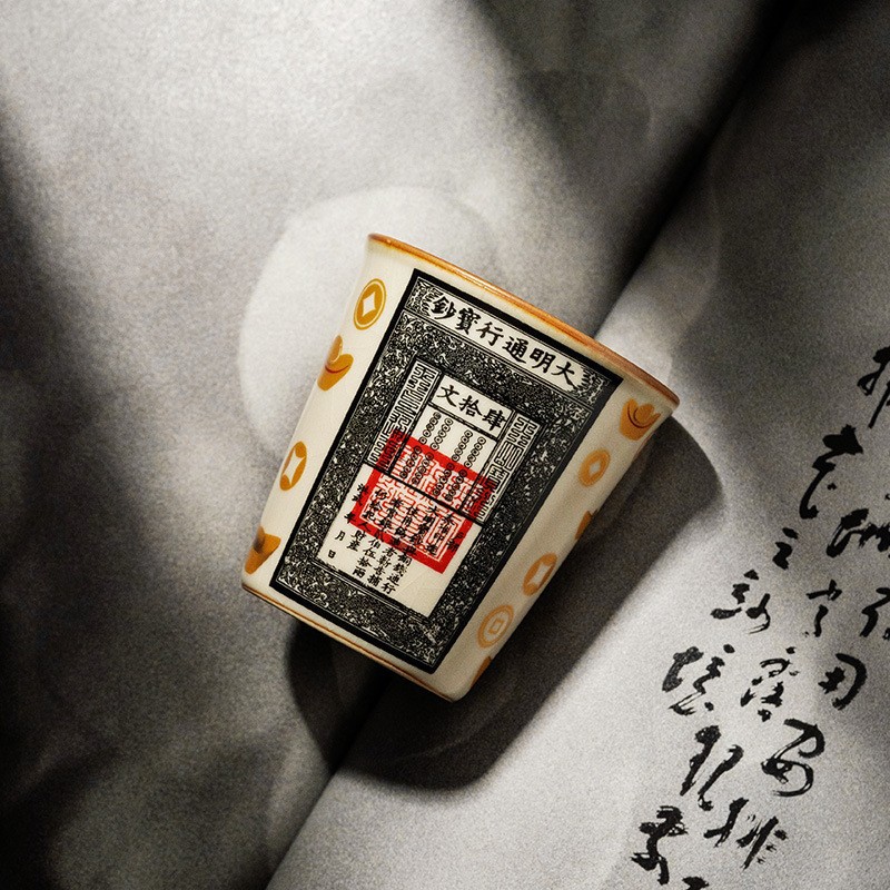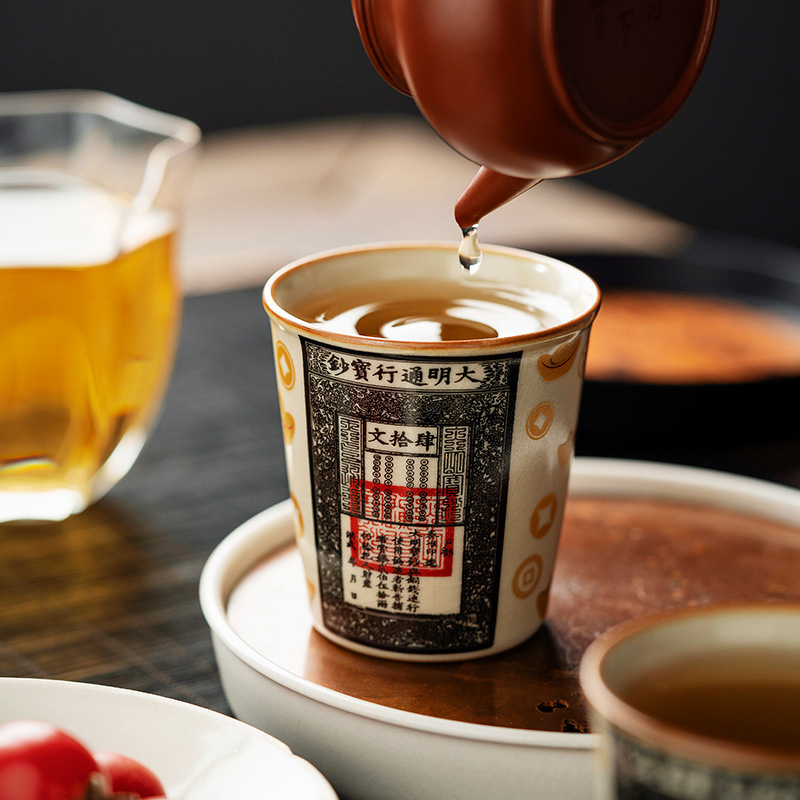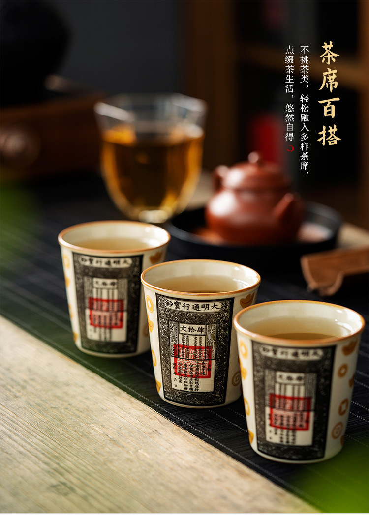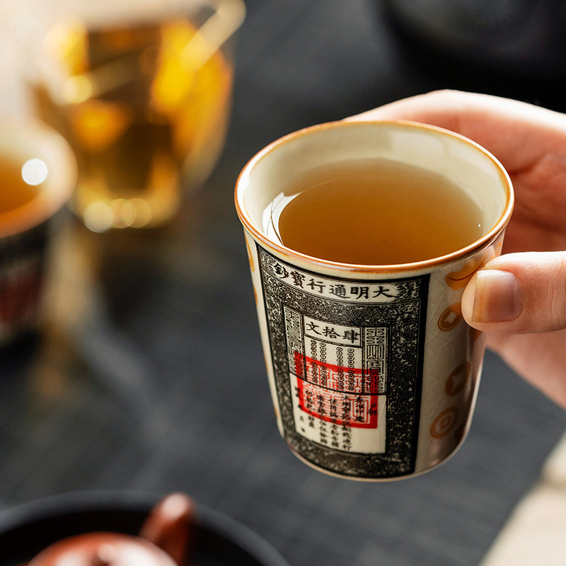 汝窑大明宝钞茶杯个人专用主人杯高档陶瓷中式单水杯子喝茶可乐杯
