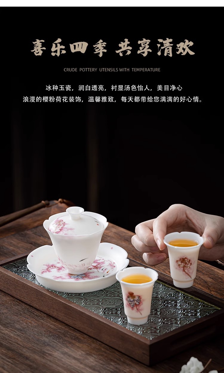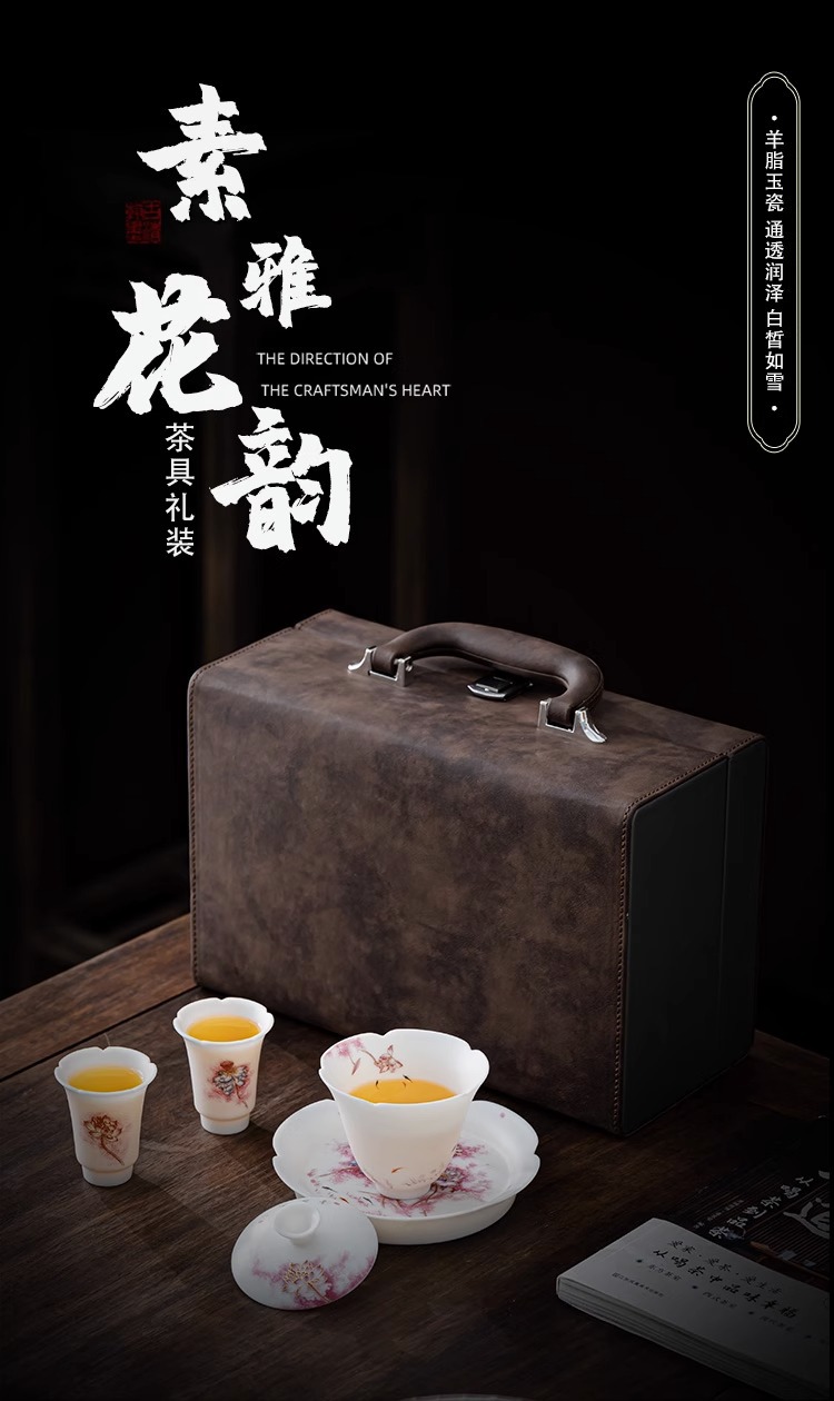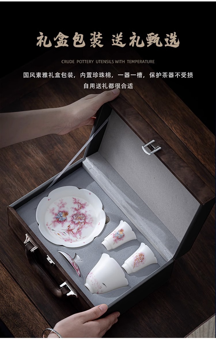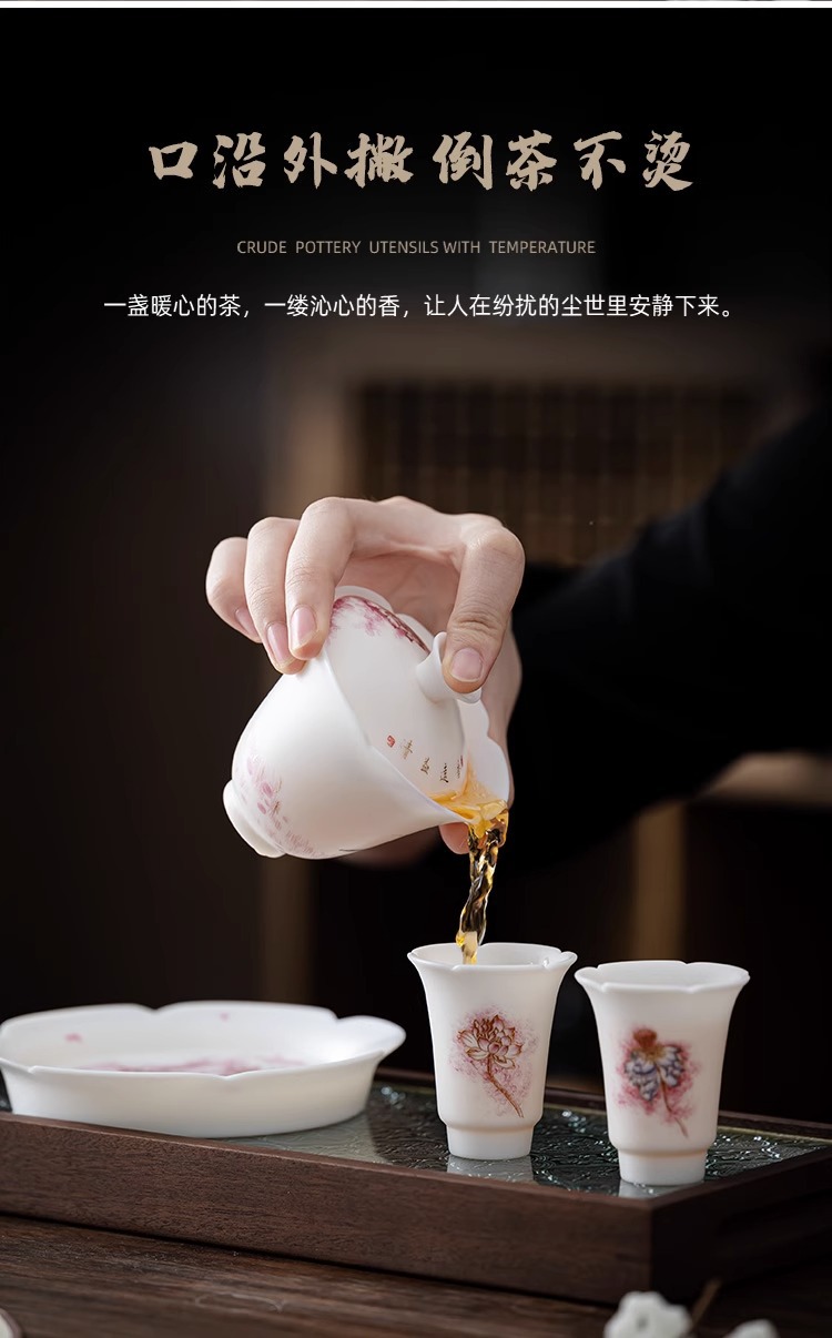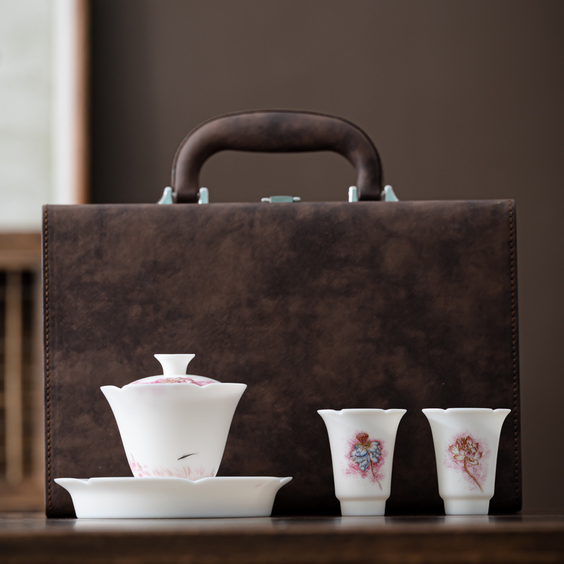 冰种素烧羊脂玉瓷轻奢盖碗小套装便携式茶杯户外旅行一壶两杯茶具