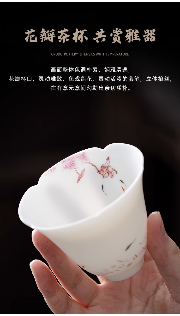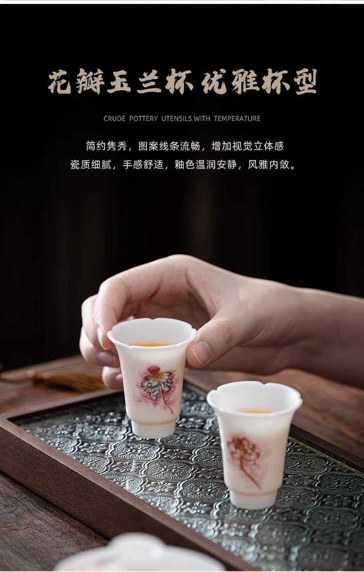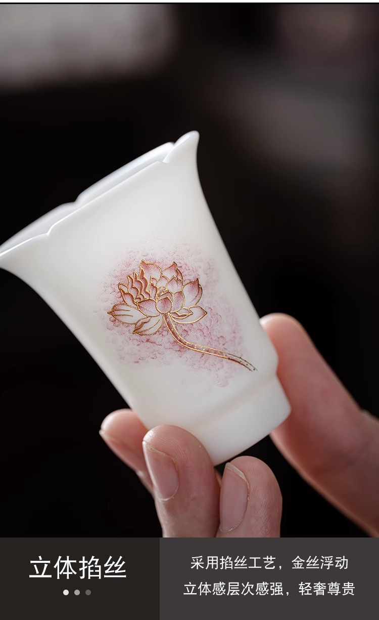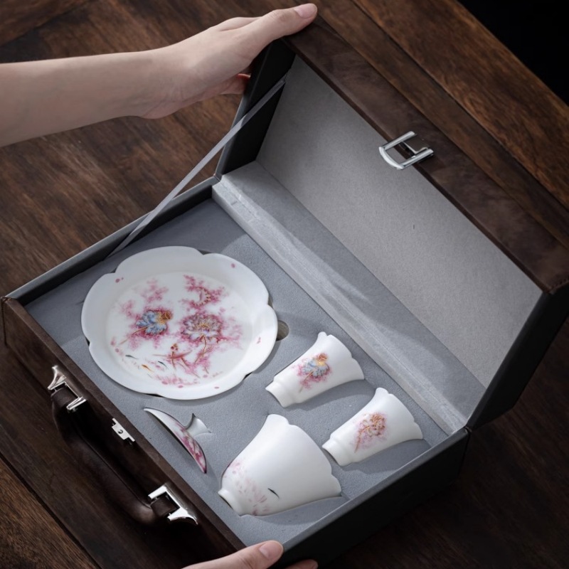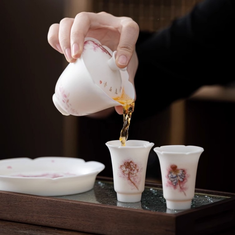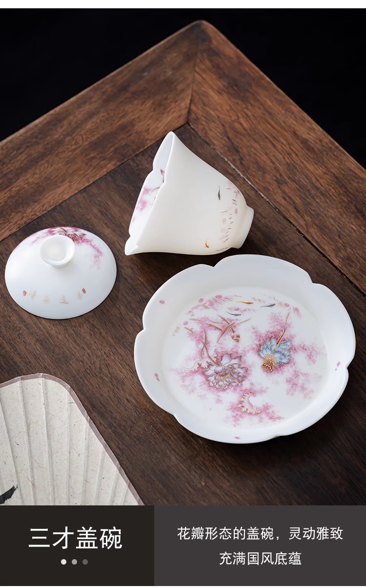 冰种素烧羊脂玉瓷轻奢盖碗小套装便携式茶杯户外旅行一壶两杯茶具