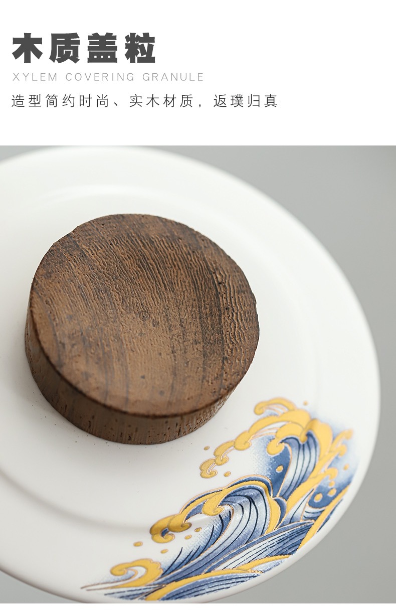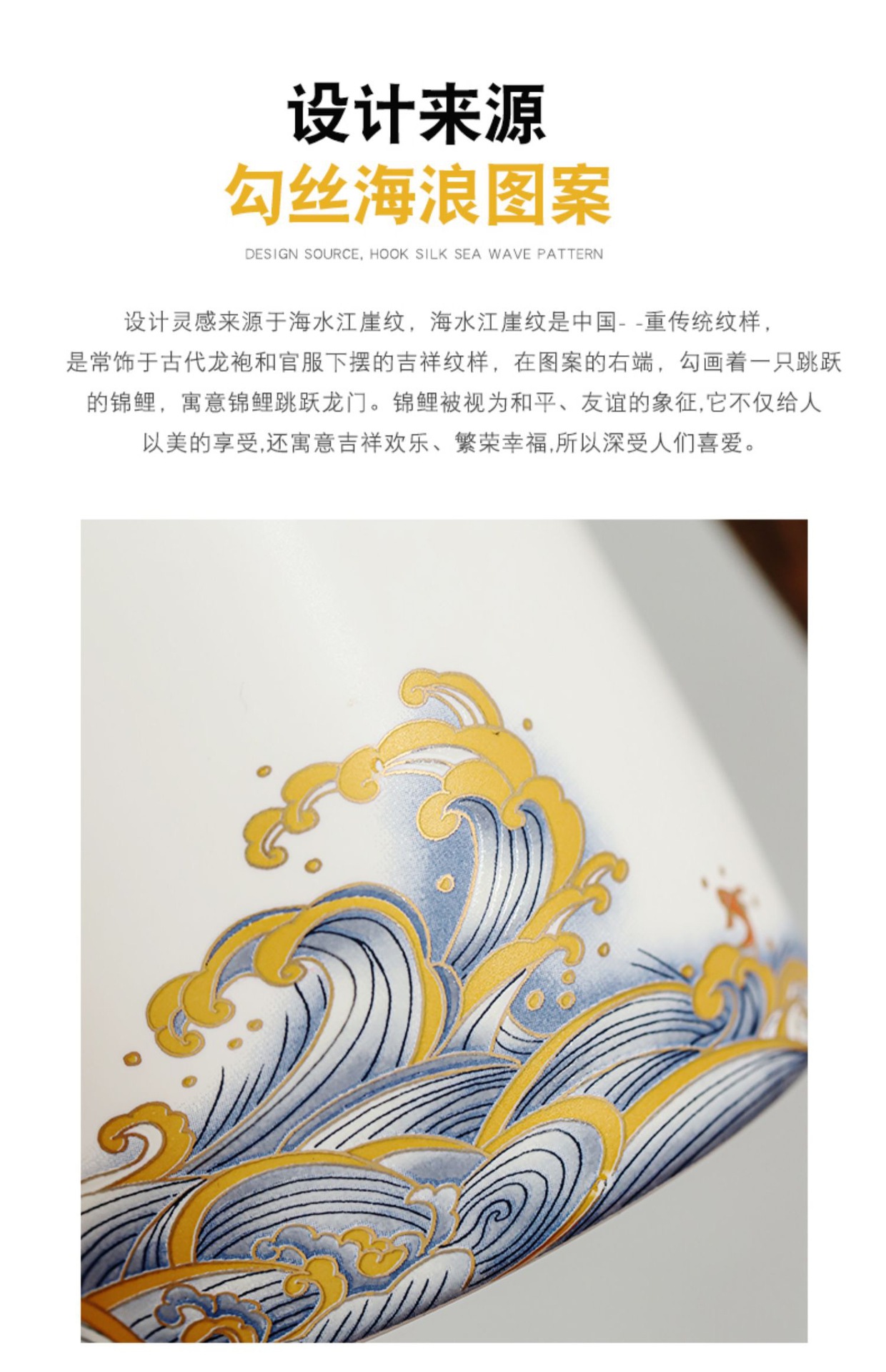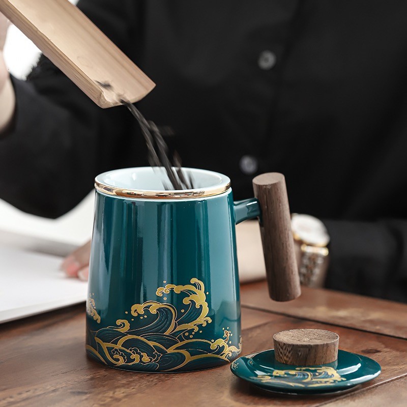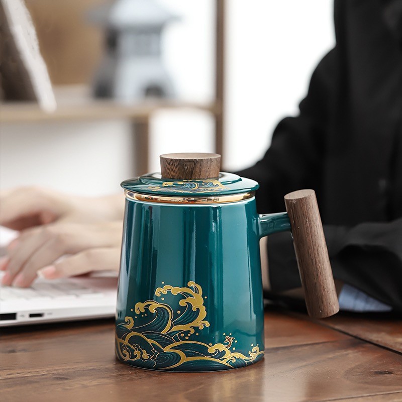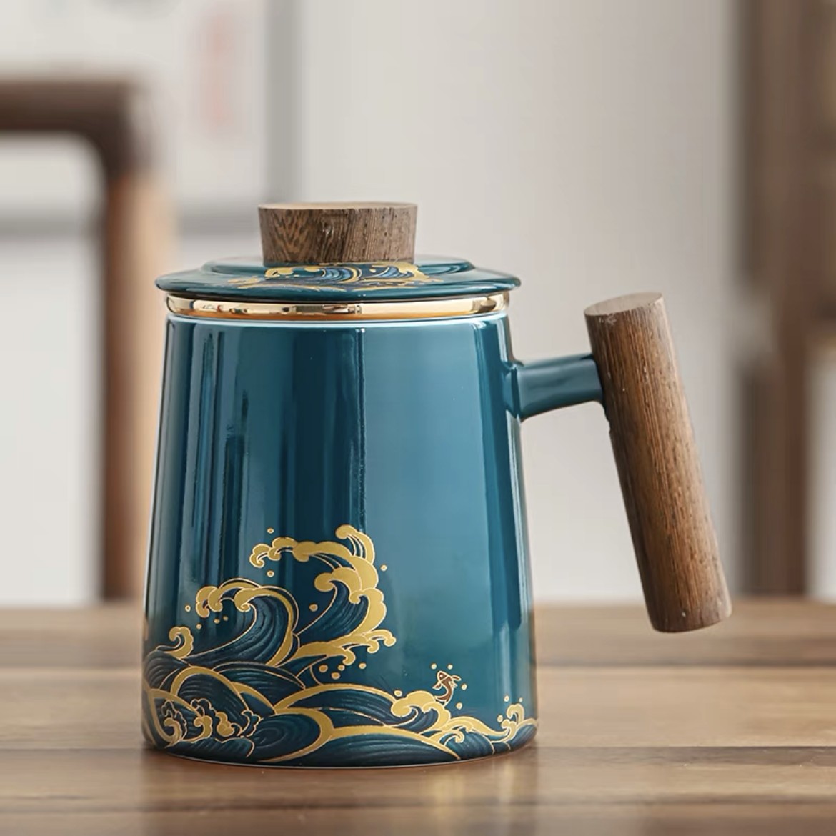 陶瓷马克杯水杯茶杯茶水分离带盖家用大容量木柄办公室个人泡茶