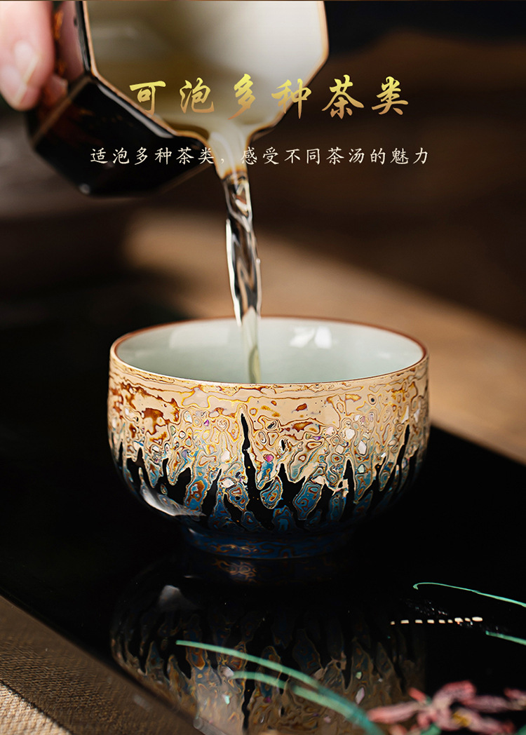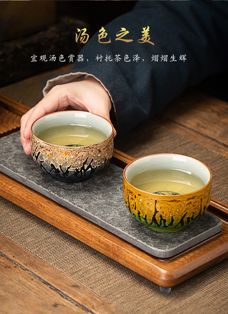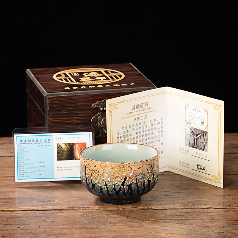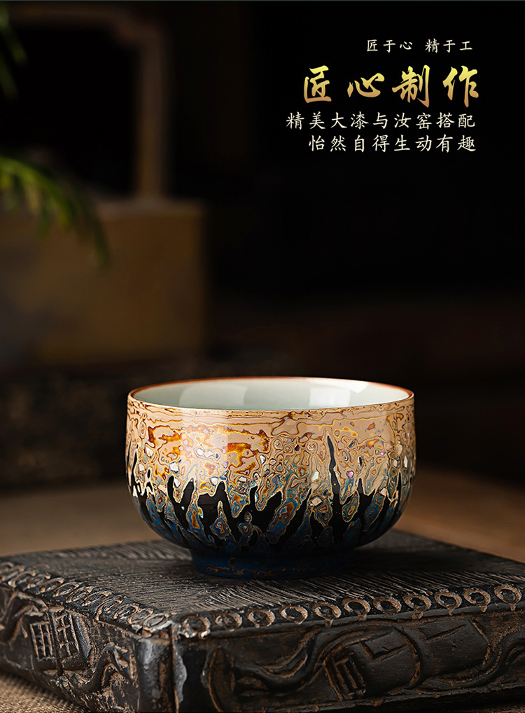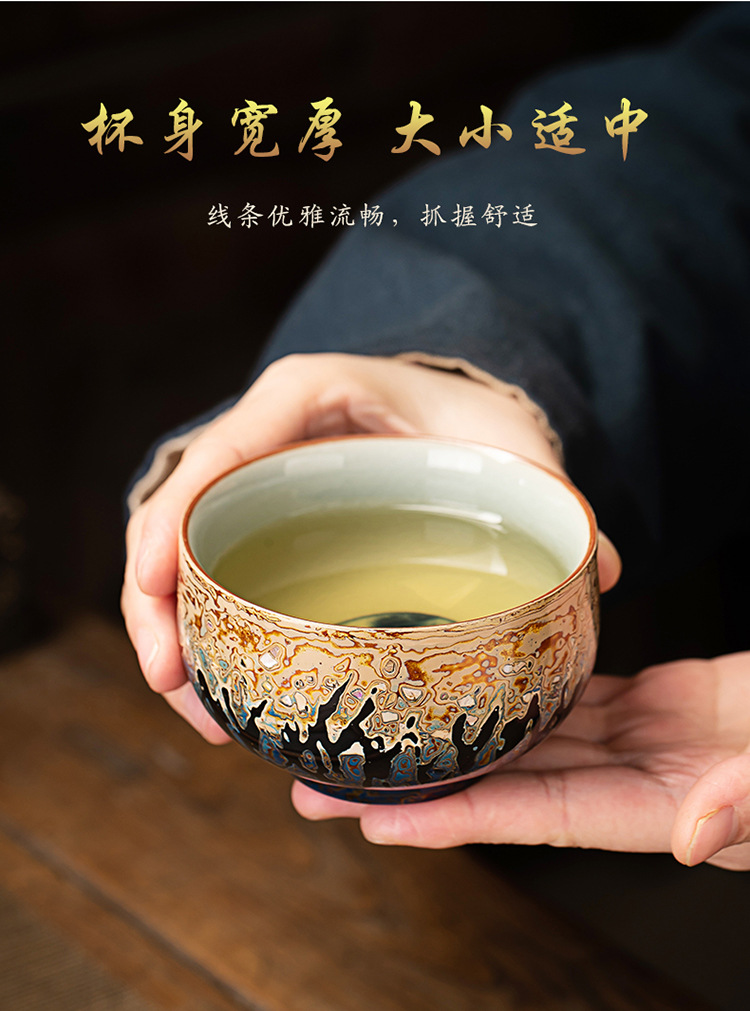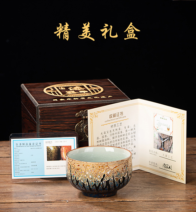 冰裂大漆茶杯福州漆器茶具品茗杯犀皮漆主人杯子纯手工陶瓷茶杯